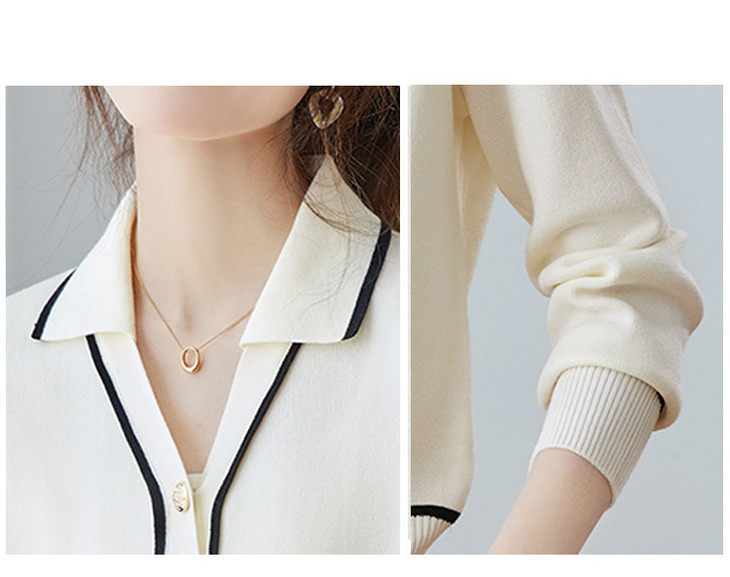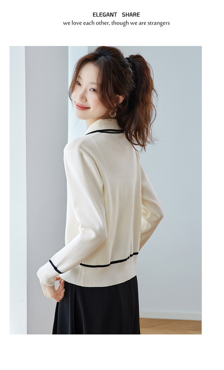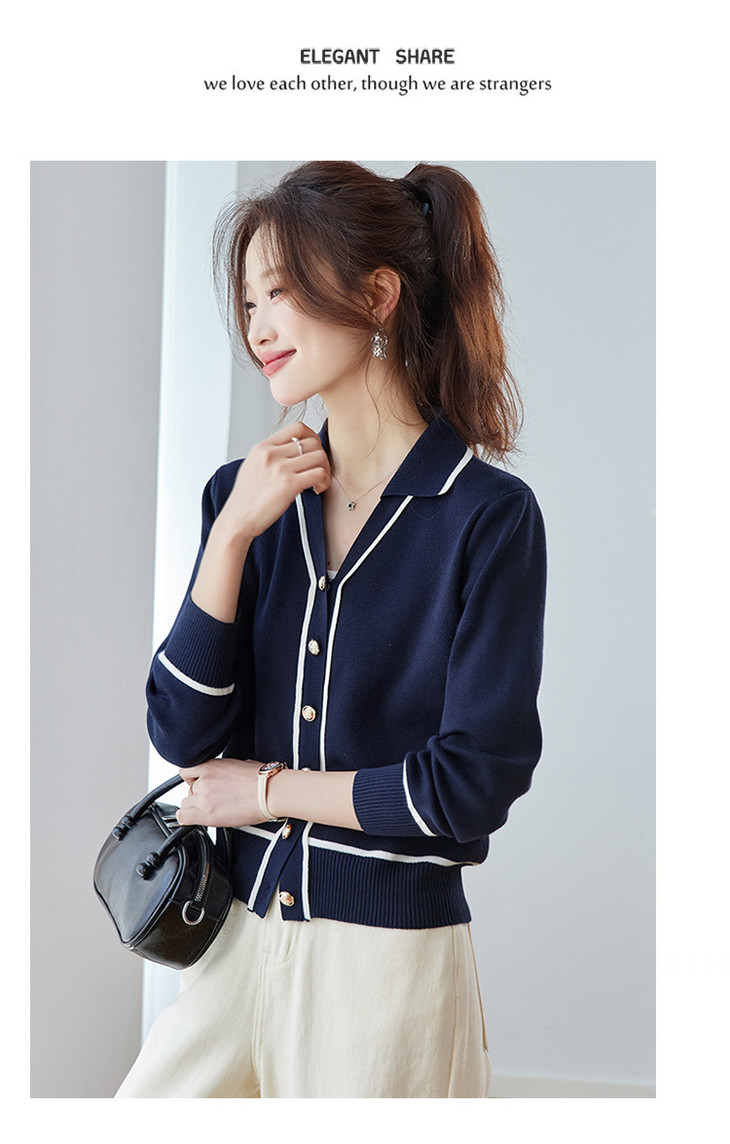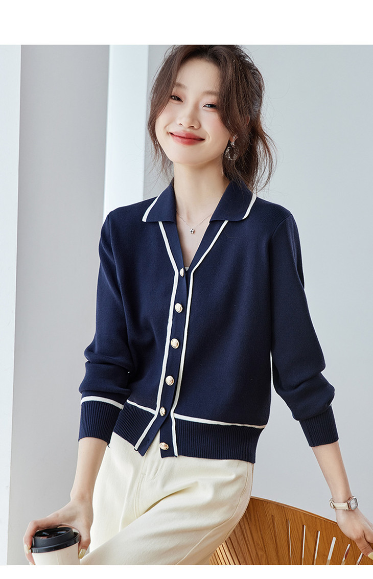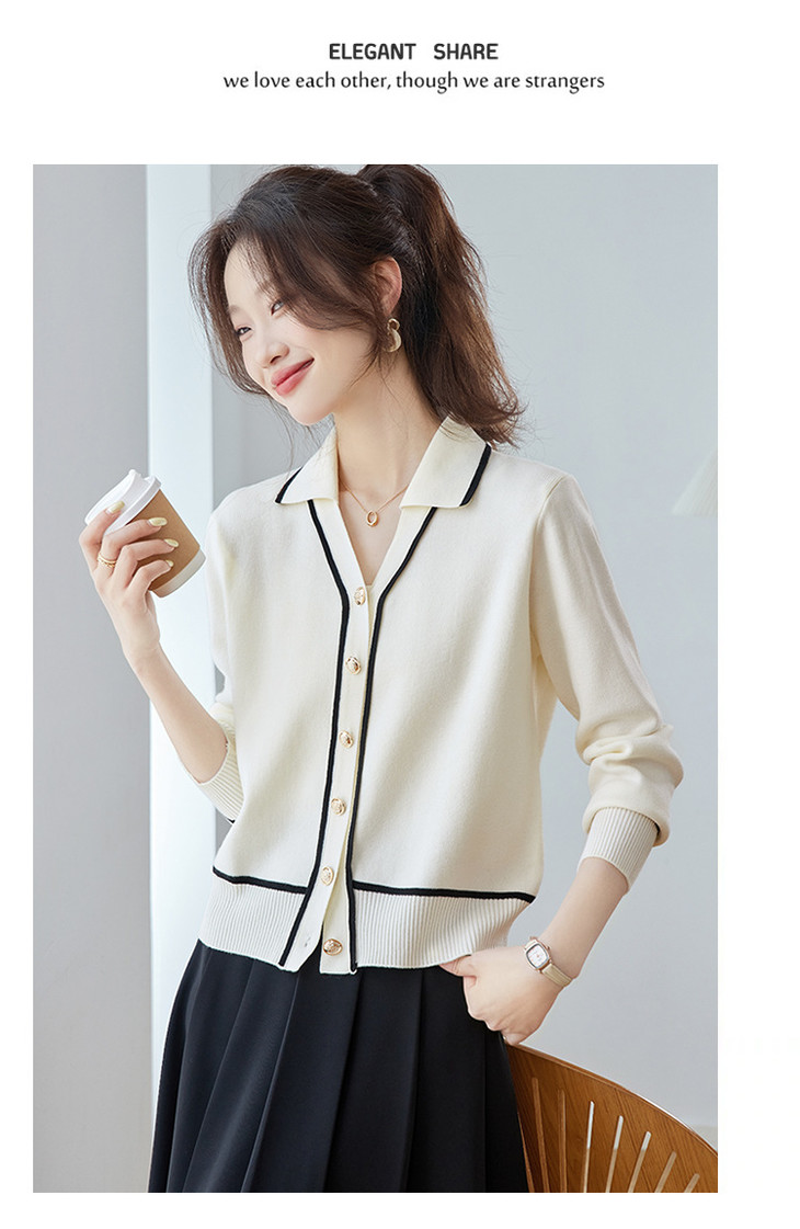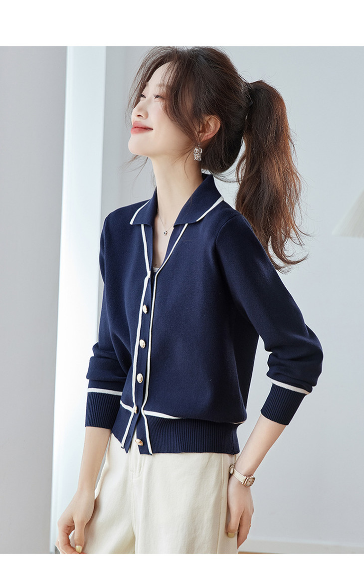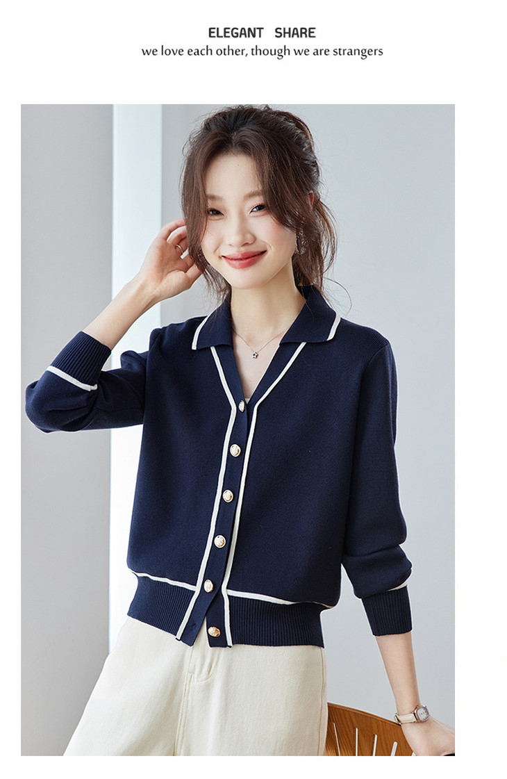 气质百搭上衣高级感,时尚撞色减龄翻领开衫外搭CC-ML-293