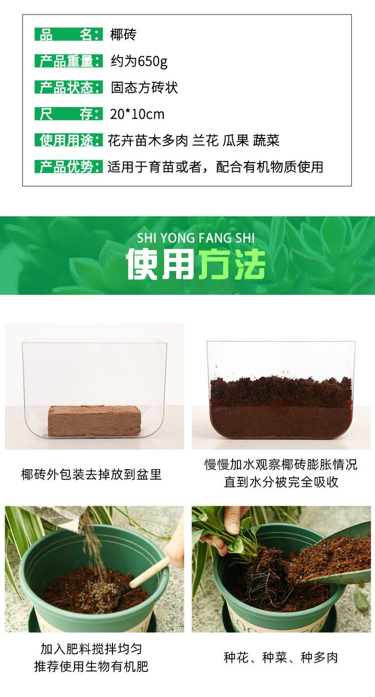 【2快块装】园林花卉苗木用大货椰糠砖 植物栽培基质椰糠 低盐多肉椰砖营养土