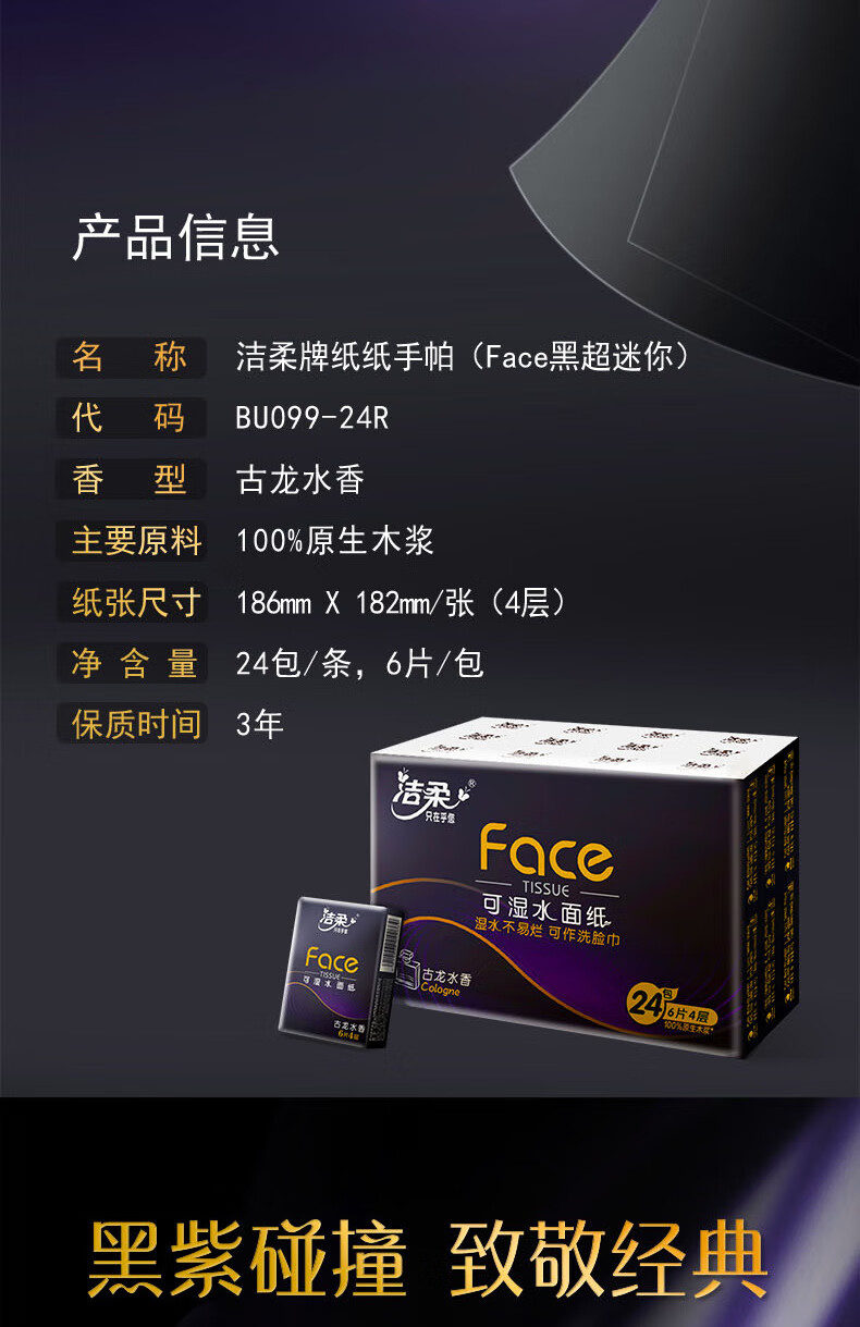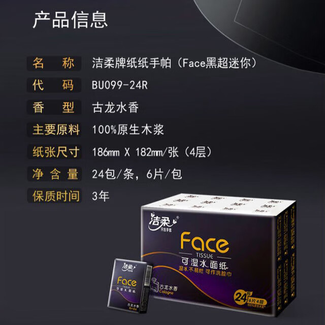 洁柔牌纸手帕(Face黑古龙水香)6片4层(24包)BU099-24R