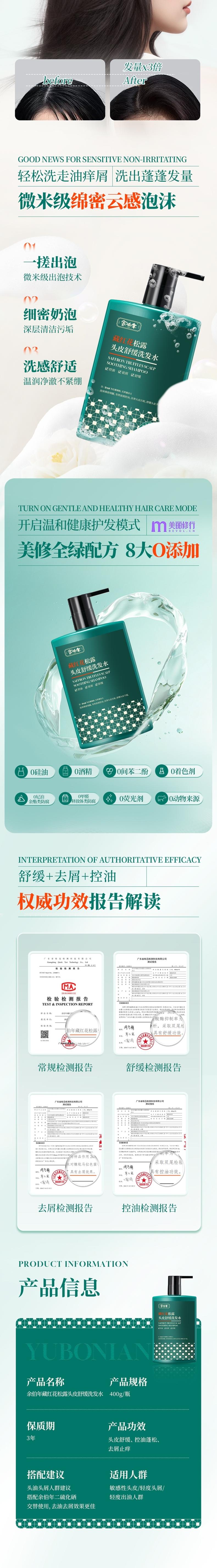 余伯年 藏红花松露头皮舒缓洗发水400g YBN-CHHXFS