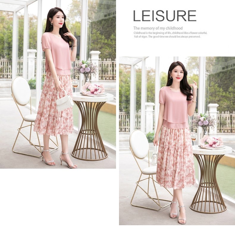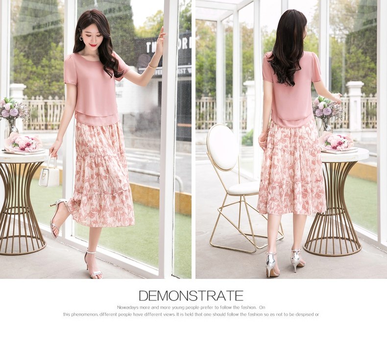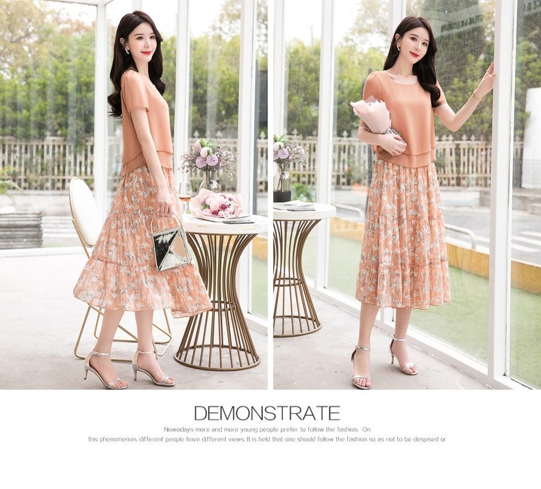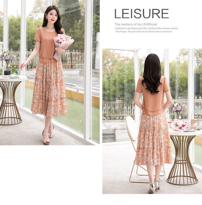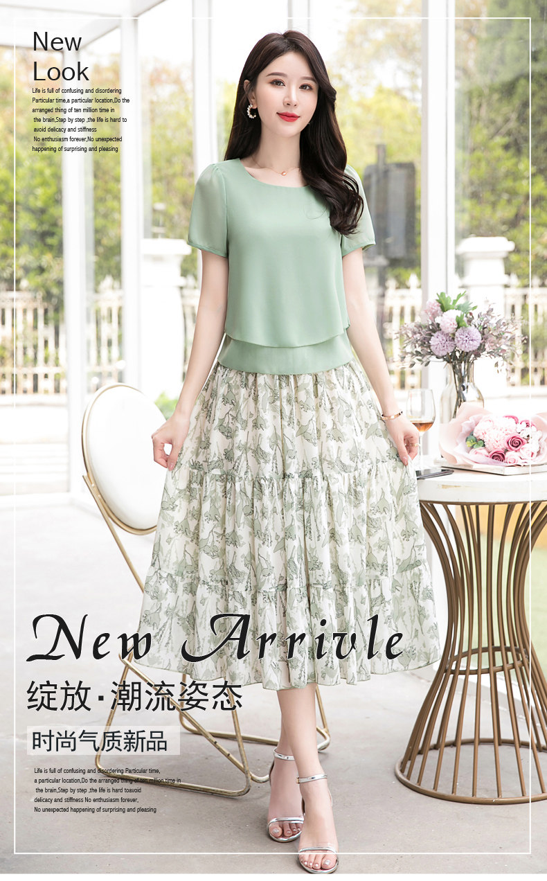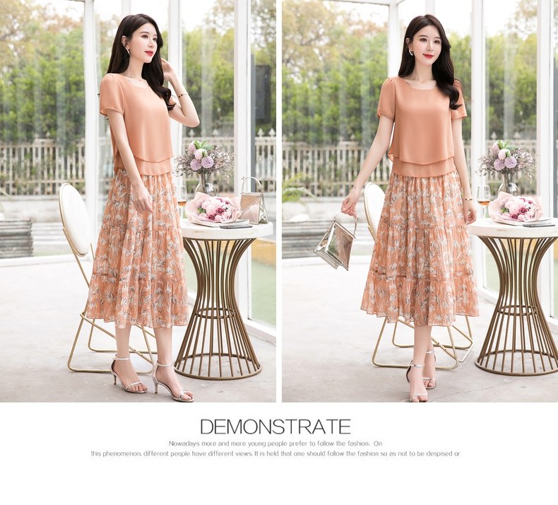 MQ-3164-0191夏季新款气质显瘦洋气碎花雪纺连衣裙两件套YY