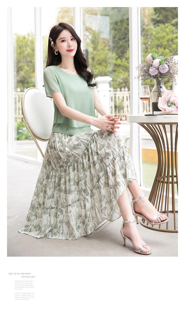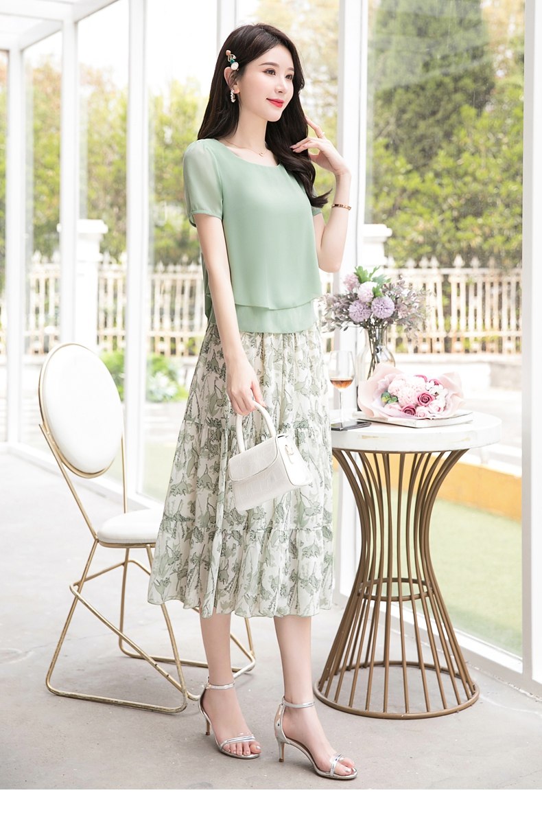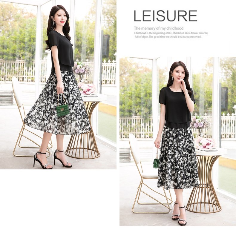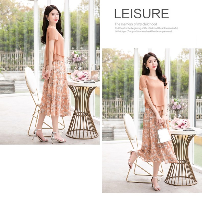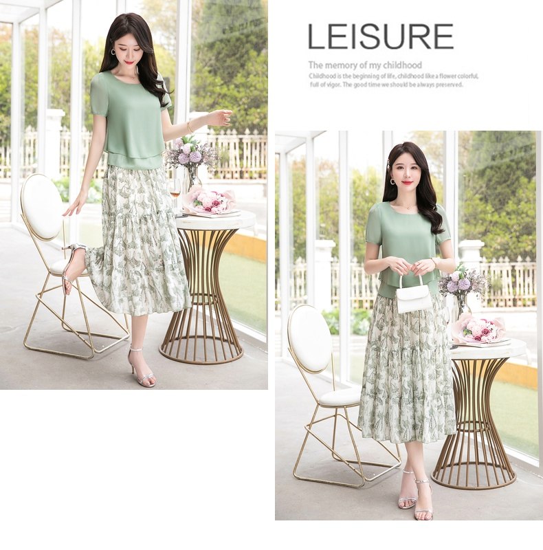 MQ-3164-0191夏季新款气质显瘦洋气碎花雪纺连衣裙两件套YY