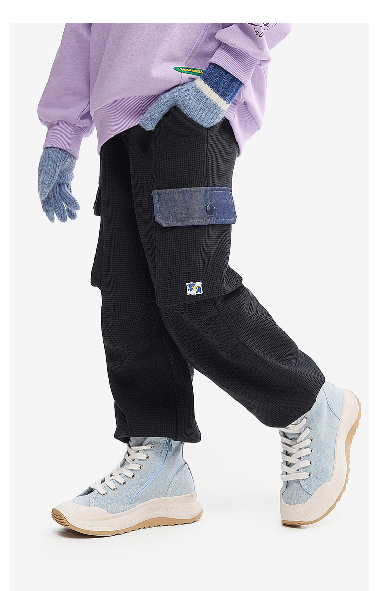 【MQD】童装男童运动裤春秋装款儿童宽松中大童工装华夫格长裤