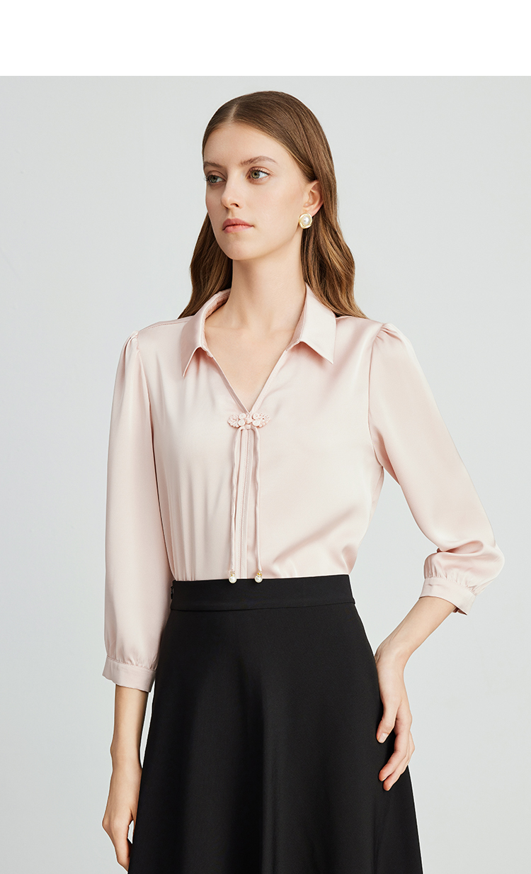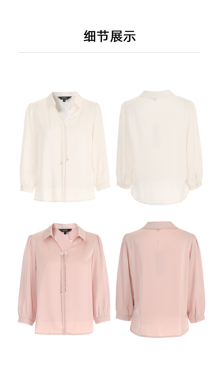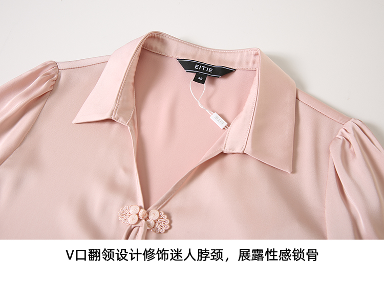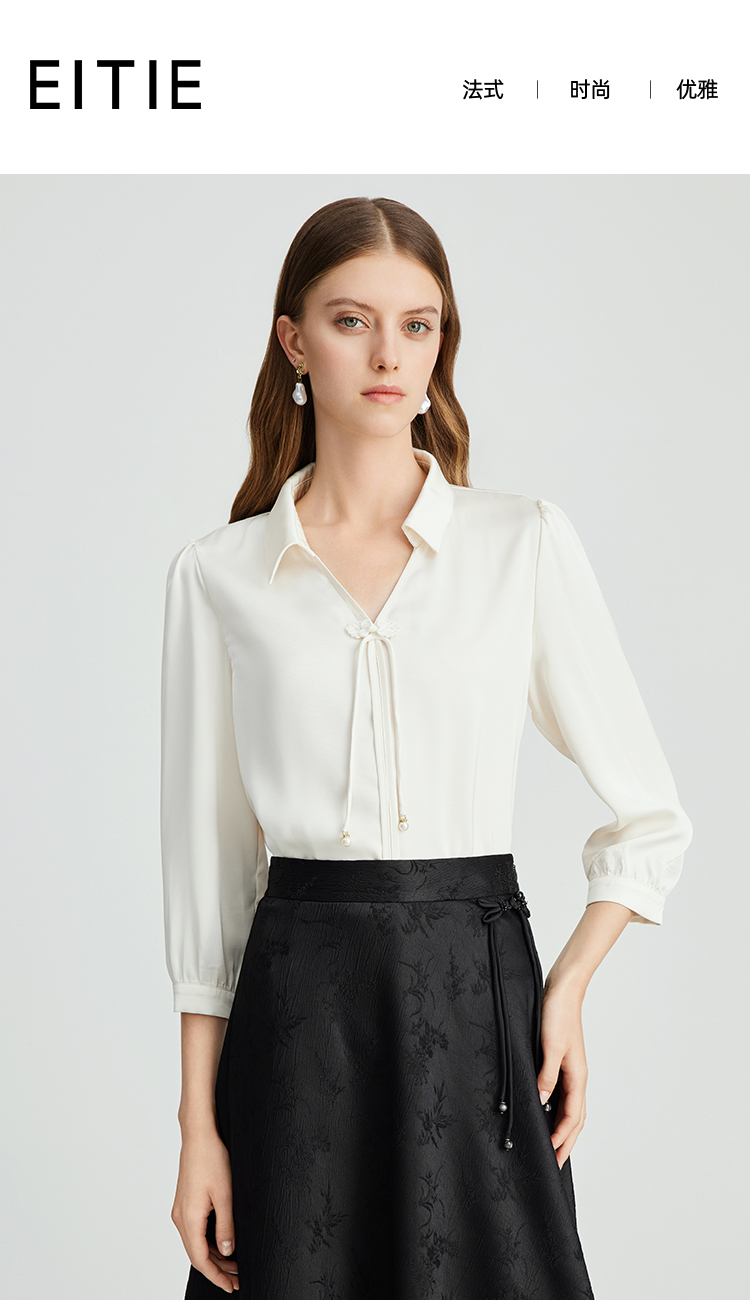 EITIE爱特爱精致盘扣V领显瘦舒适百搭通勤衬衫上衣秋新款C2413426