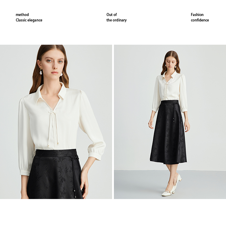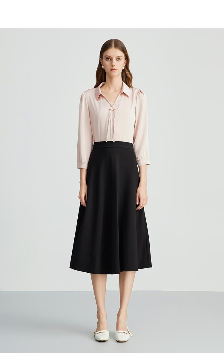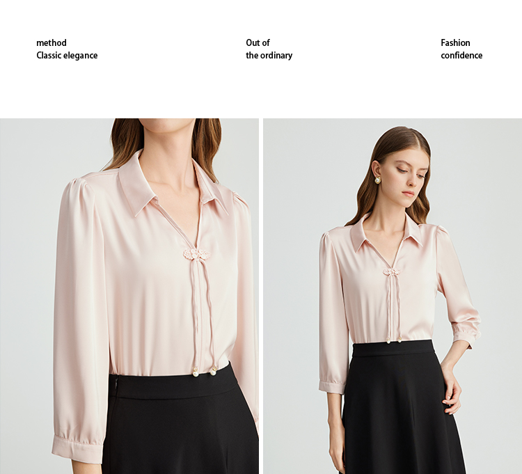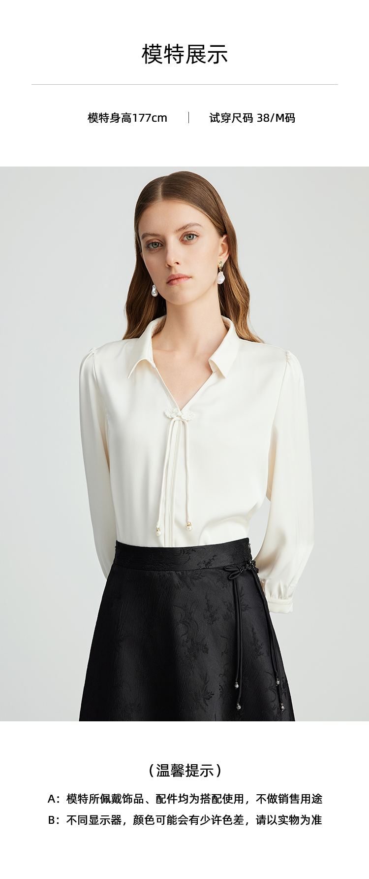 EITIE爱特爱精致盘扣V领显瘦舒适百搭通勤衬衫上衣秋新款C2413426