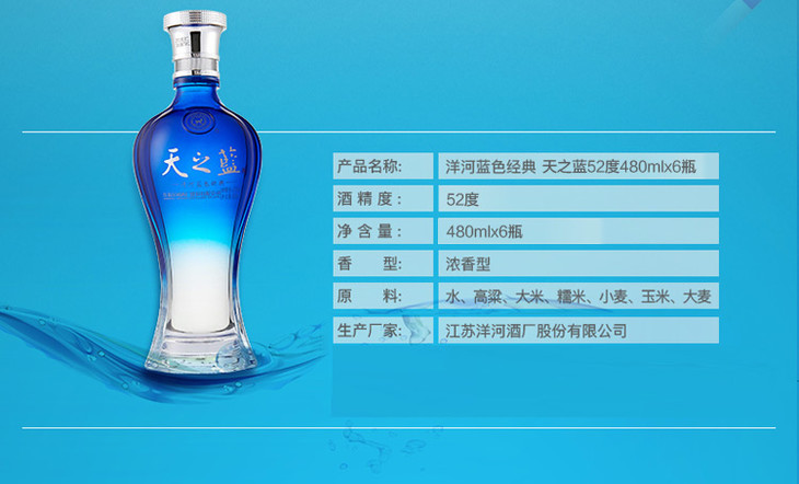 【推荐】洋河 天之蓝 52度 480ml*6【整箱装】(新老包装随机发货)