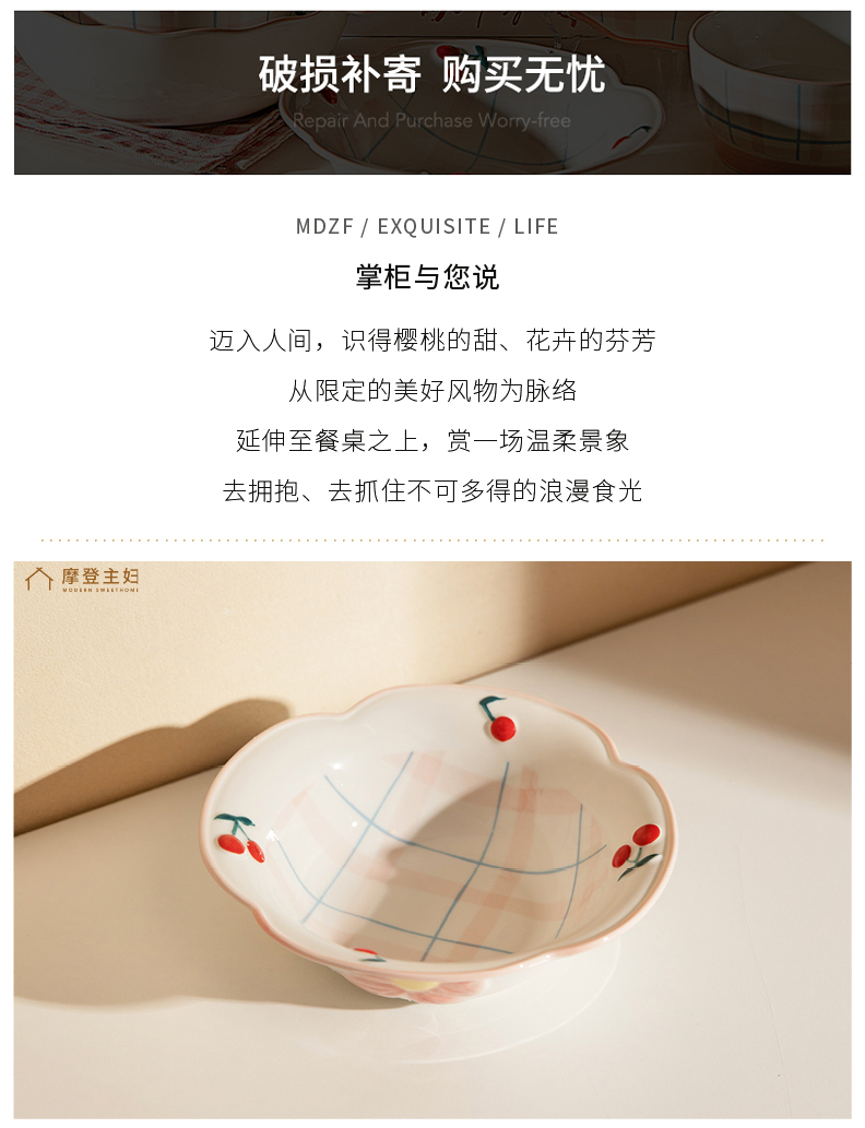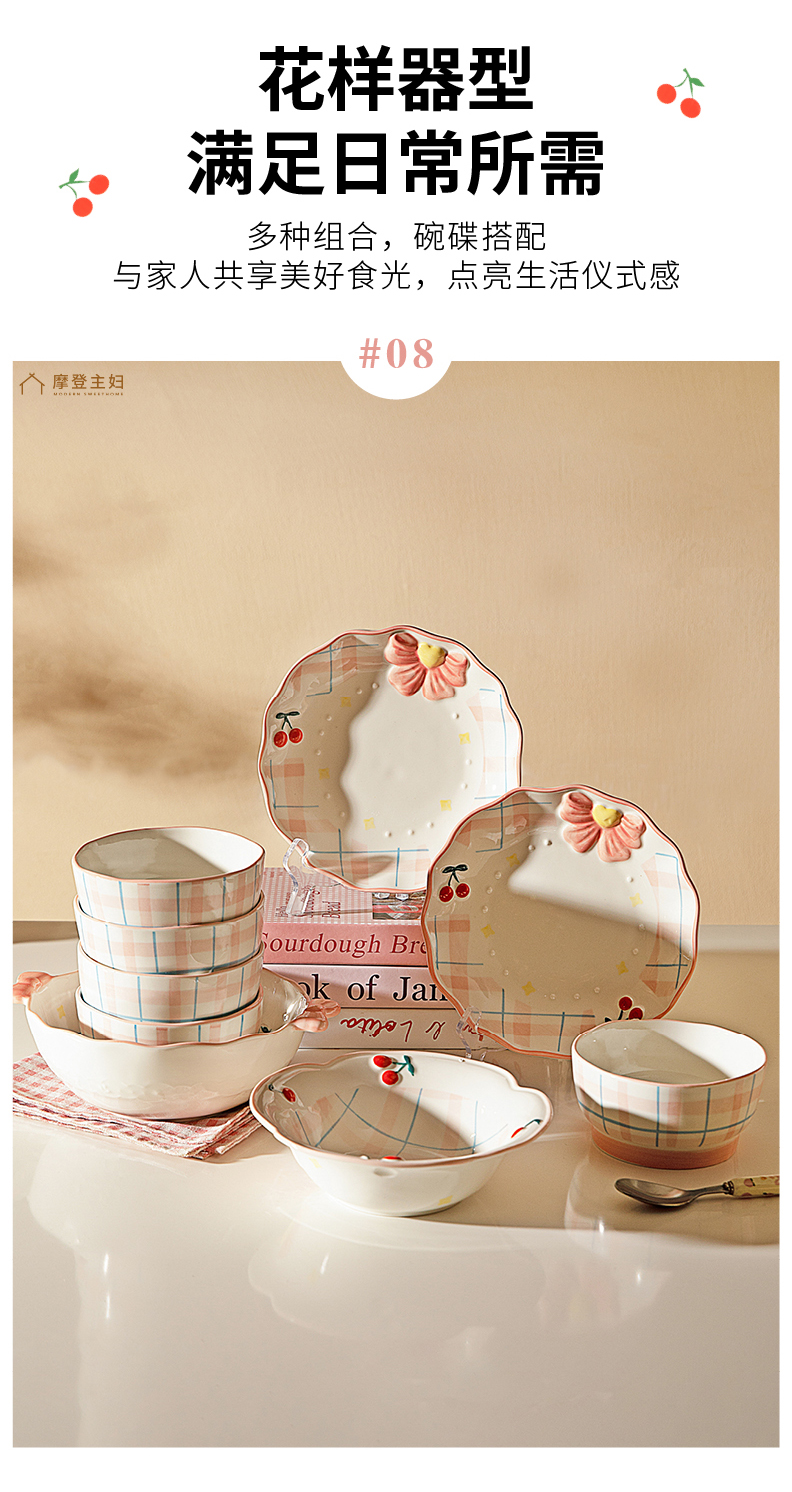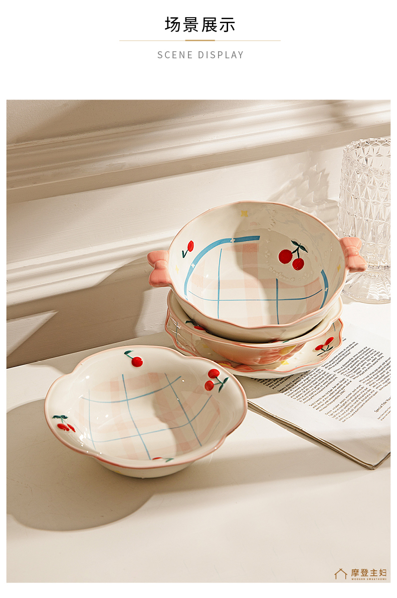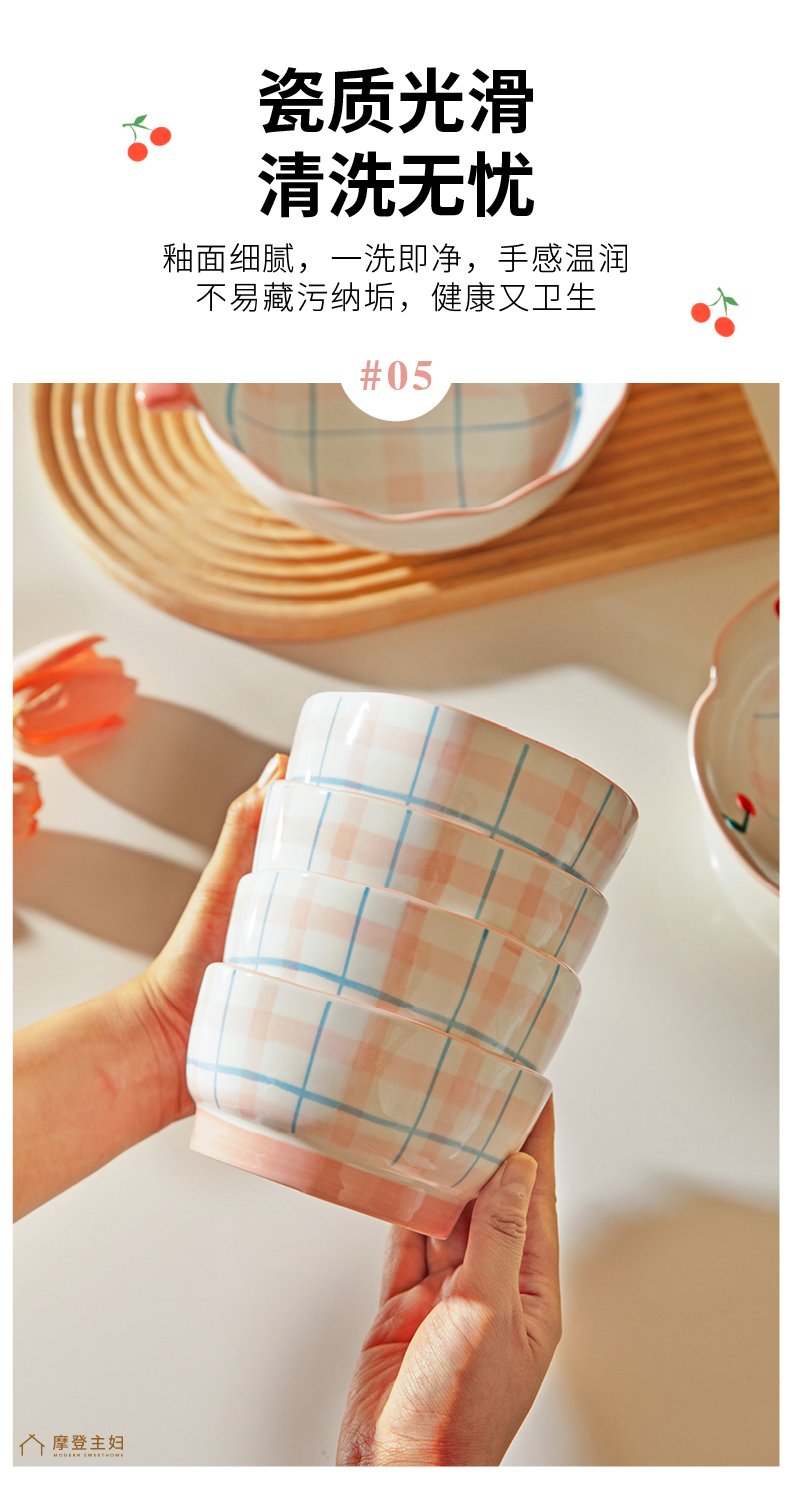 摩登主妇釉下彩餐具陶瓷米饭碗酸奶碗个人专用盘子沙拉碗汤面碗