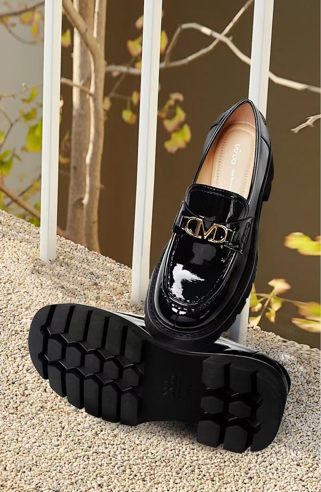 MUX迈思英伦风漆皮乐福鞋圆头复古M字饰扣超轻底