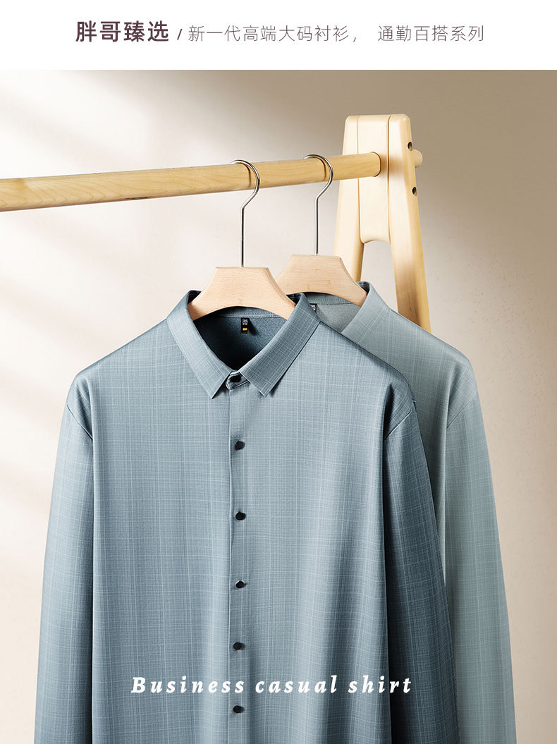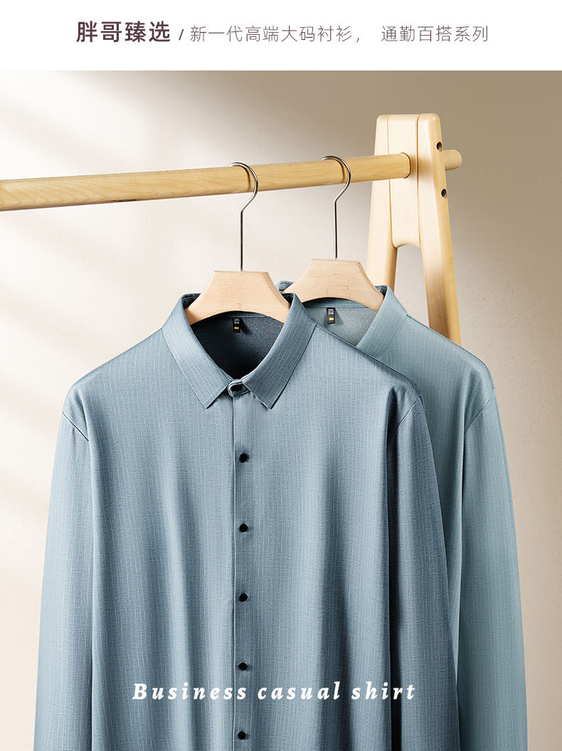 【超大码】【DDS】大依优型大码男士衬衫长袖纯色商务免烫抗皱加肥加大码商务宽松翻领长袖衬衣300斤