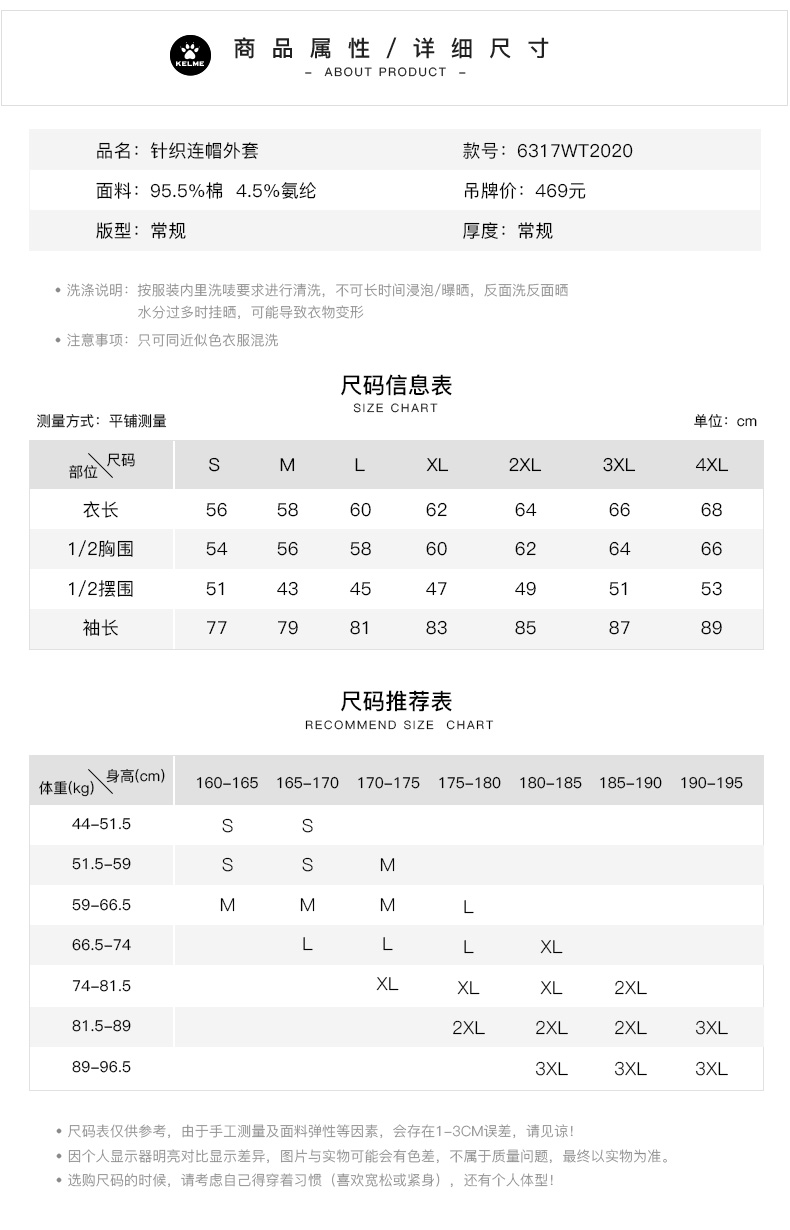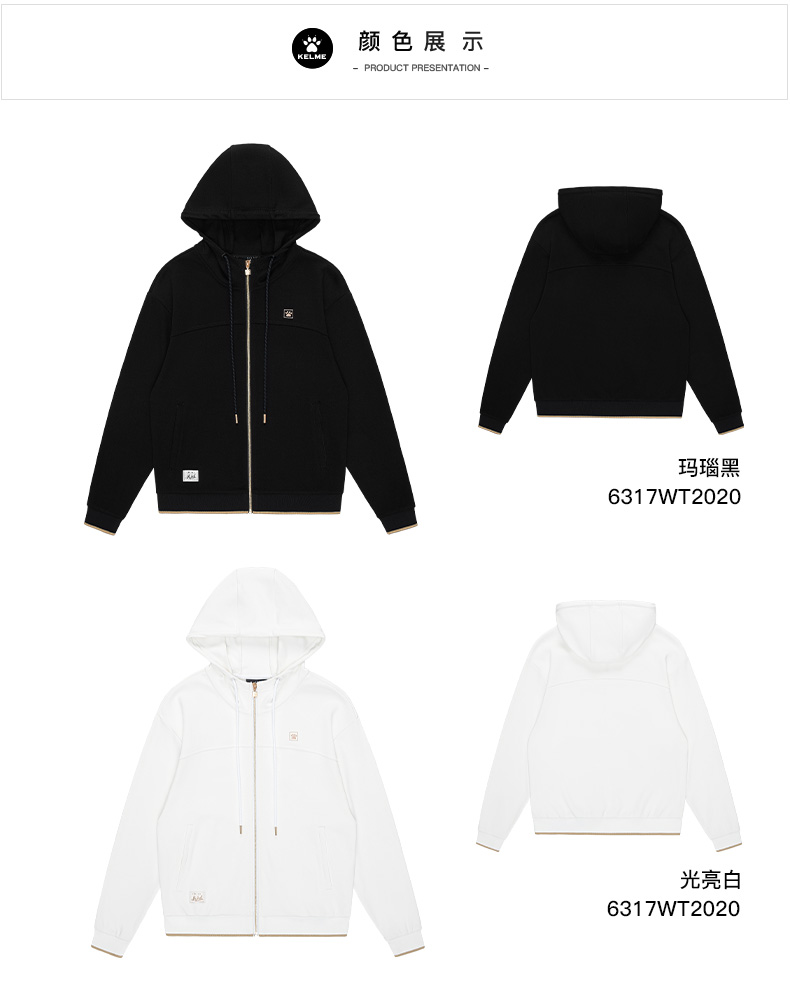 KELME卡尔美连帽针织外套女春季运动开衫卫衣运动夹克服