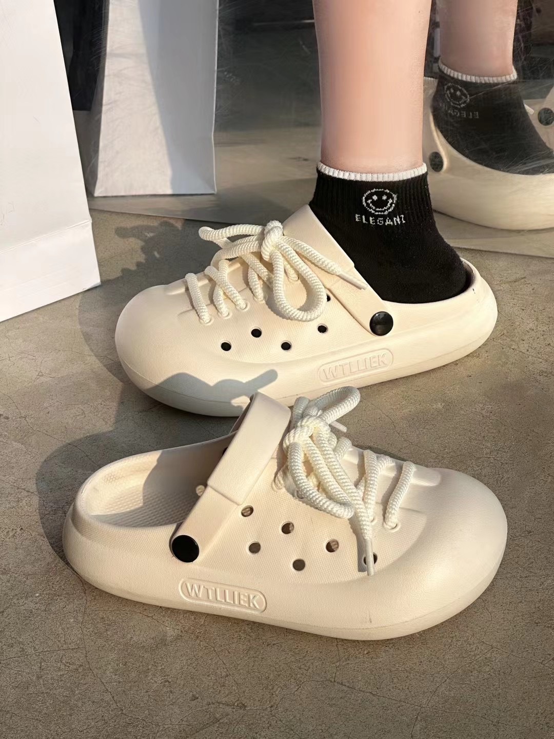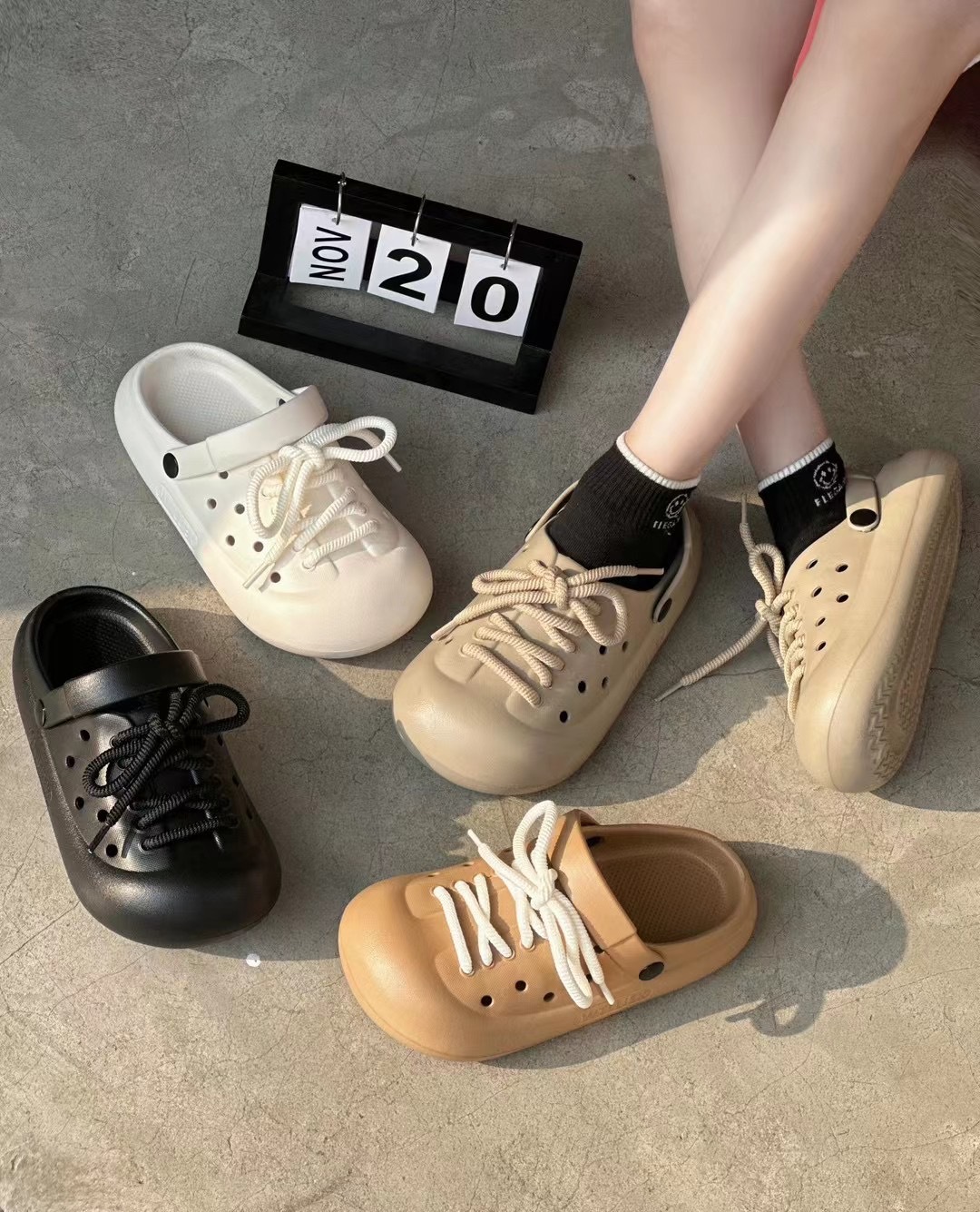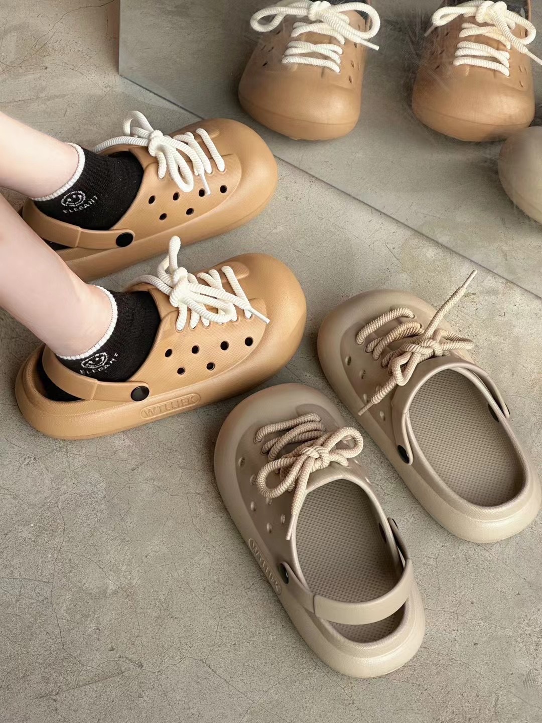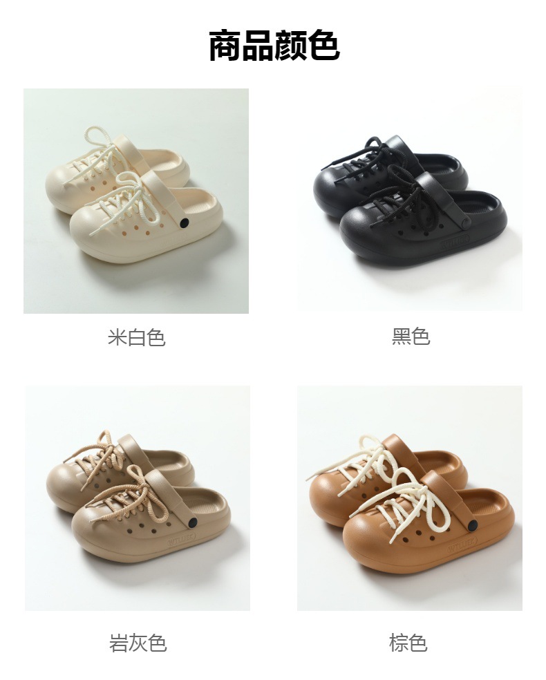 EVA洞洞鞋女夏秋季外穿防滑厚底包头透气系带休闲女式凉拖鞋现货