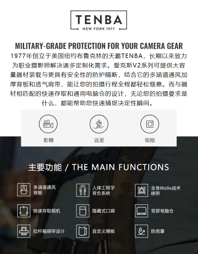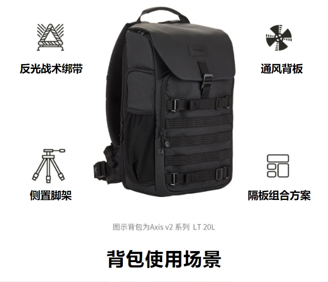狼族优选丨天霸TENBA摄影包 双肩专业相机包单反微单轻量背包 爱克斯axis LT20L黑色/暗夜迷彩 637-768