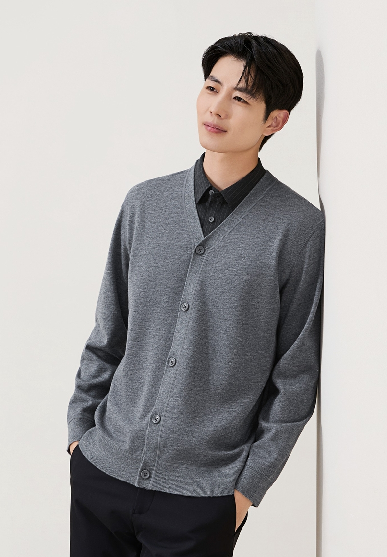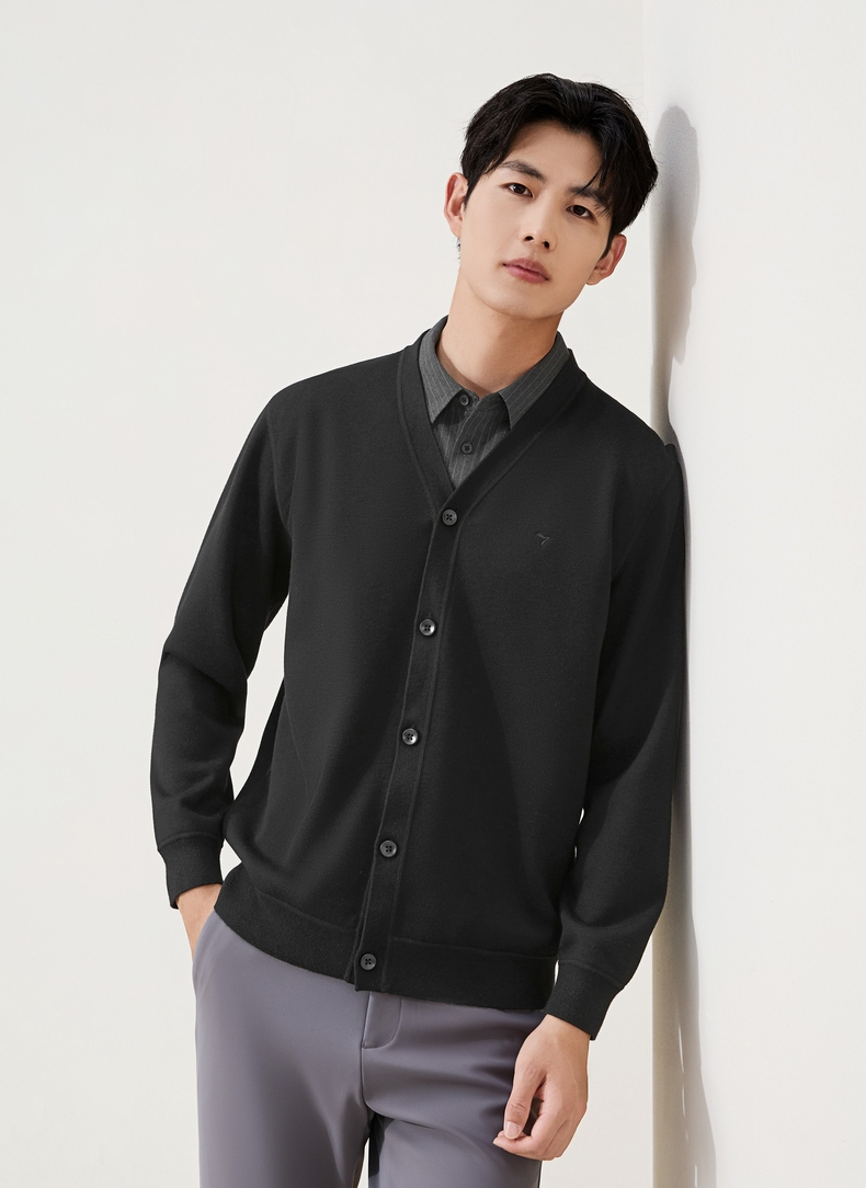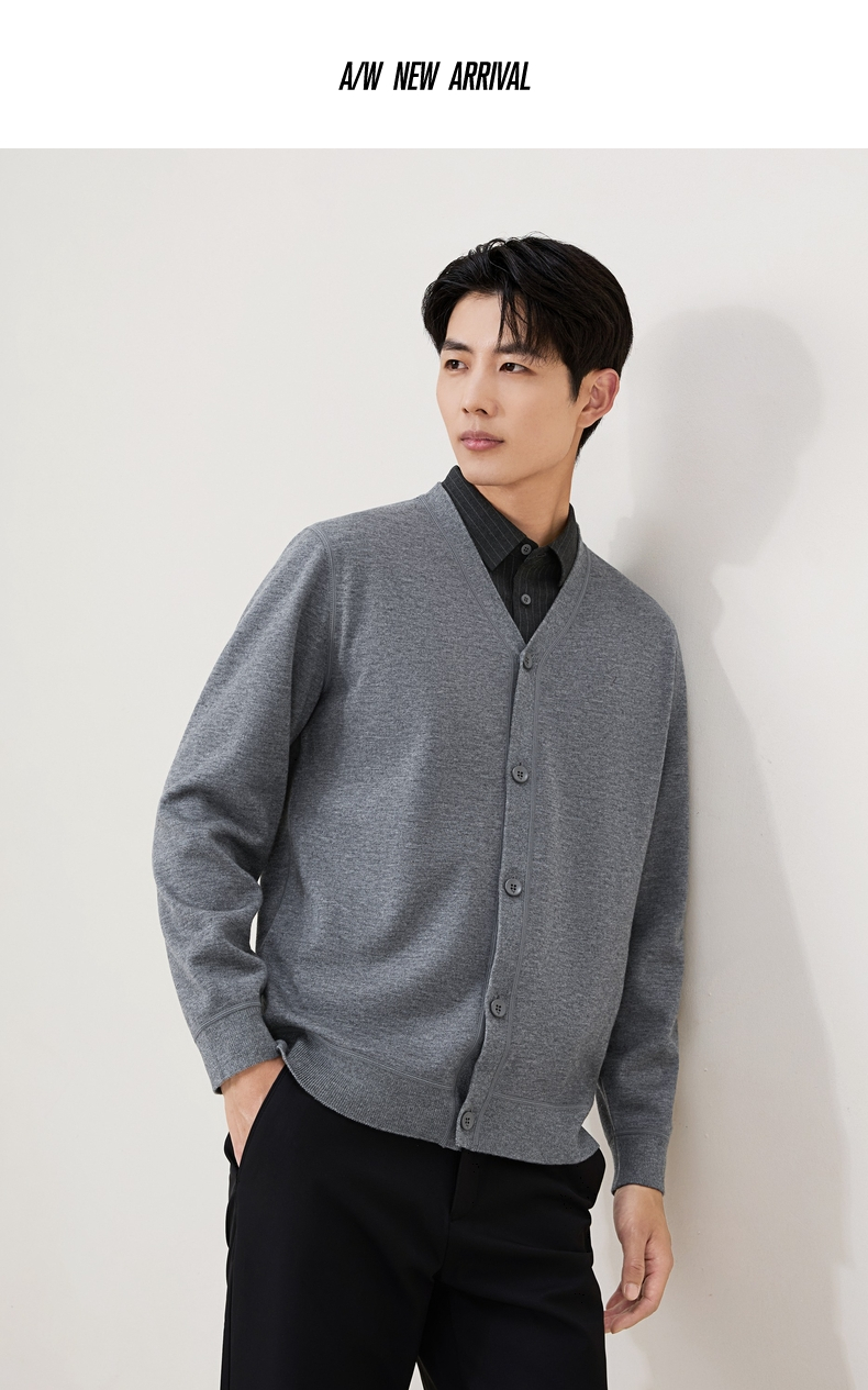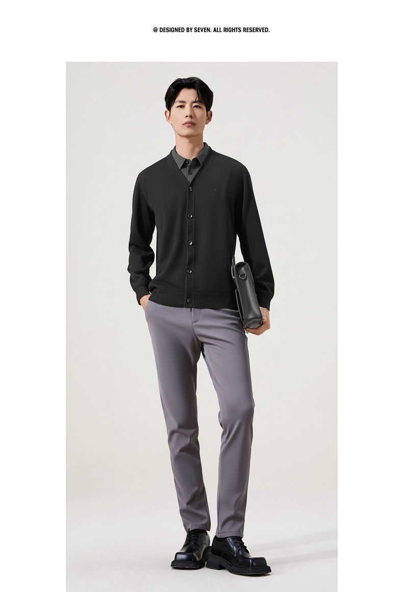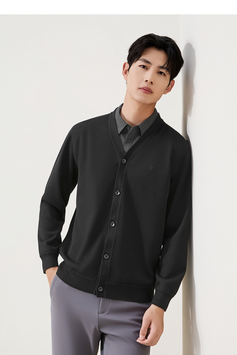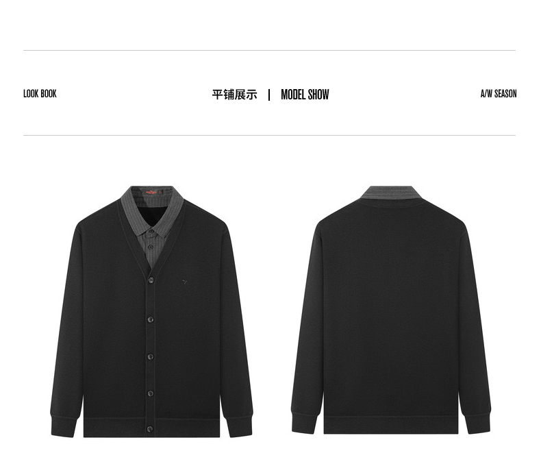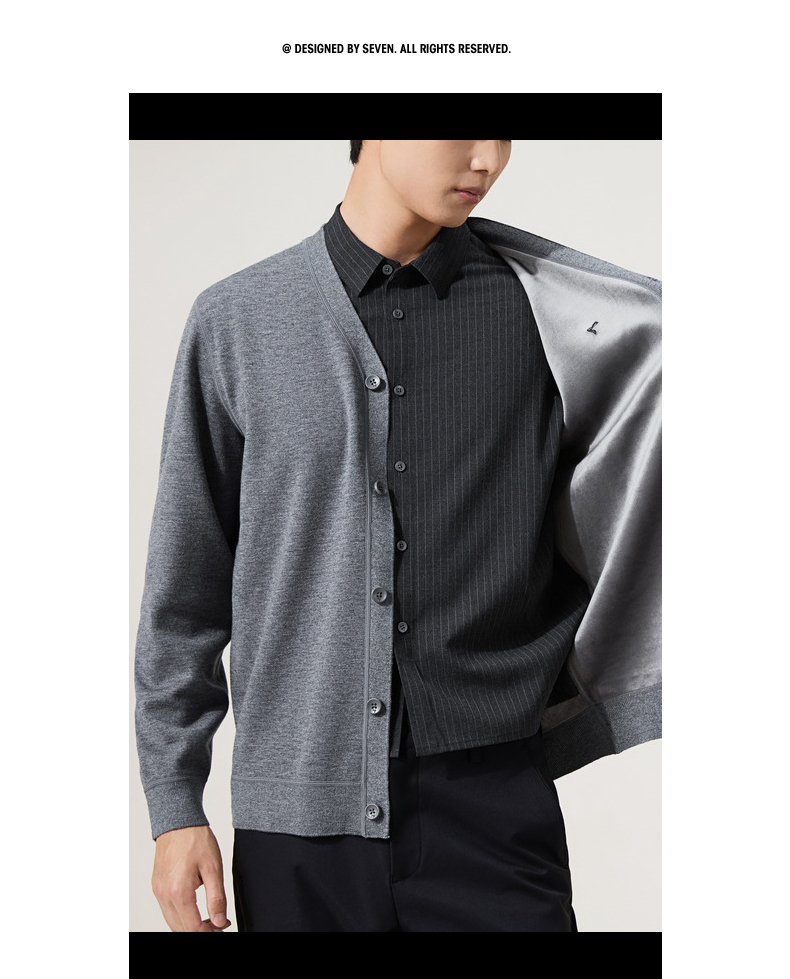 【加绒假两件针织开衫】柒牌男式抗静电可机洗针织衫舒适百搭毛衫129Y70150