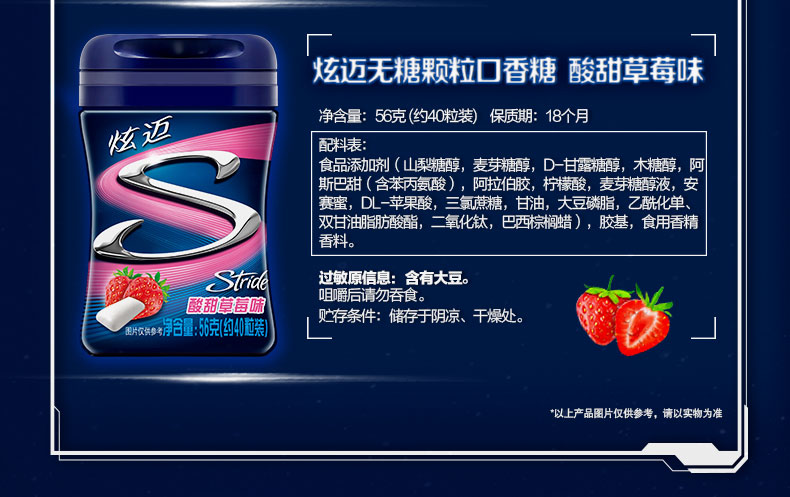 56g炫迈无糖口香糖酸甜草莓味40粒