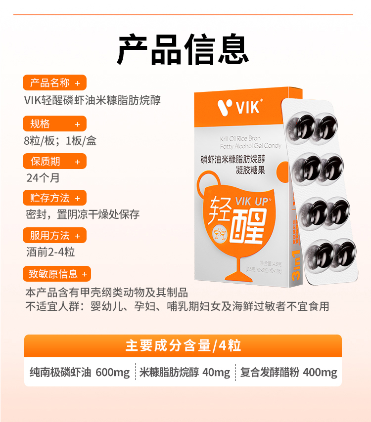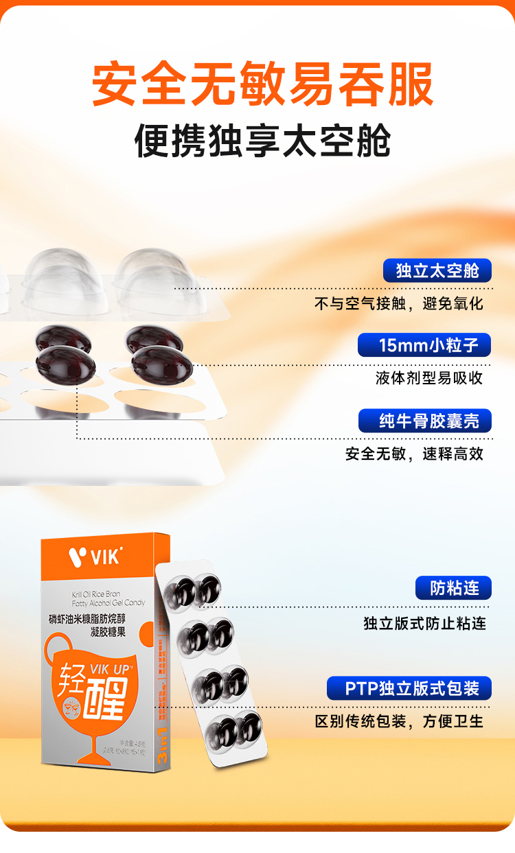【VIK UP轻醒磷虾油米糠脂肪烷醇凝胶糖果】