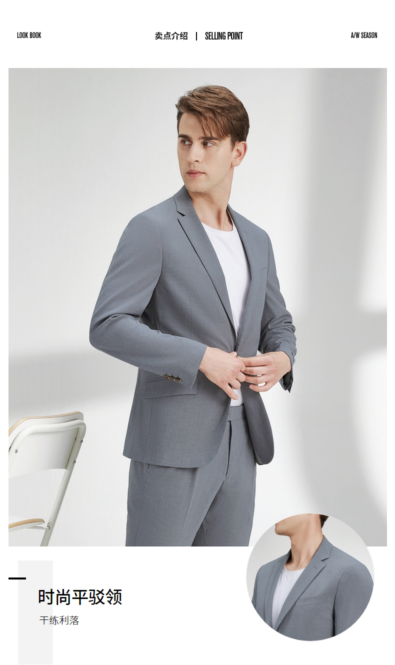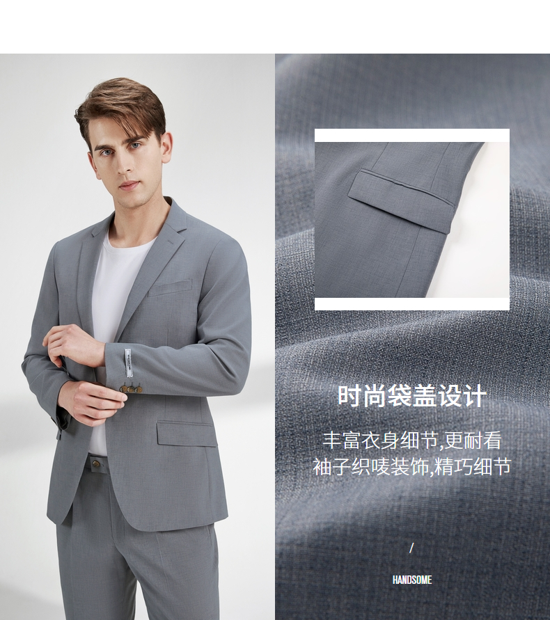 柒牌西装男套装修身商务职业正装休闲外套新郎结婚礼服西服两件套 122C70310