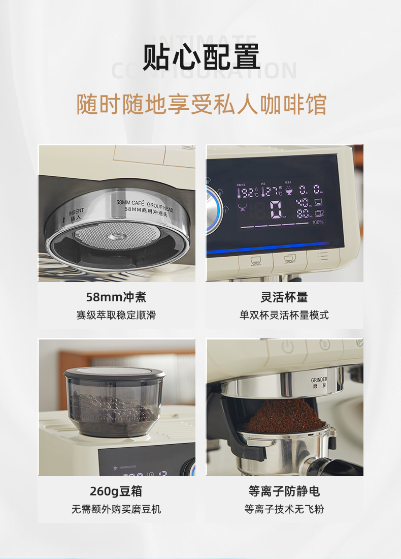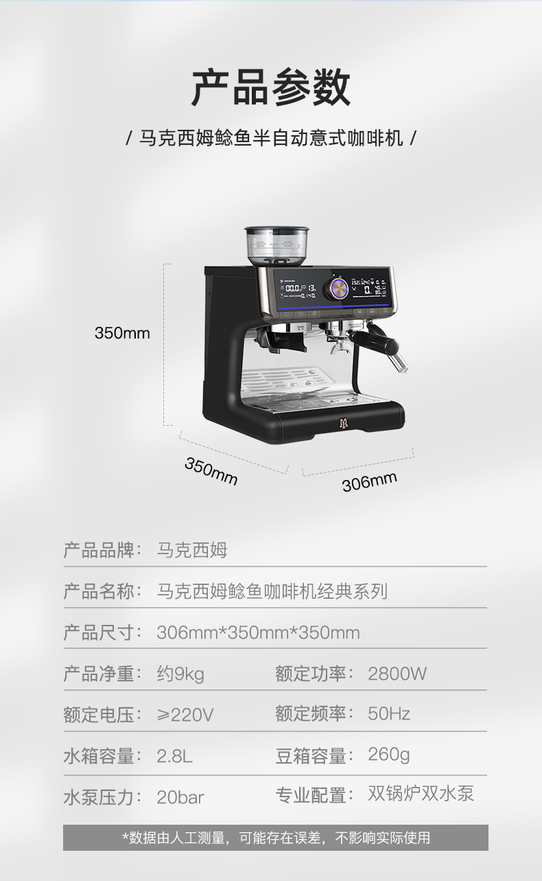 马克西姆鲶鱼意式浓缩咖啡机 黑色 / 米白 全半自动家用小型磨豆一体机