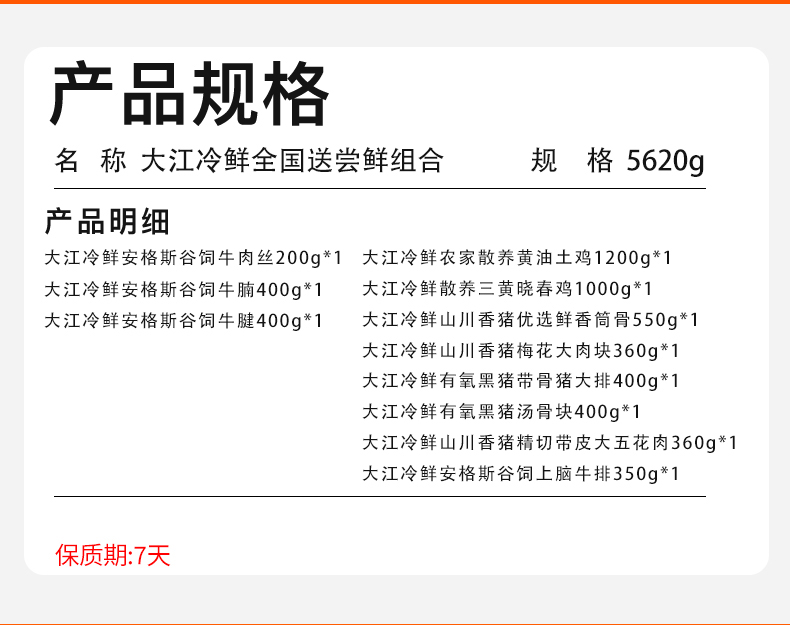 【发出后不支持拦截退货】大江 冷鲜全国送尝鲜组合 5620g