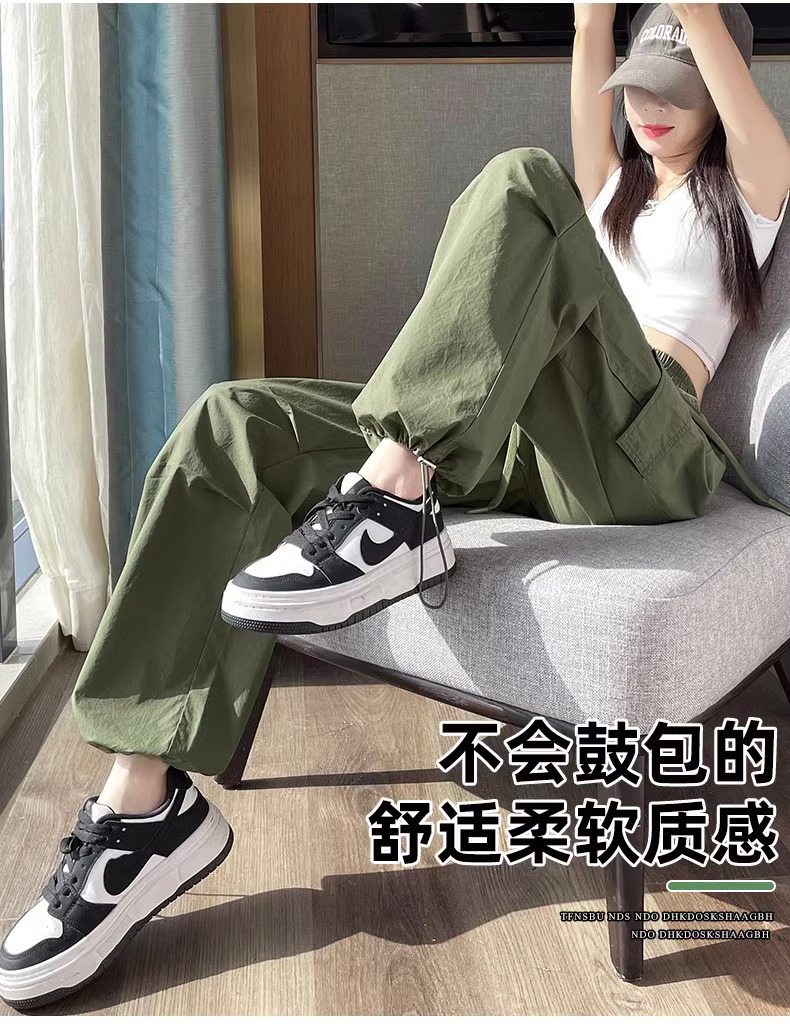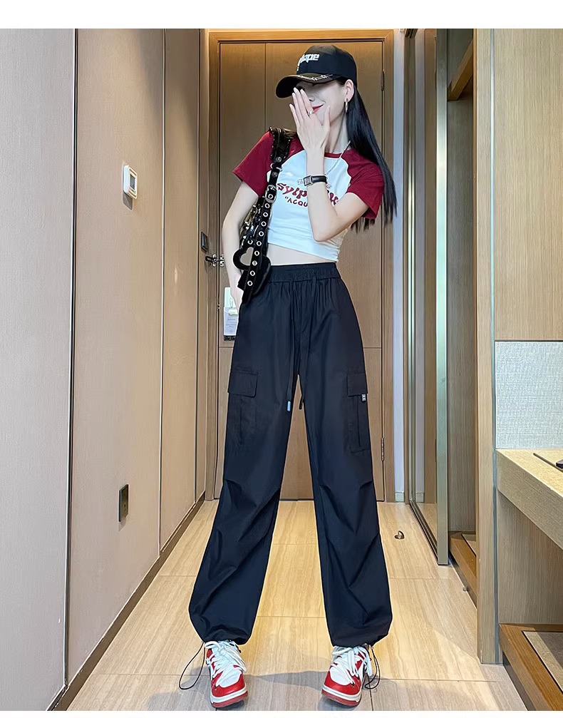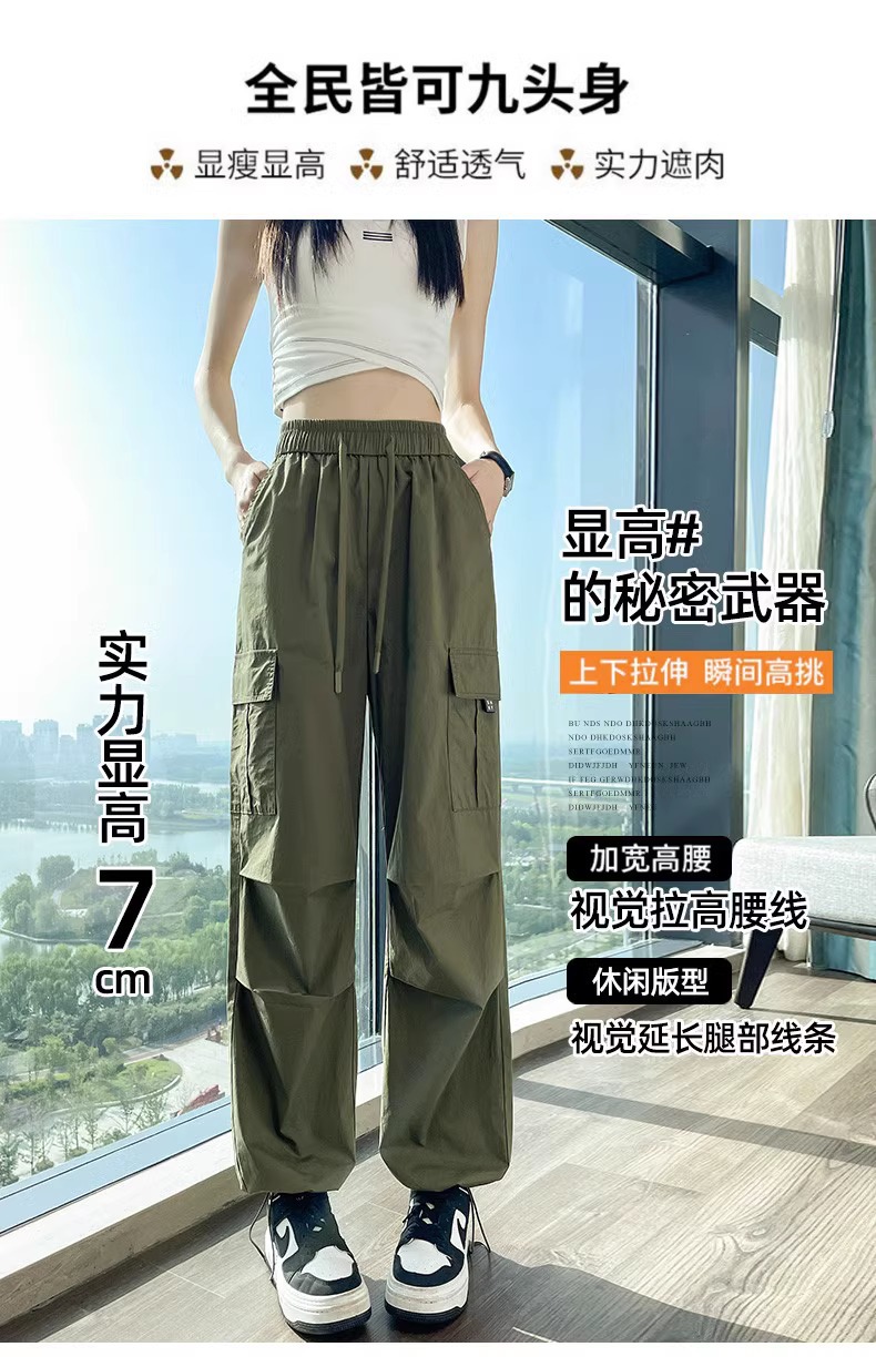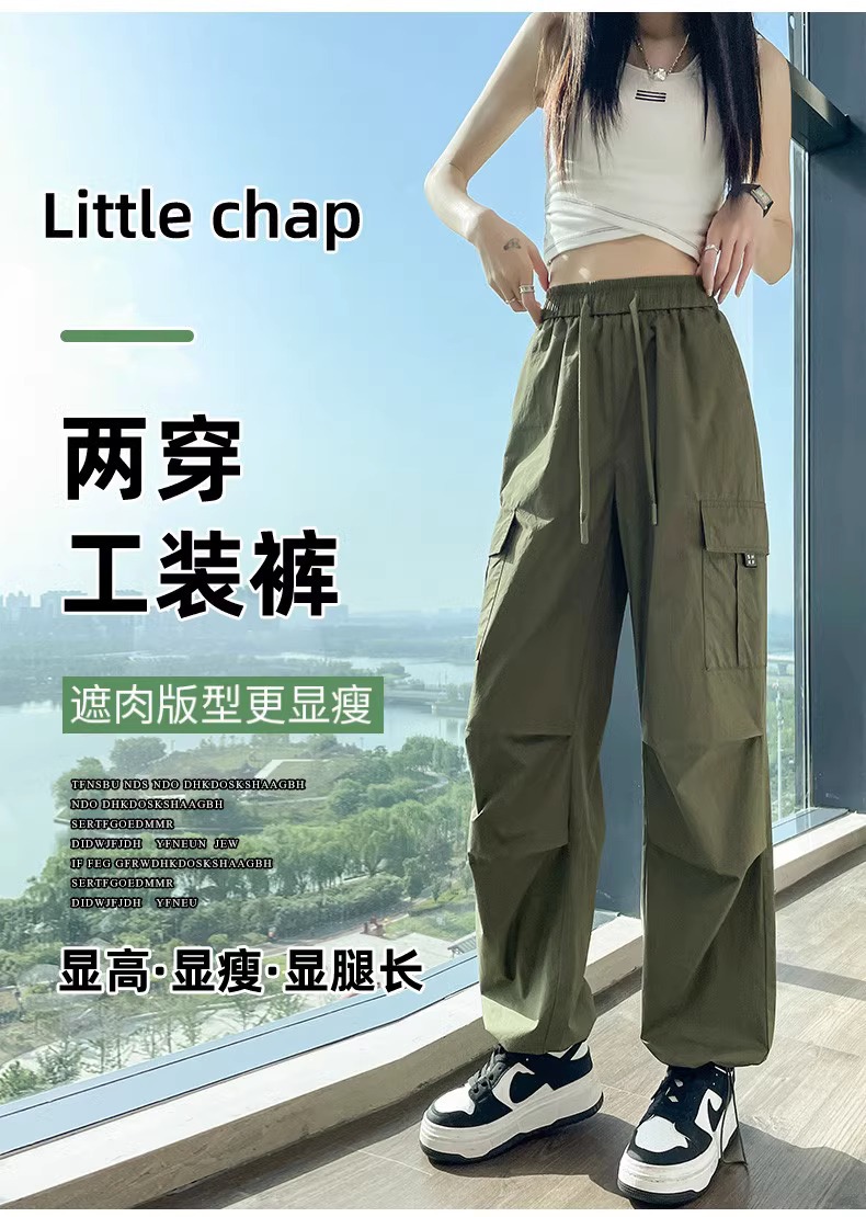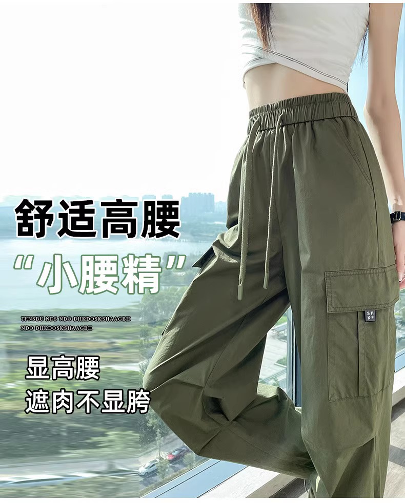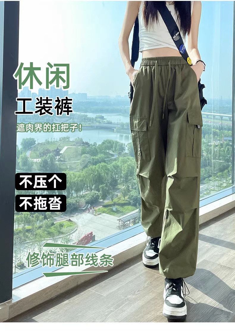 【美式炸街工装裤】夏季新款 抽绳高腰宽松直筒显瘦休闲束脚运动裤潮