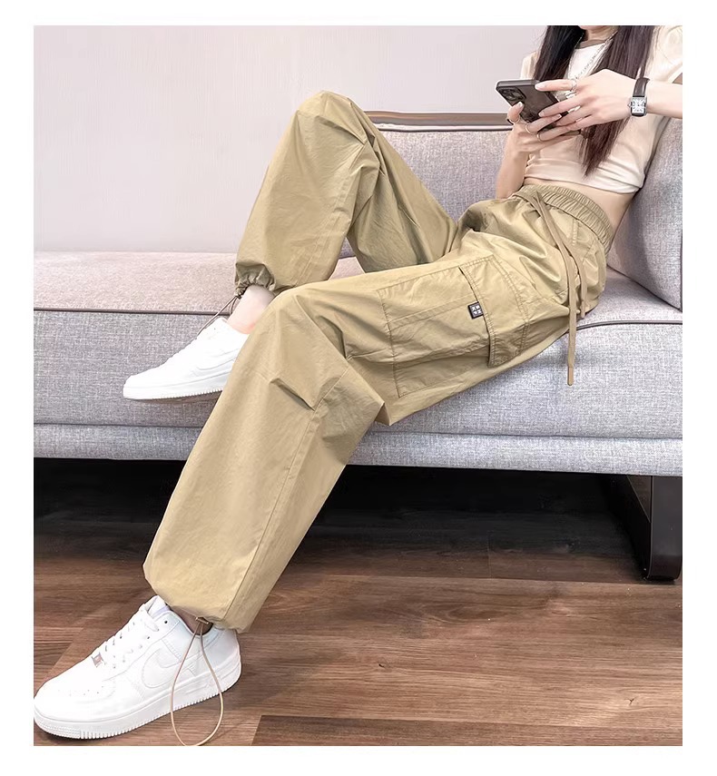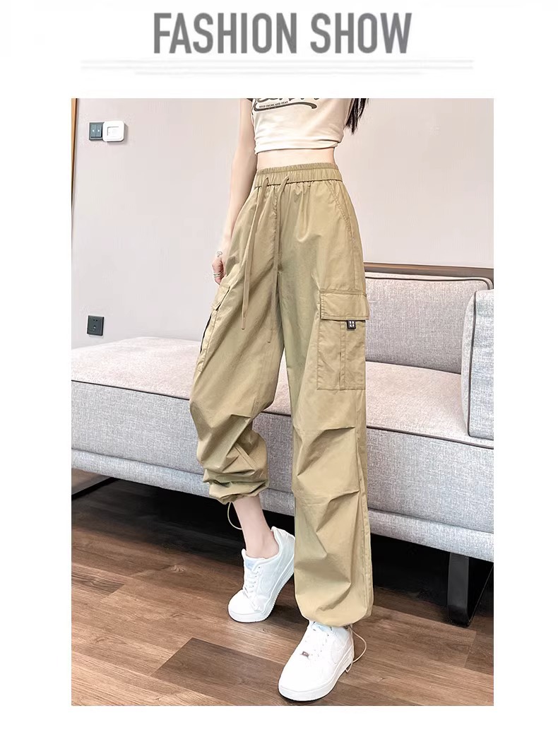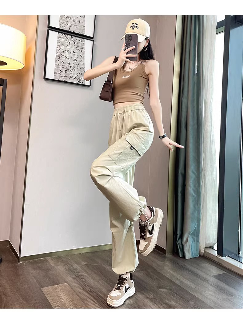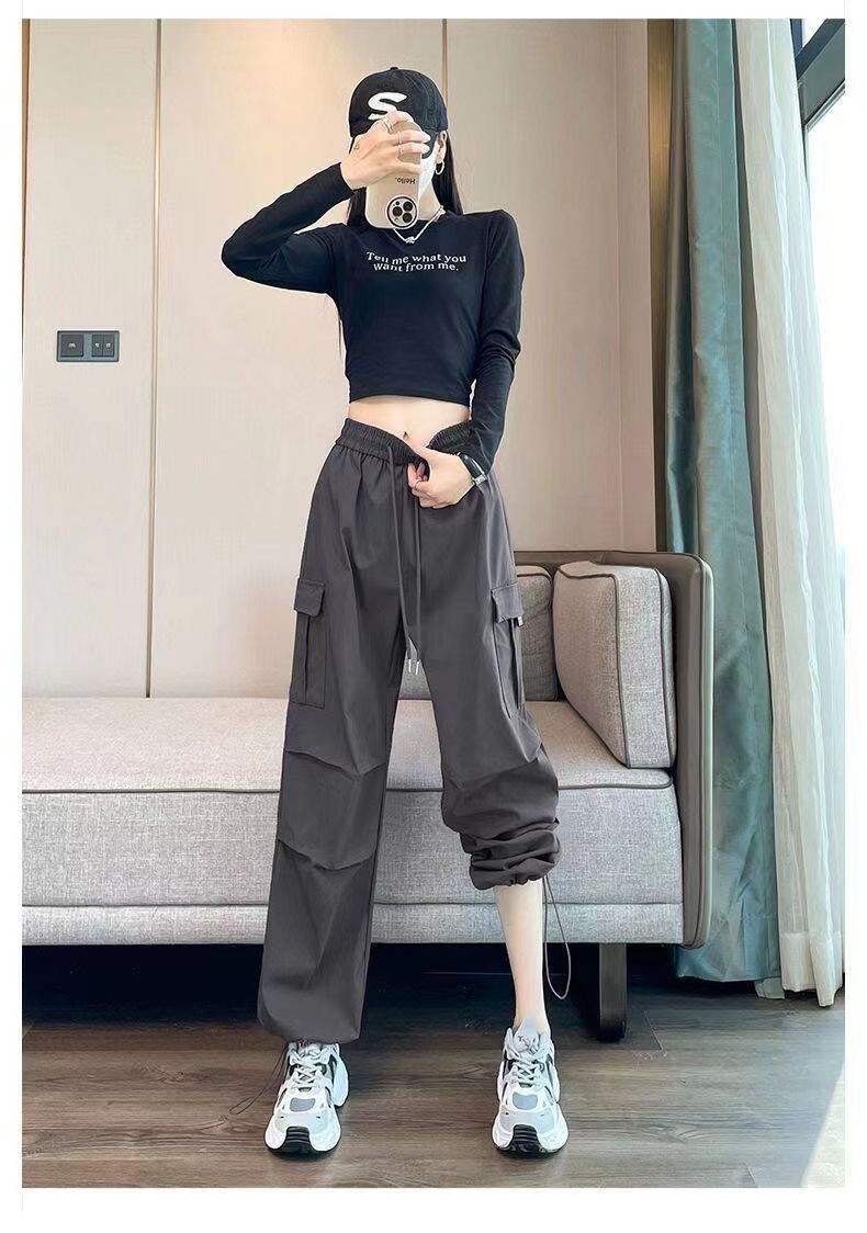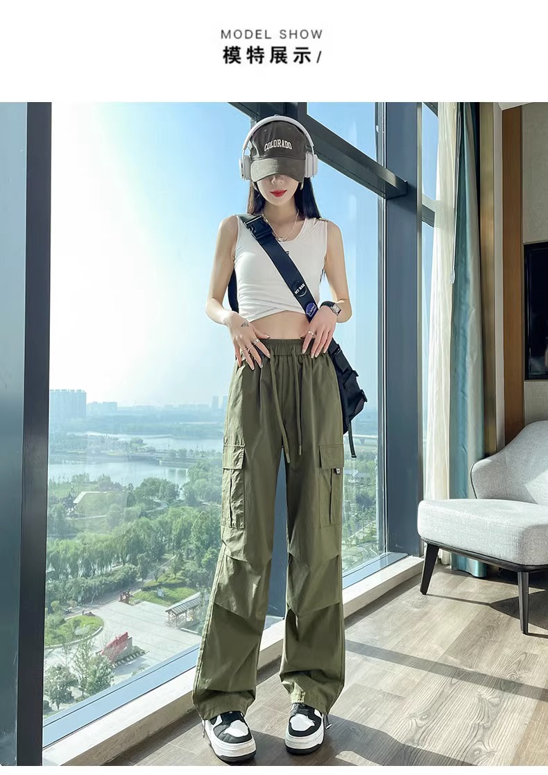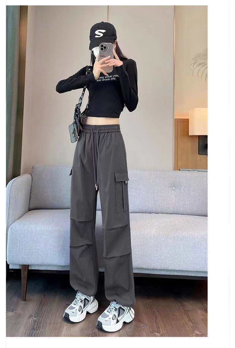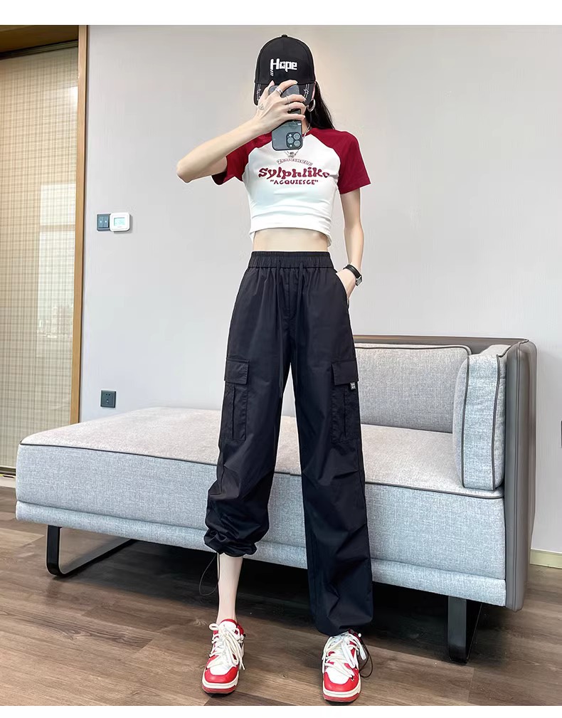 【美式炸街工装裤】夏季新款 抽绳高腰宽松直筒显瘦休闲束脚运动裤潮