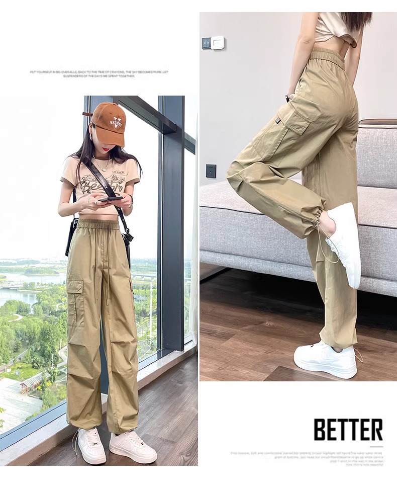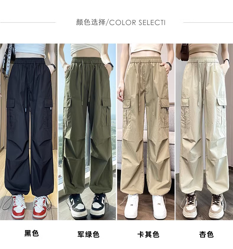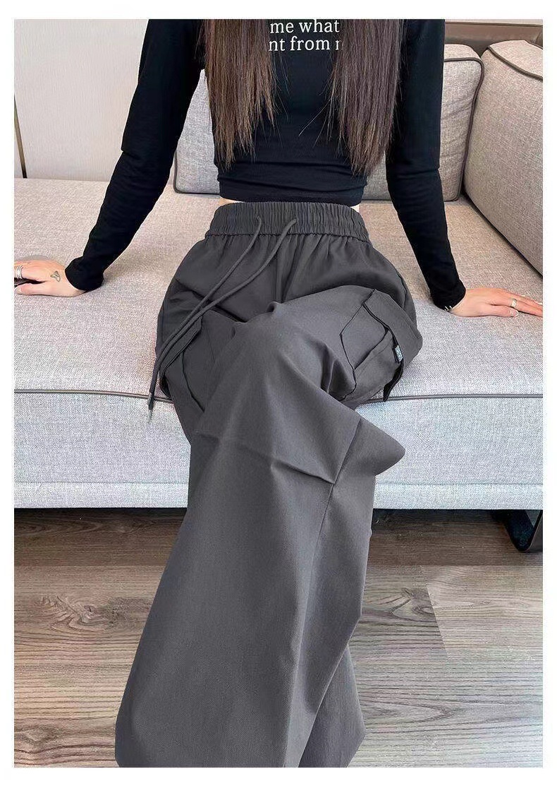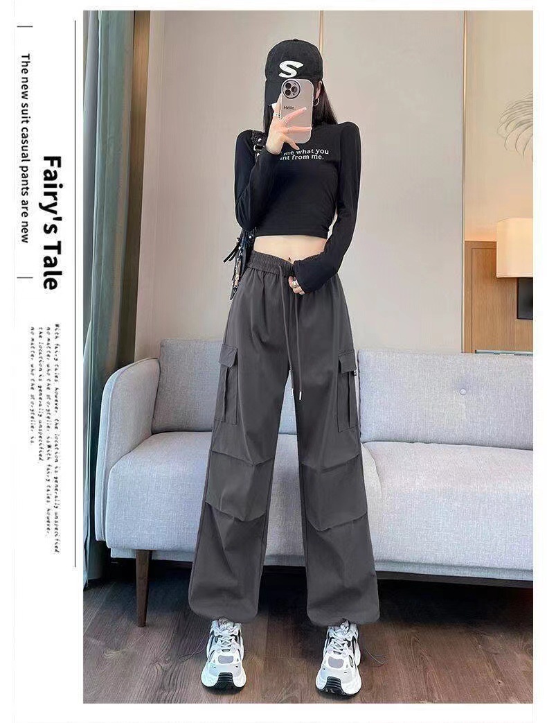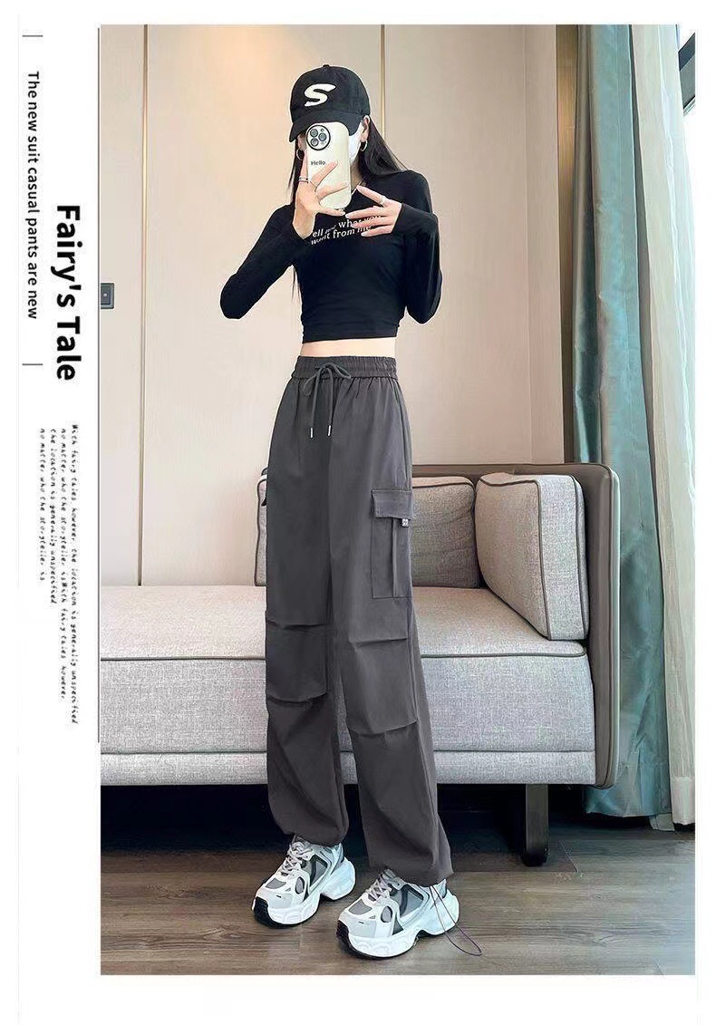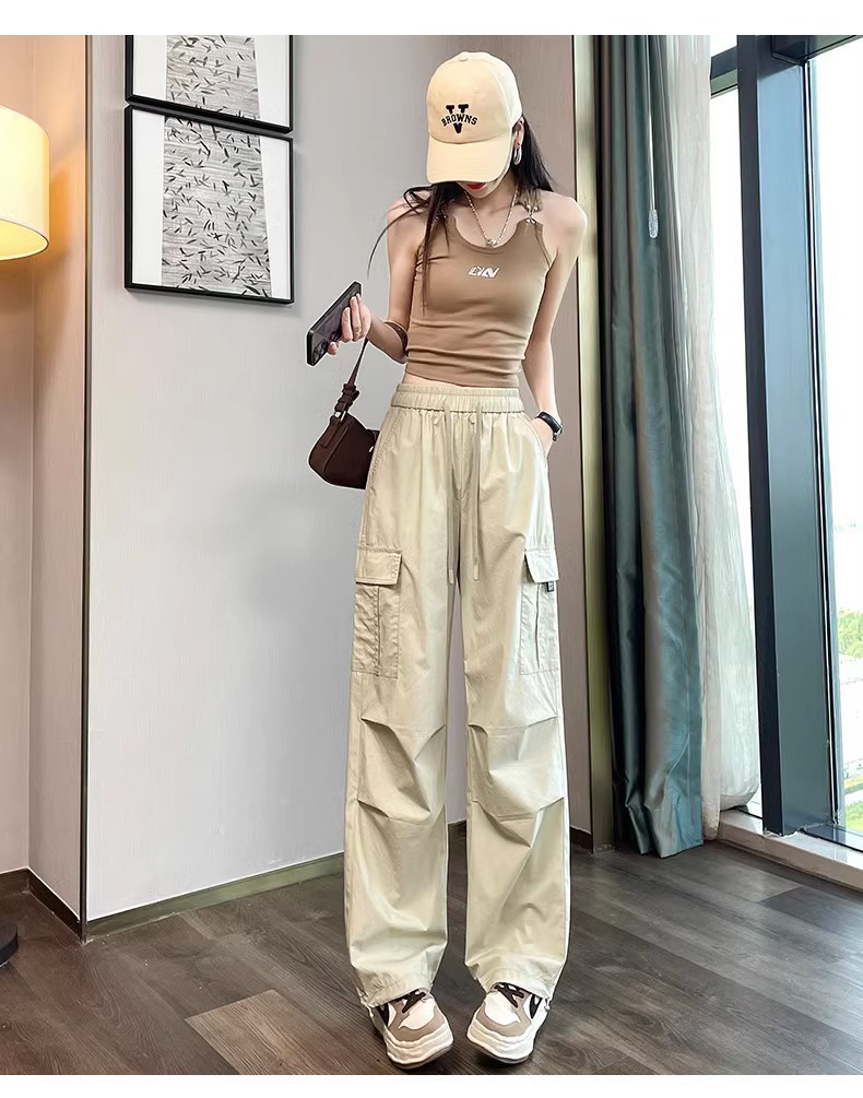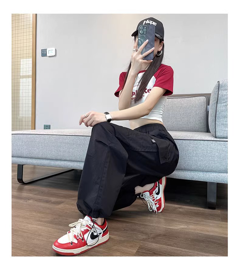 【美式炸街工装裤】夏季新款 抽绳高腰宽松直筒显瘦休闲束脚运动裤潮
