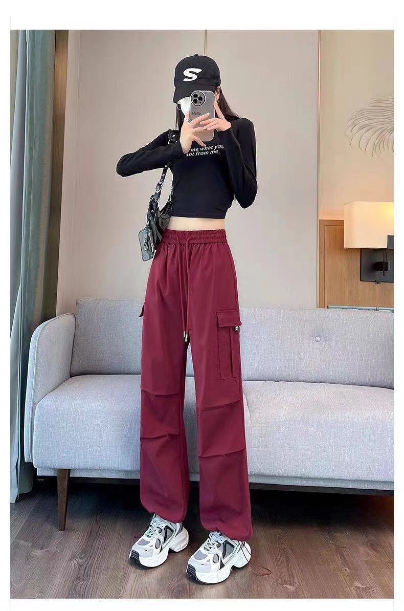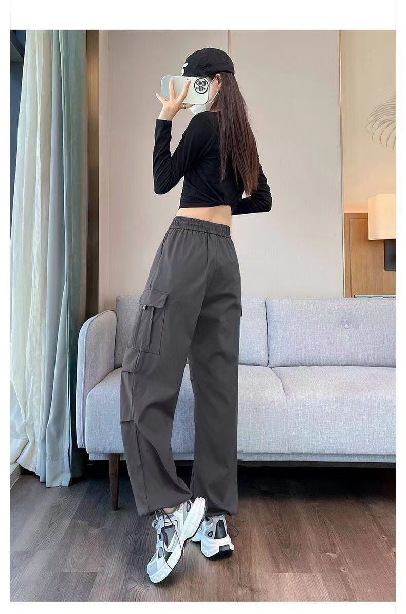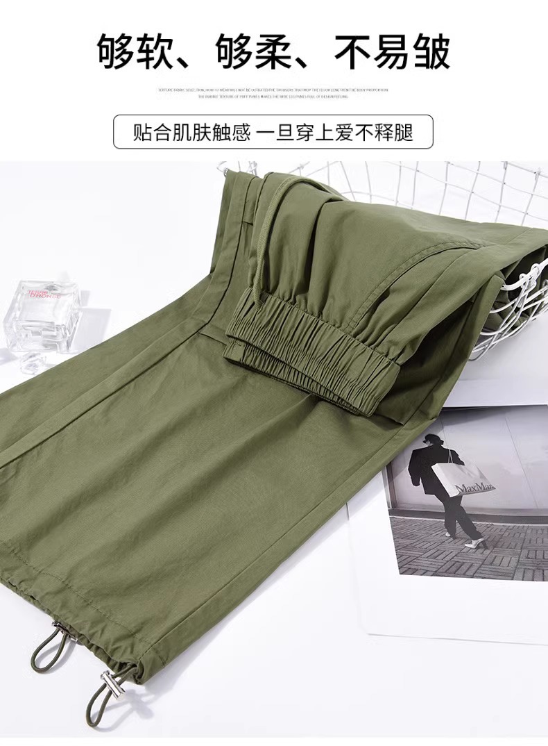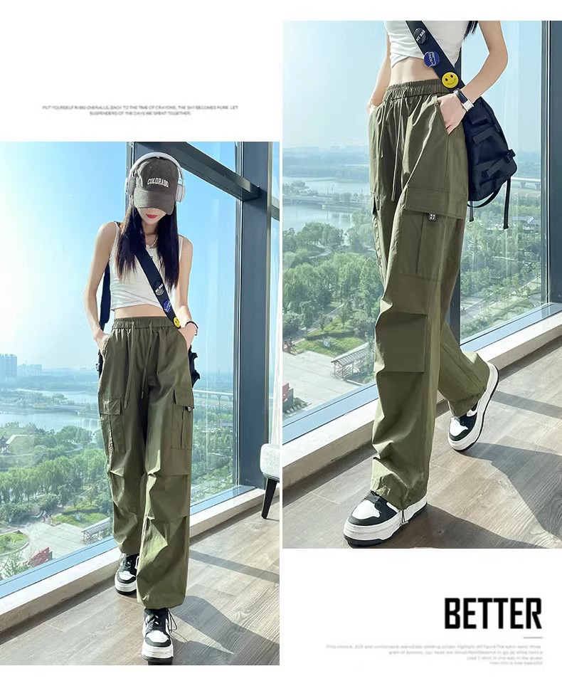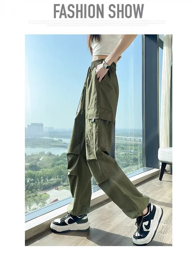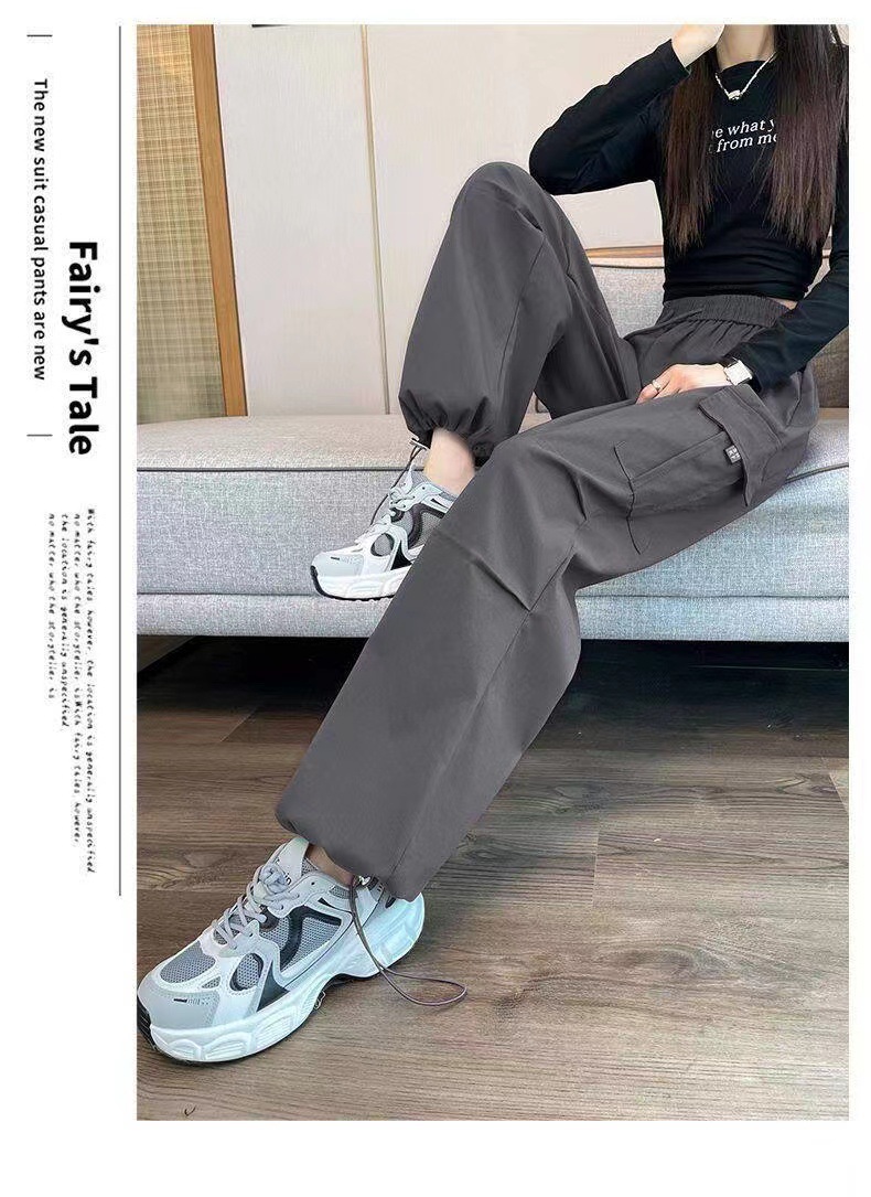 【美式炸街工装裤】夏季新款 抽绳高腰宽松直筒显瘦休闲束脚运动裤潮