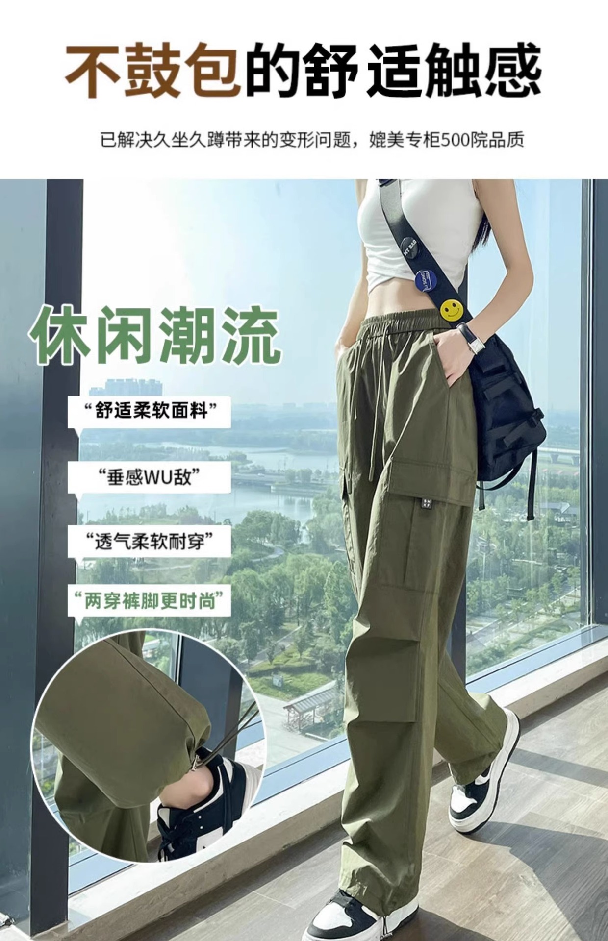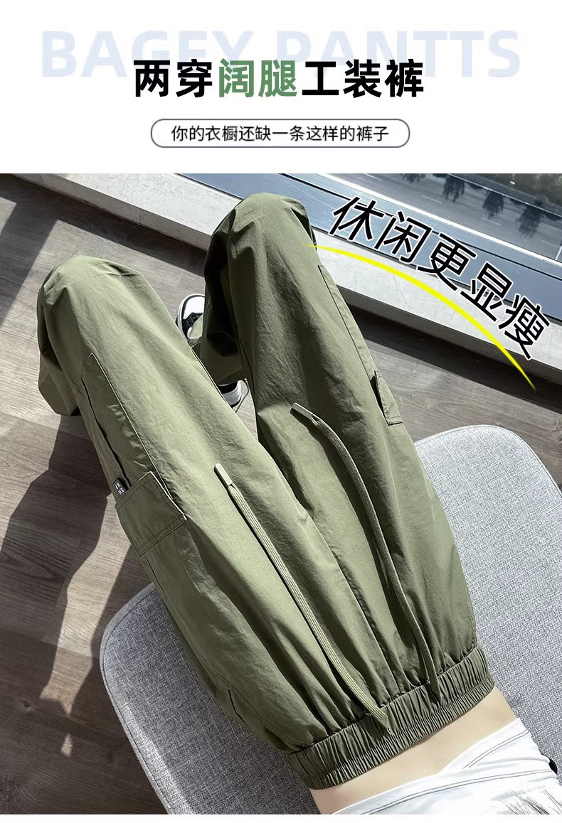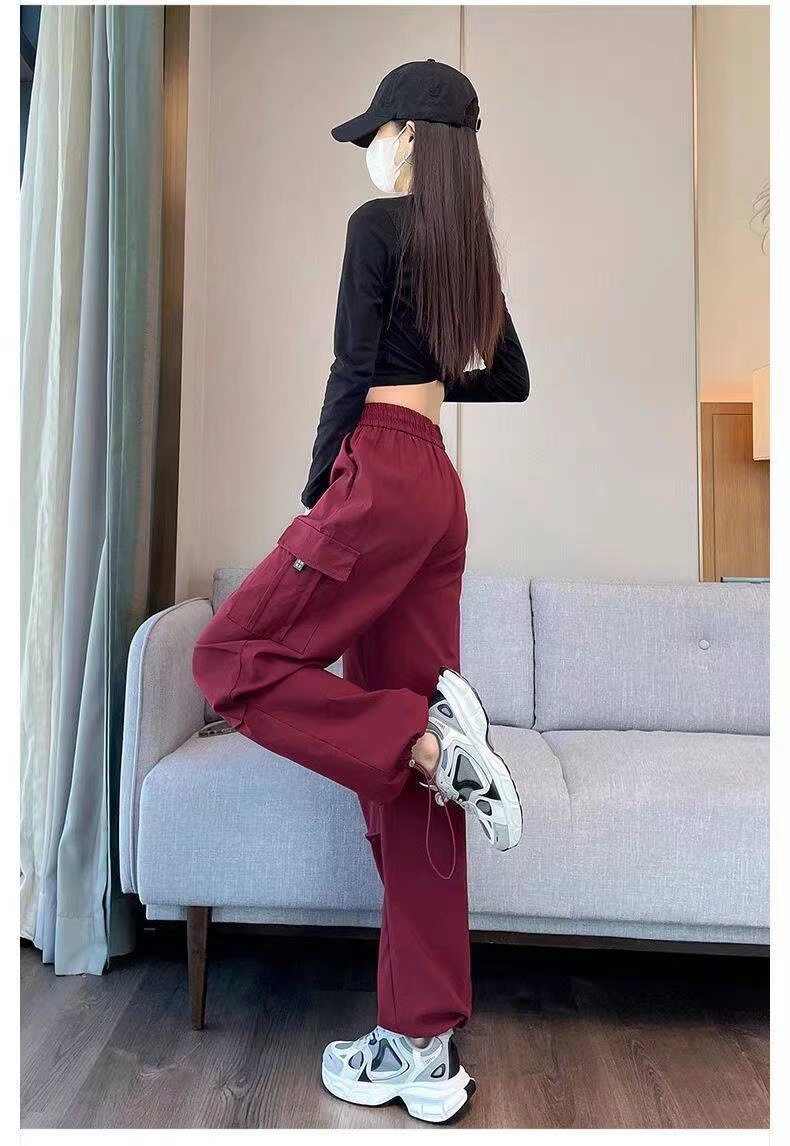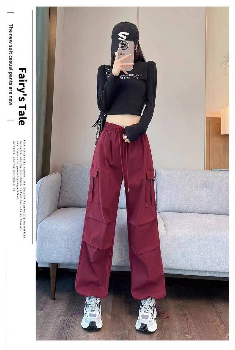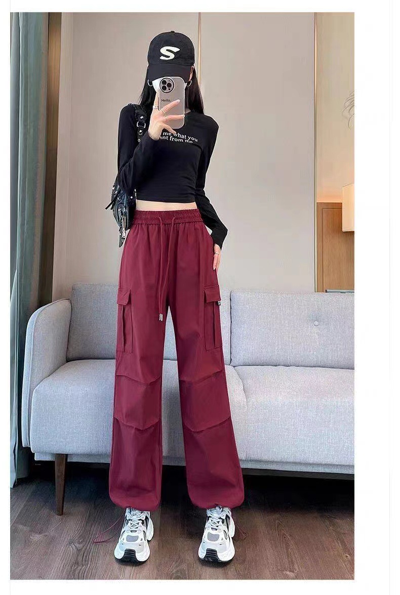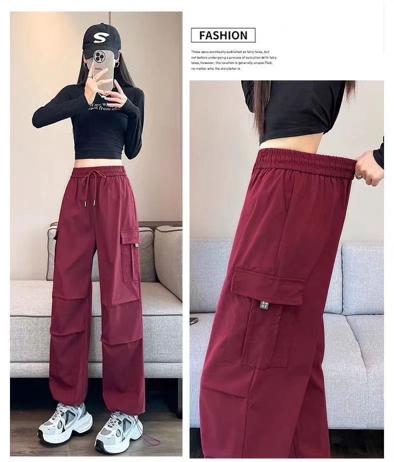 【美式炸街工装裤】夏季新款 抽绳高腰宽松直筒显瘦休闲束脚运动裤潮