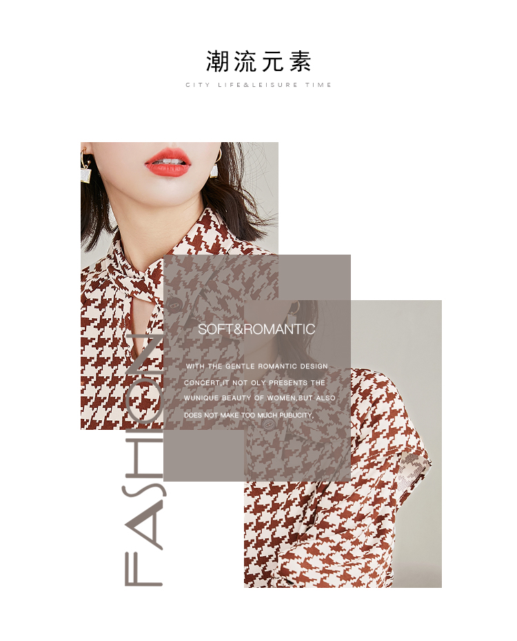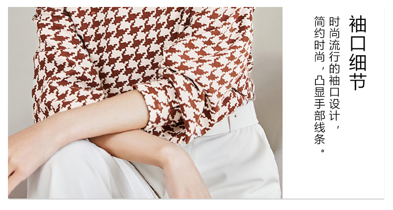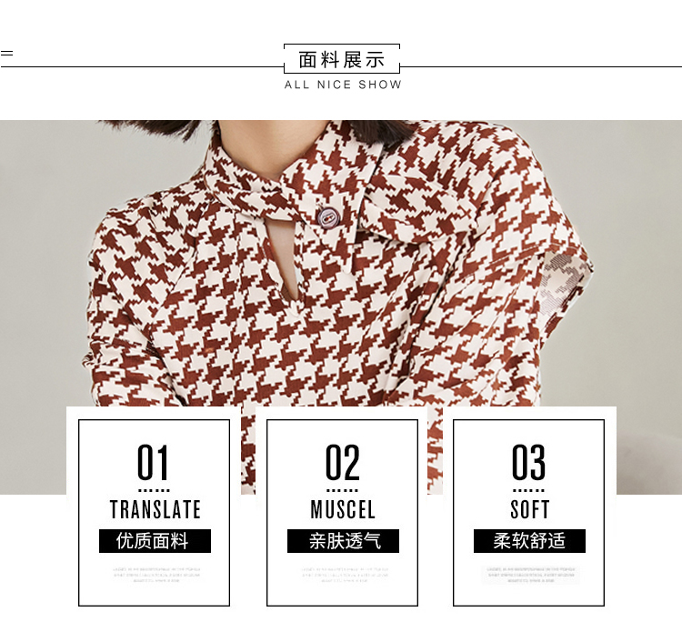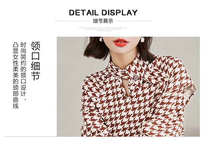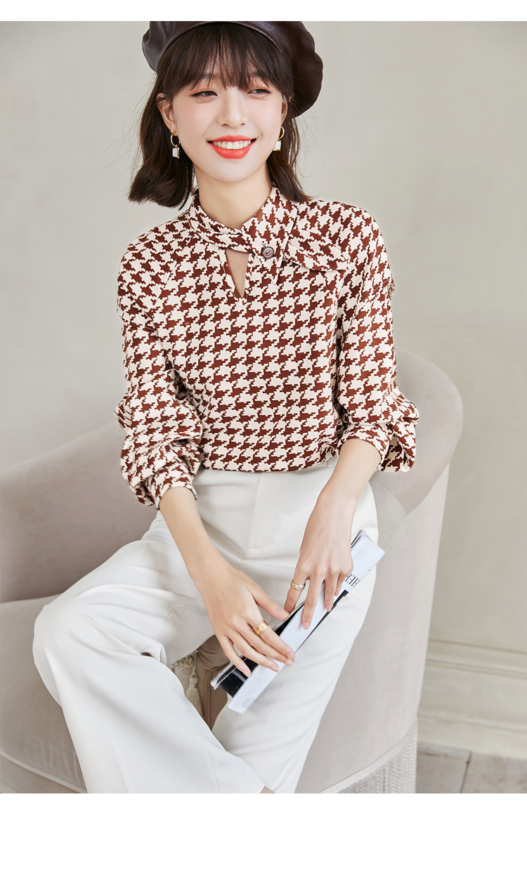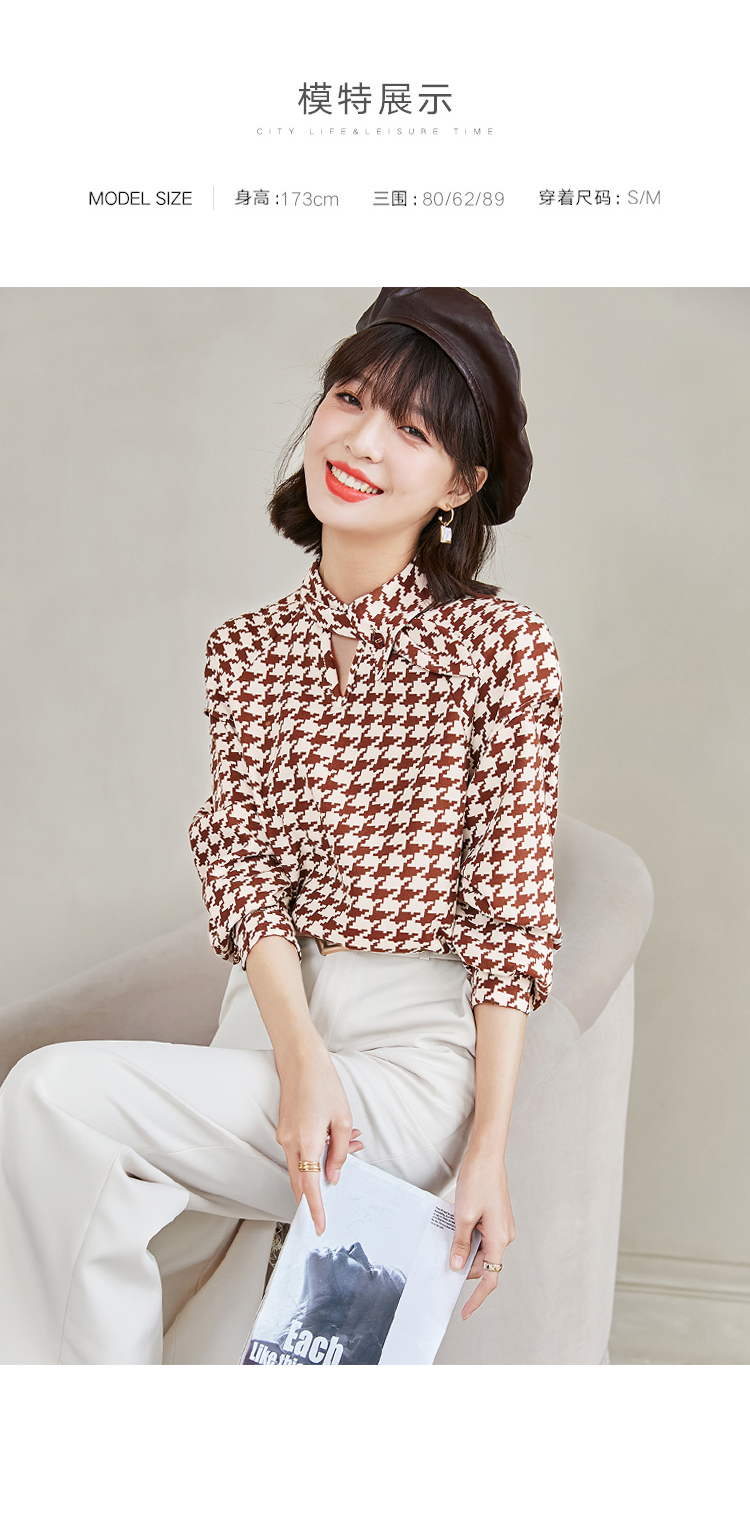 早春千鸟格子衬衫女设计感小众不对称别致漂亮挂脖领长袖雪纺上衣 NSM1854