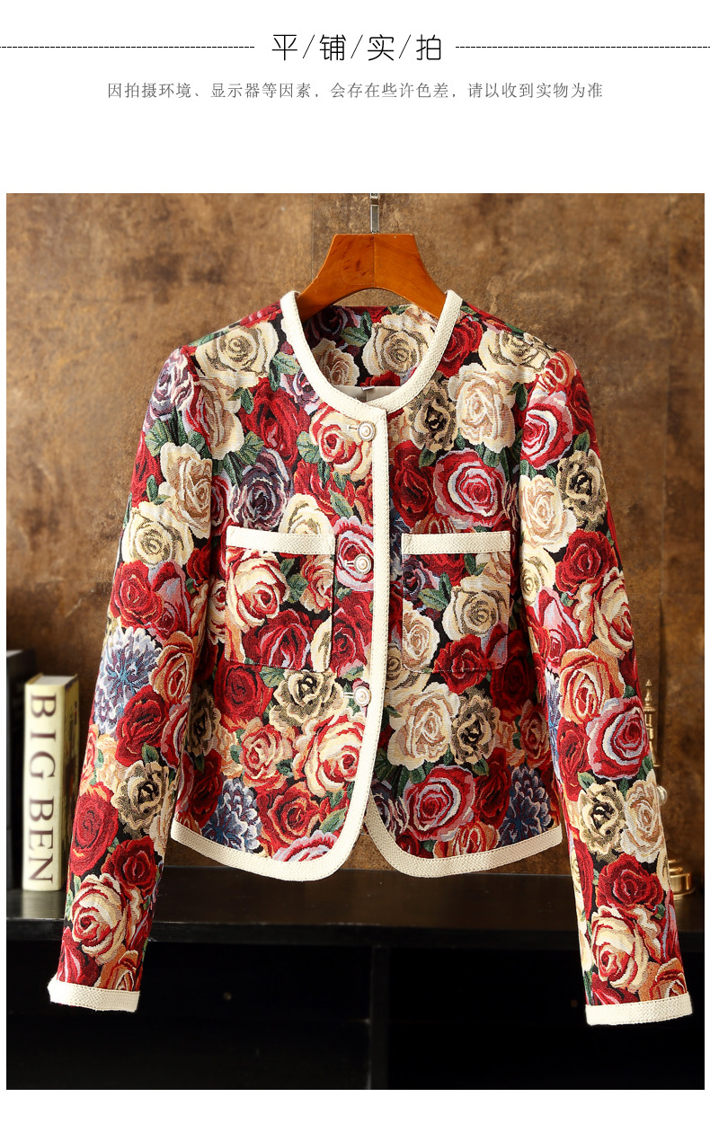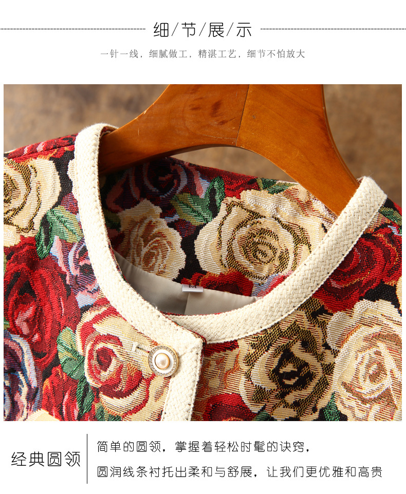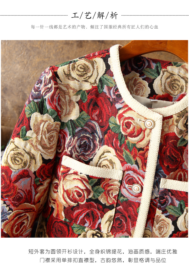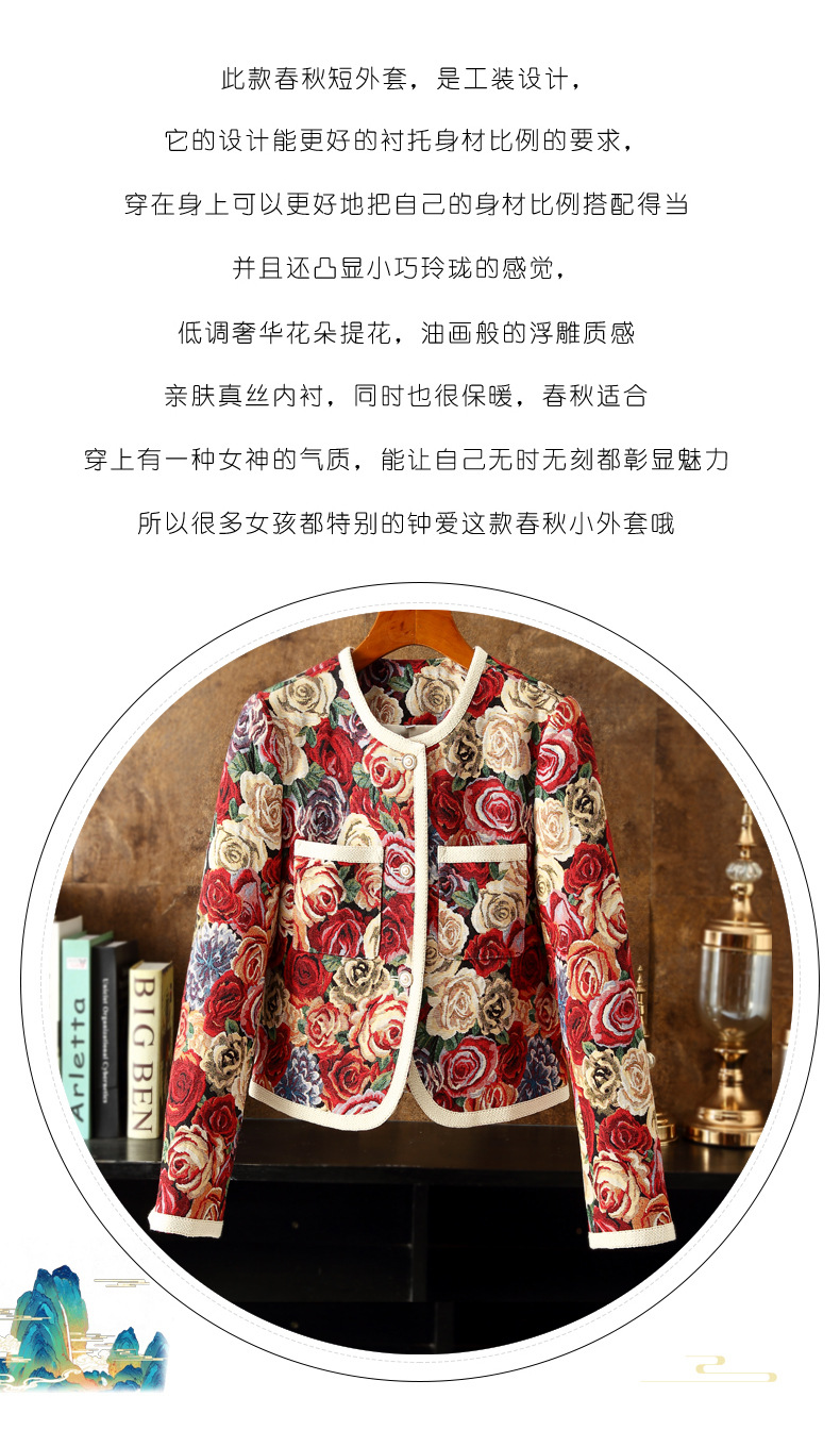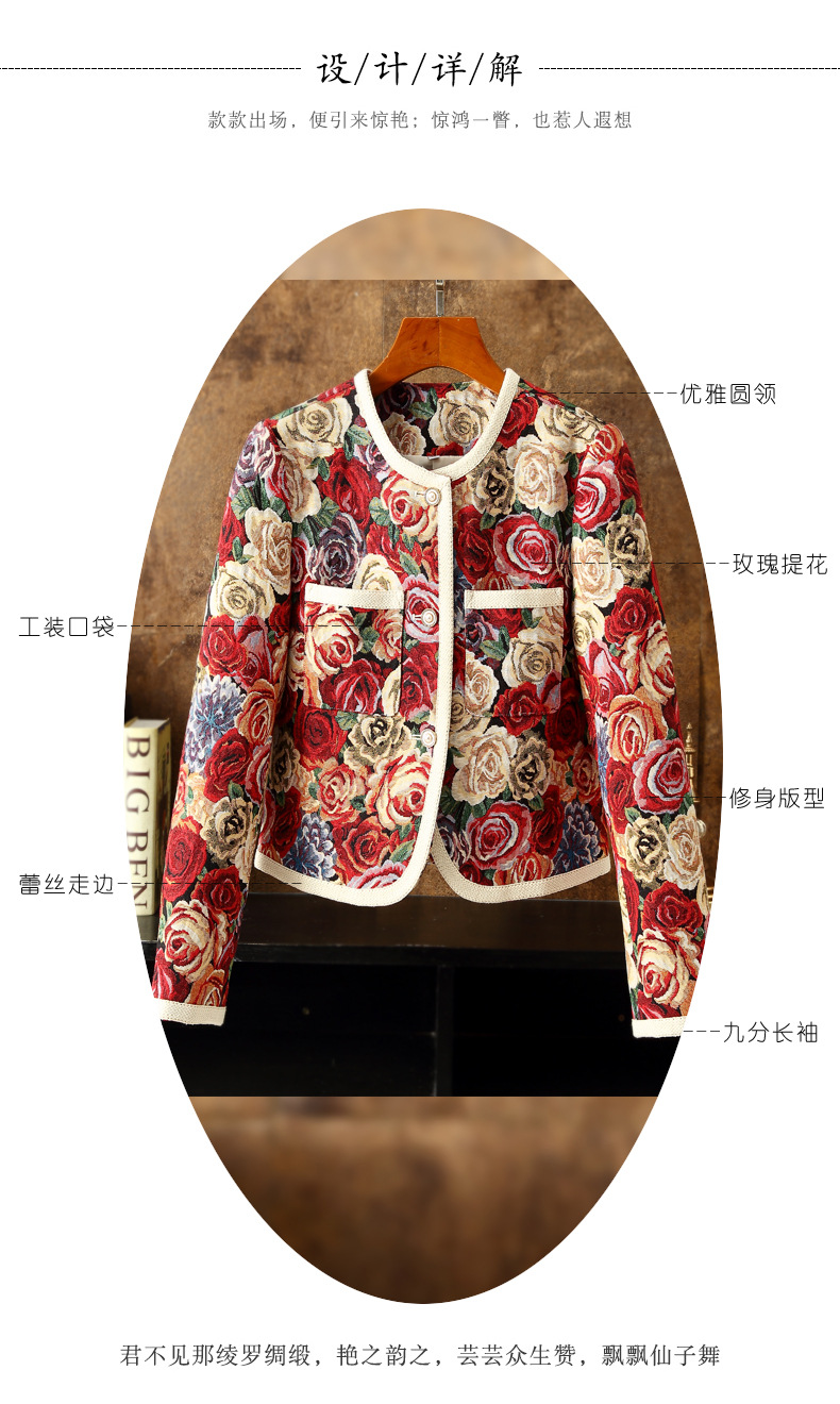 春秋新款短外套,百搭圆领九分袖织锦玫瑰提花油画气质女小外披ZSM-220911