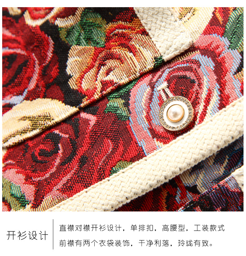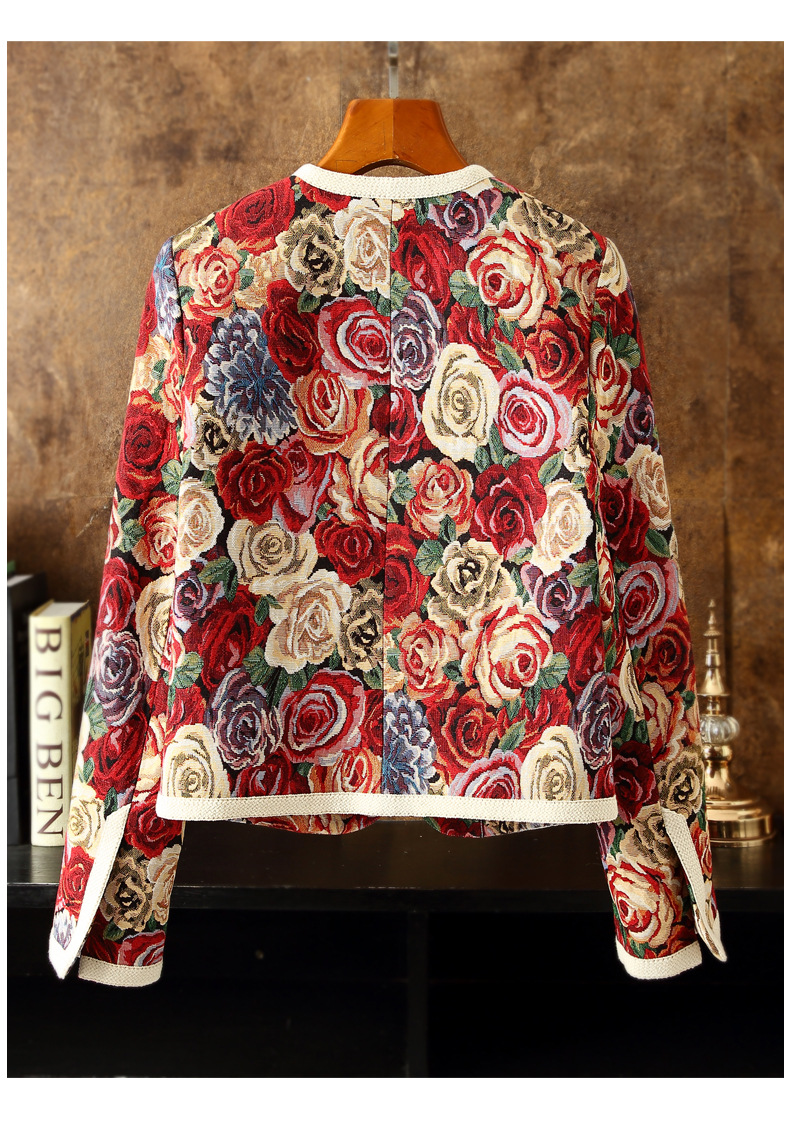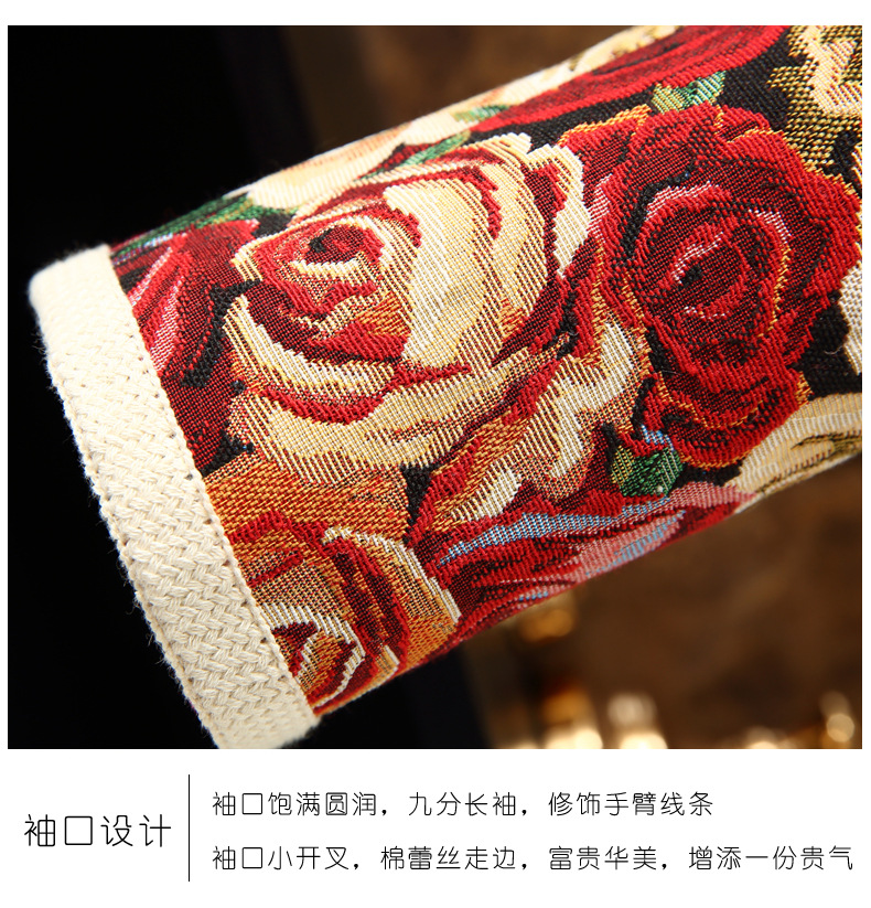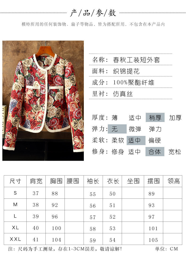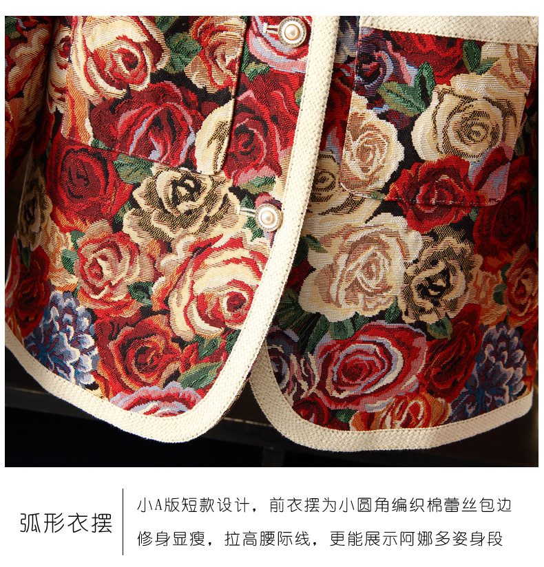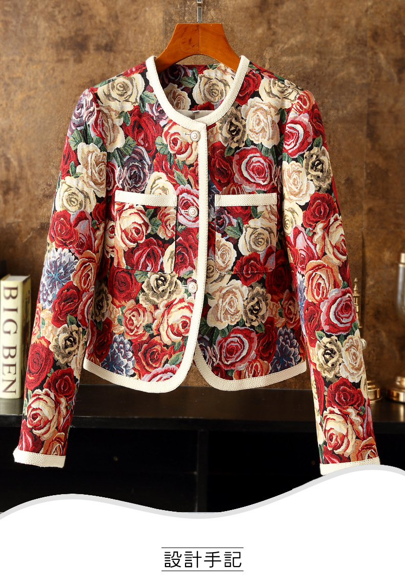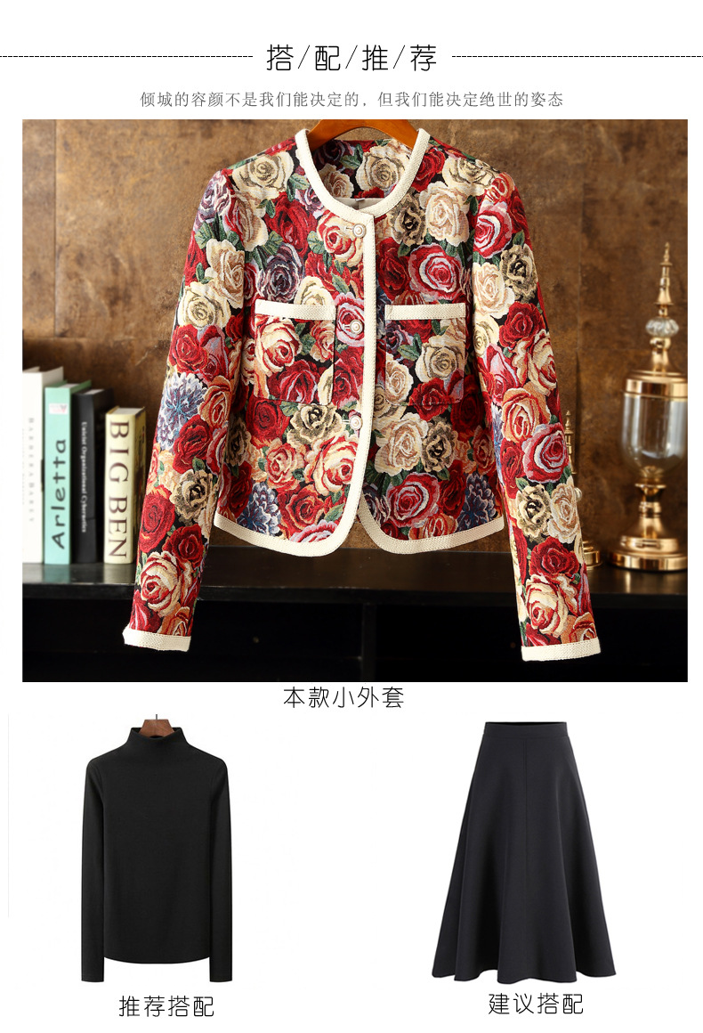 春秋新款短外套,百搭圆领九分袖织锦玫瑰提花油画气质女小外披ZSM-220911