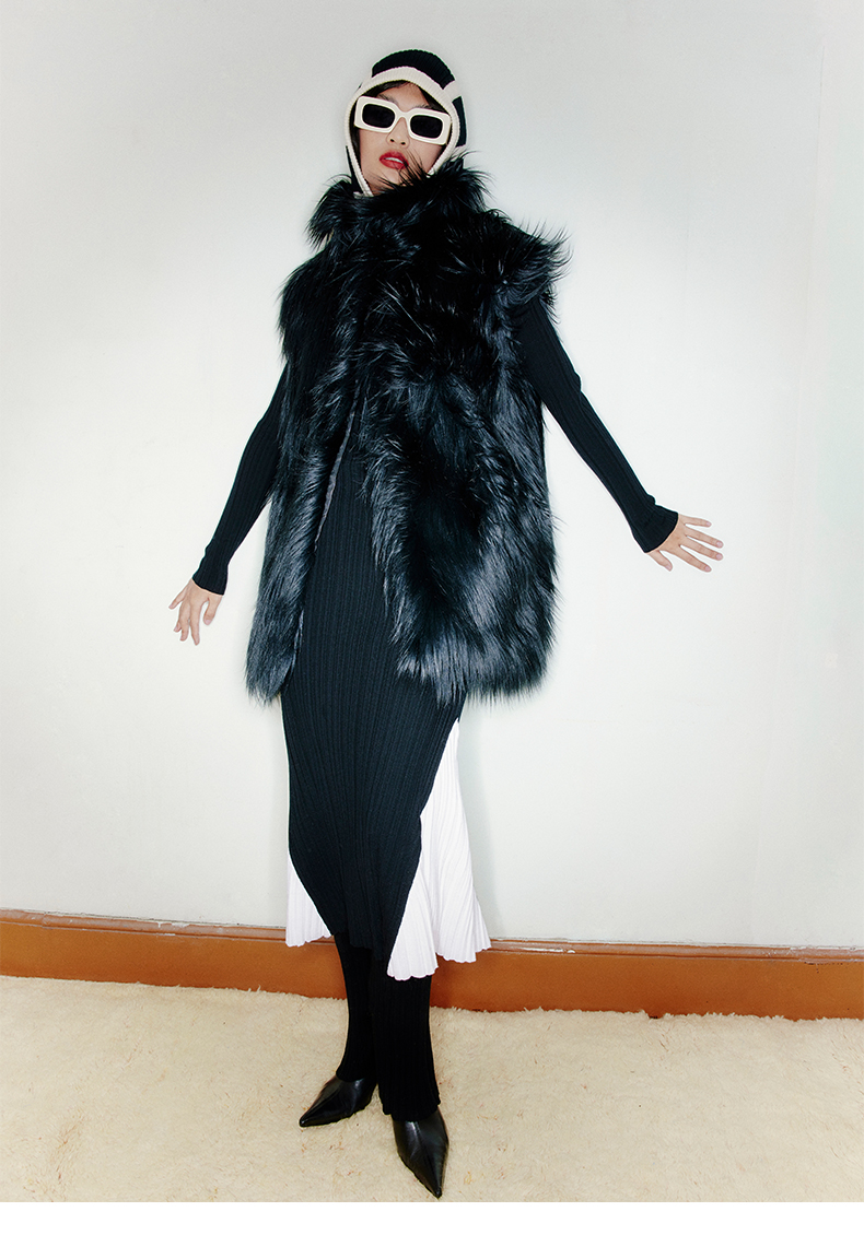 【夜皇后】重工设计长毛环保皮草中长款马甲/220045