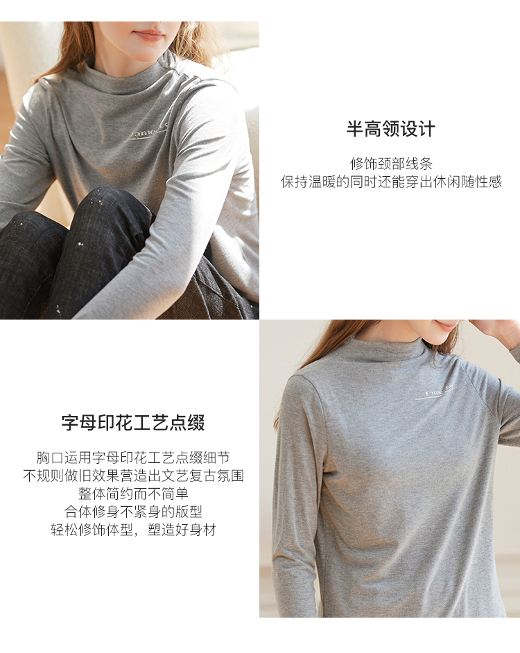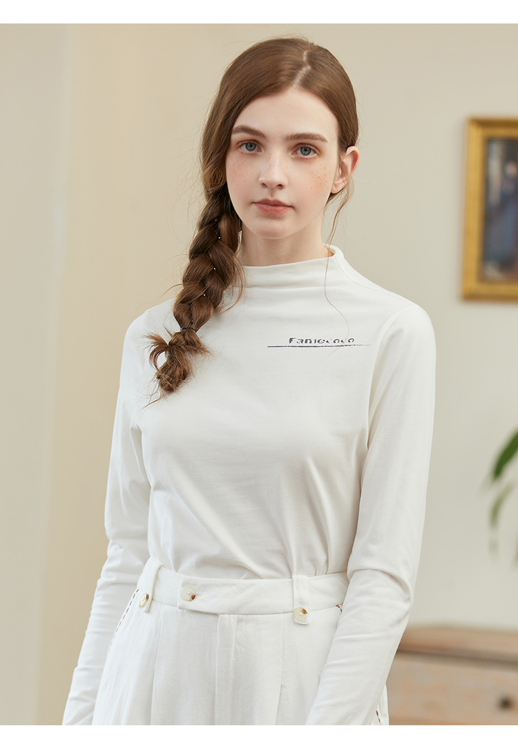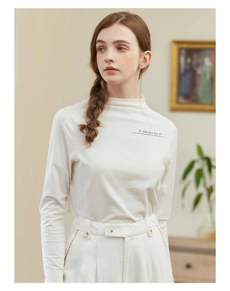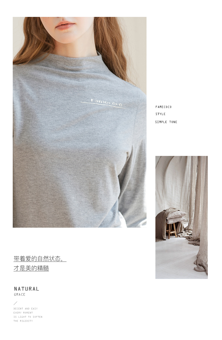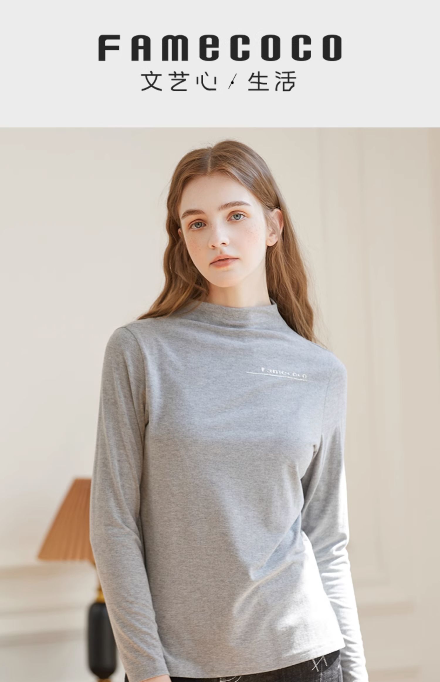 Famecoco范可儿长袖T恤印花半高领长袖打底衫上衣女F225BB004