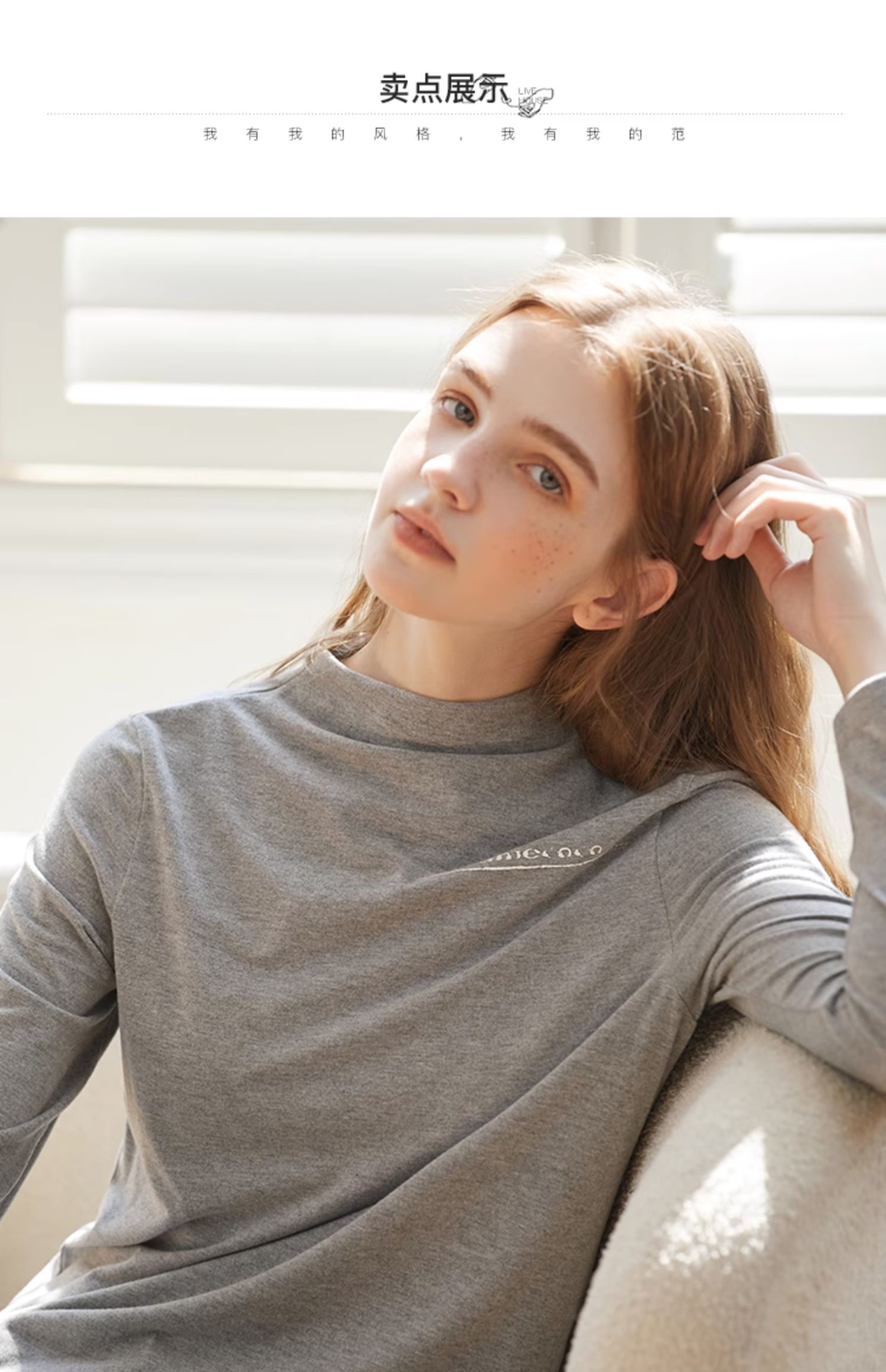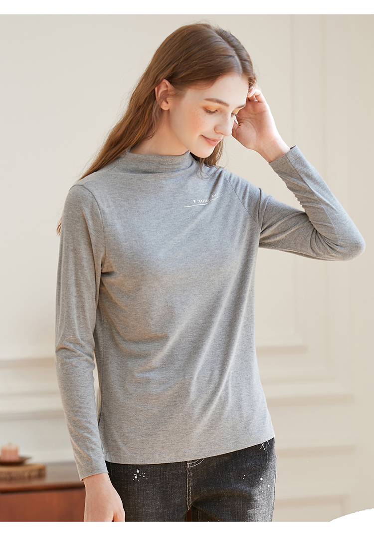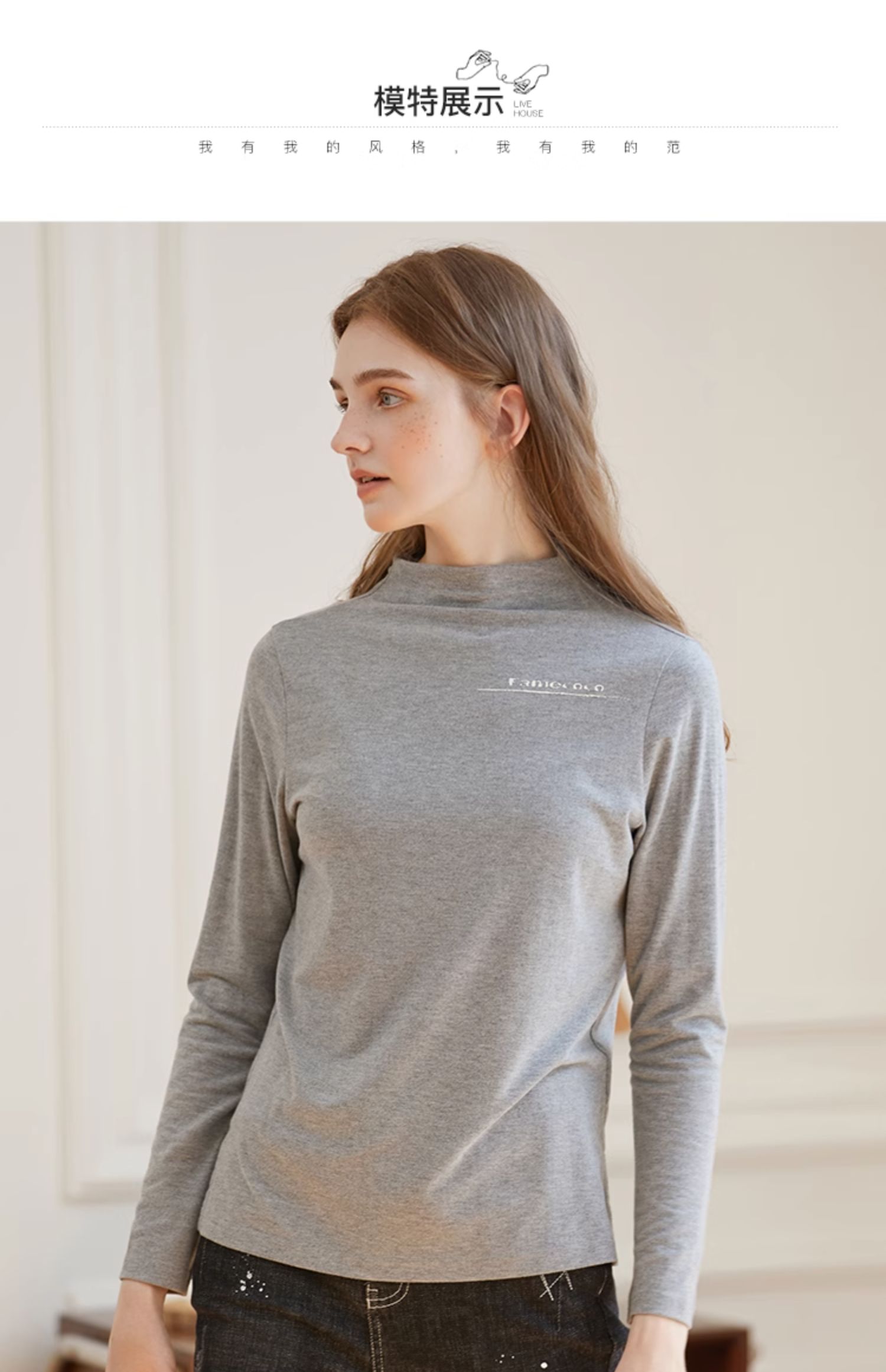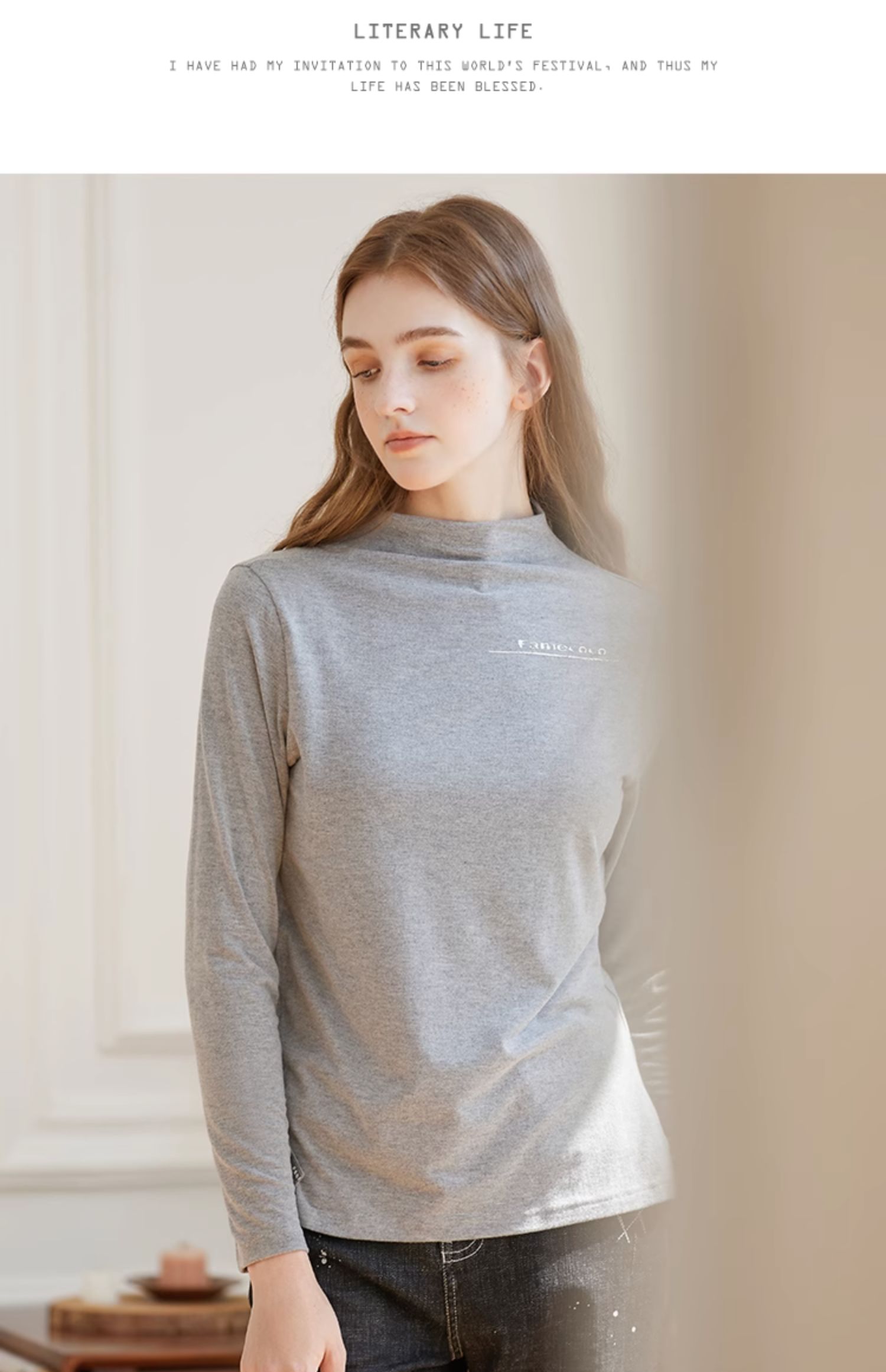 Famecoco范可儿长袖T恤印花半高领长袖打底衫上衣女F225BB004