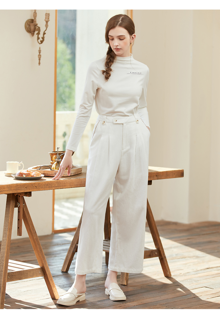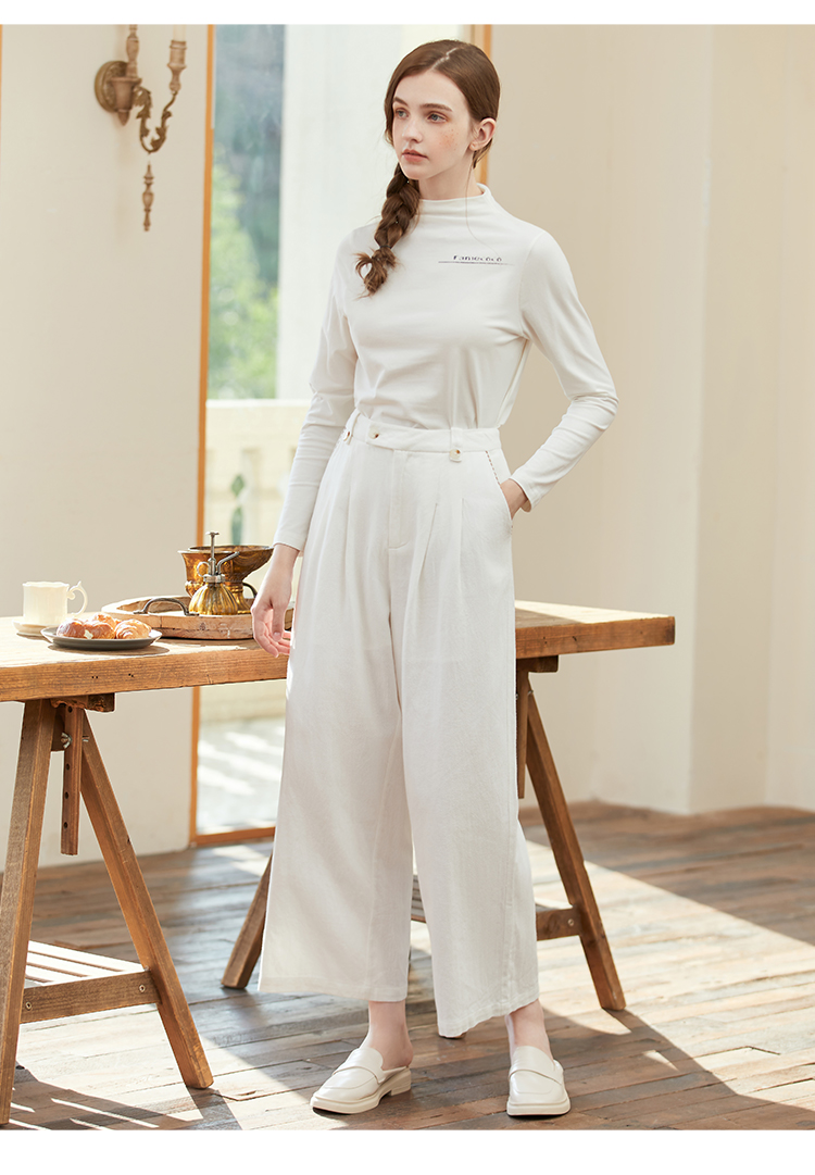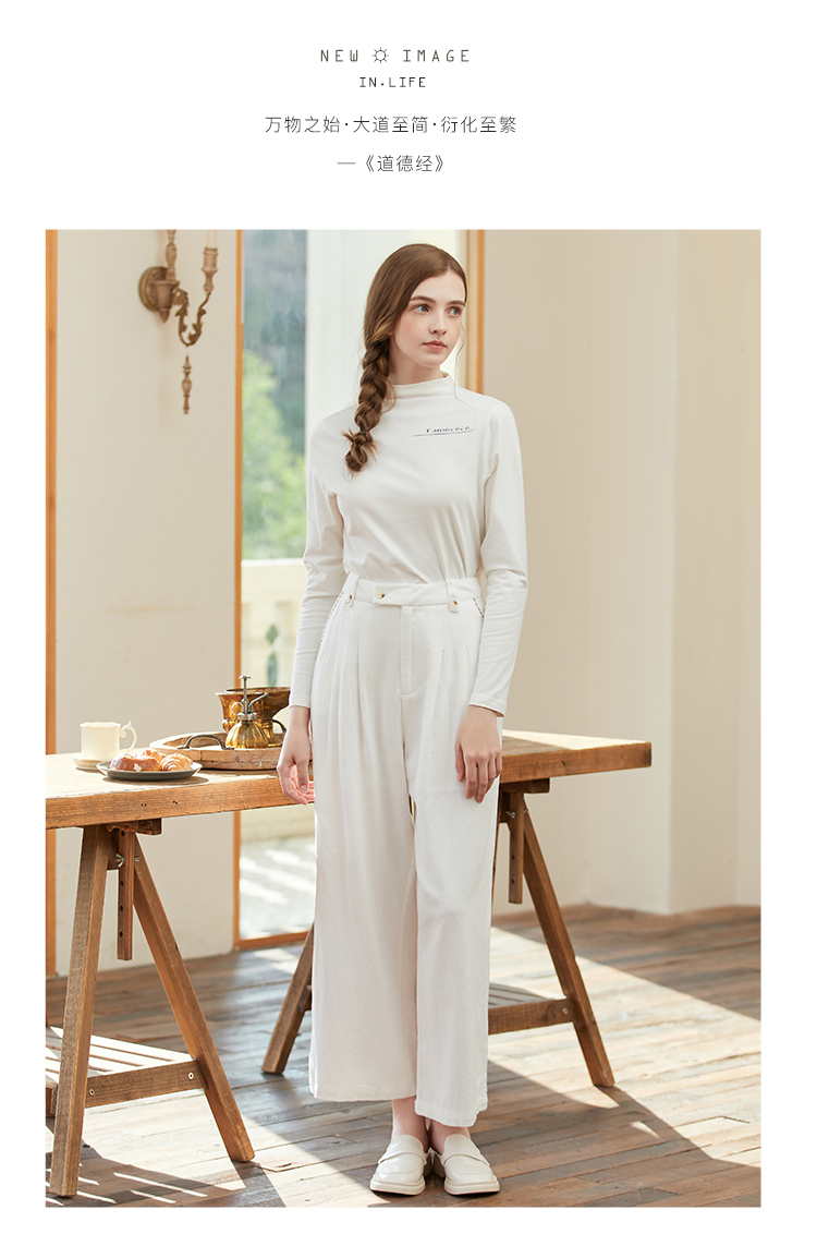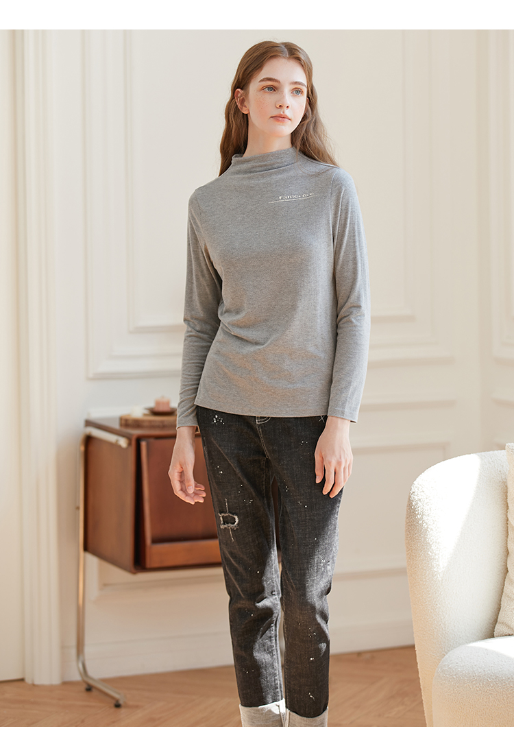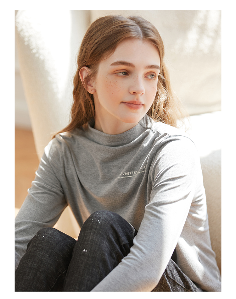 Famecoco范可儿长袖T恤印花半高领长袖打底衫上衣女F225BB004