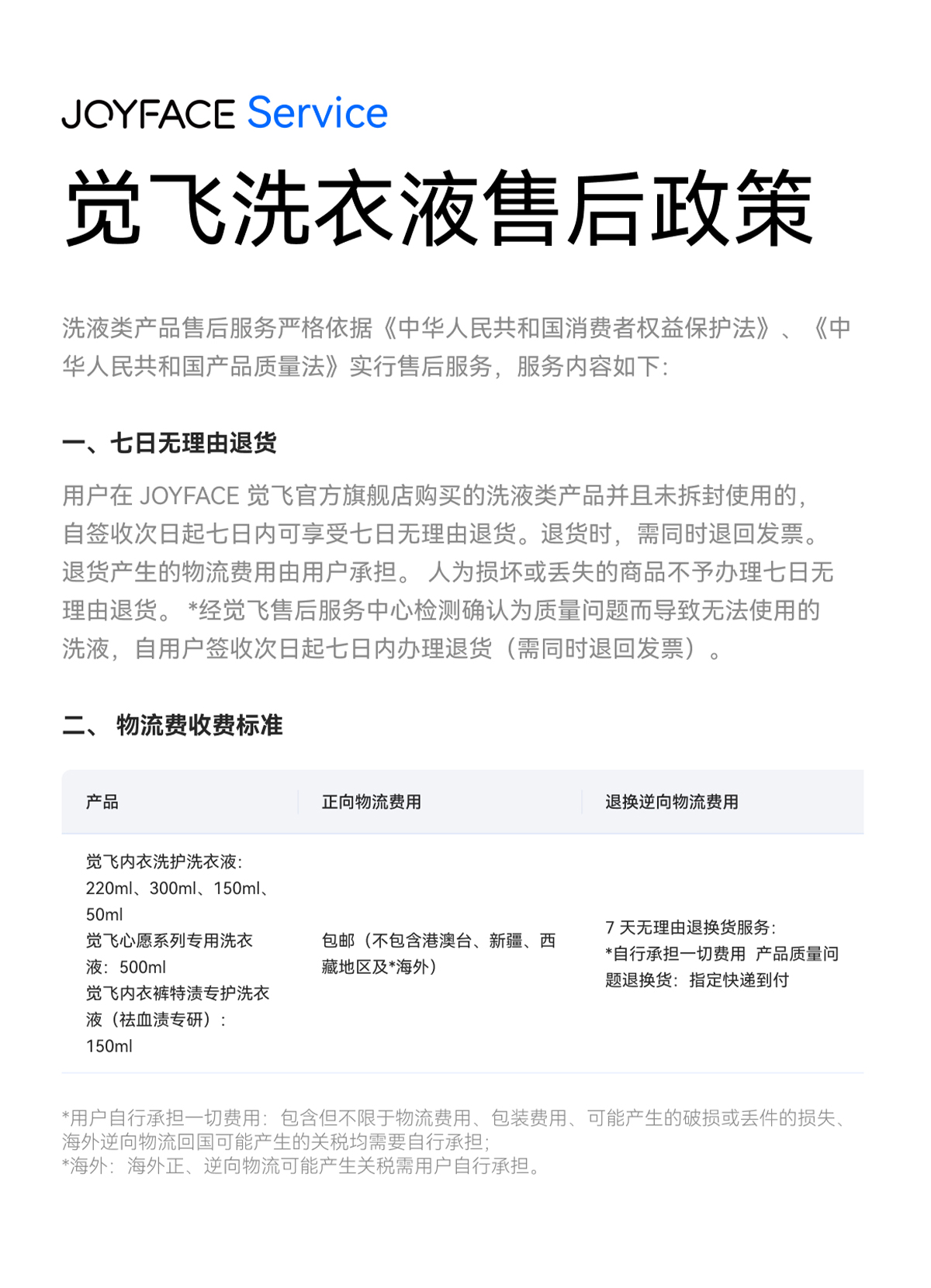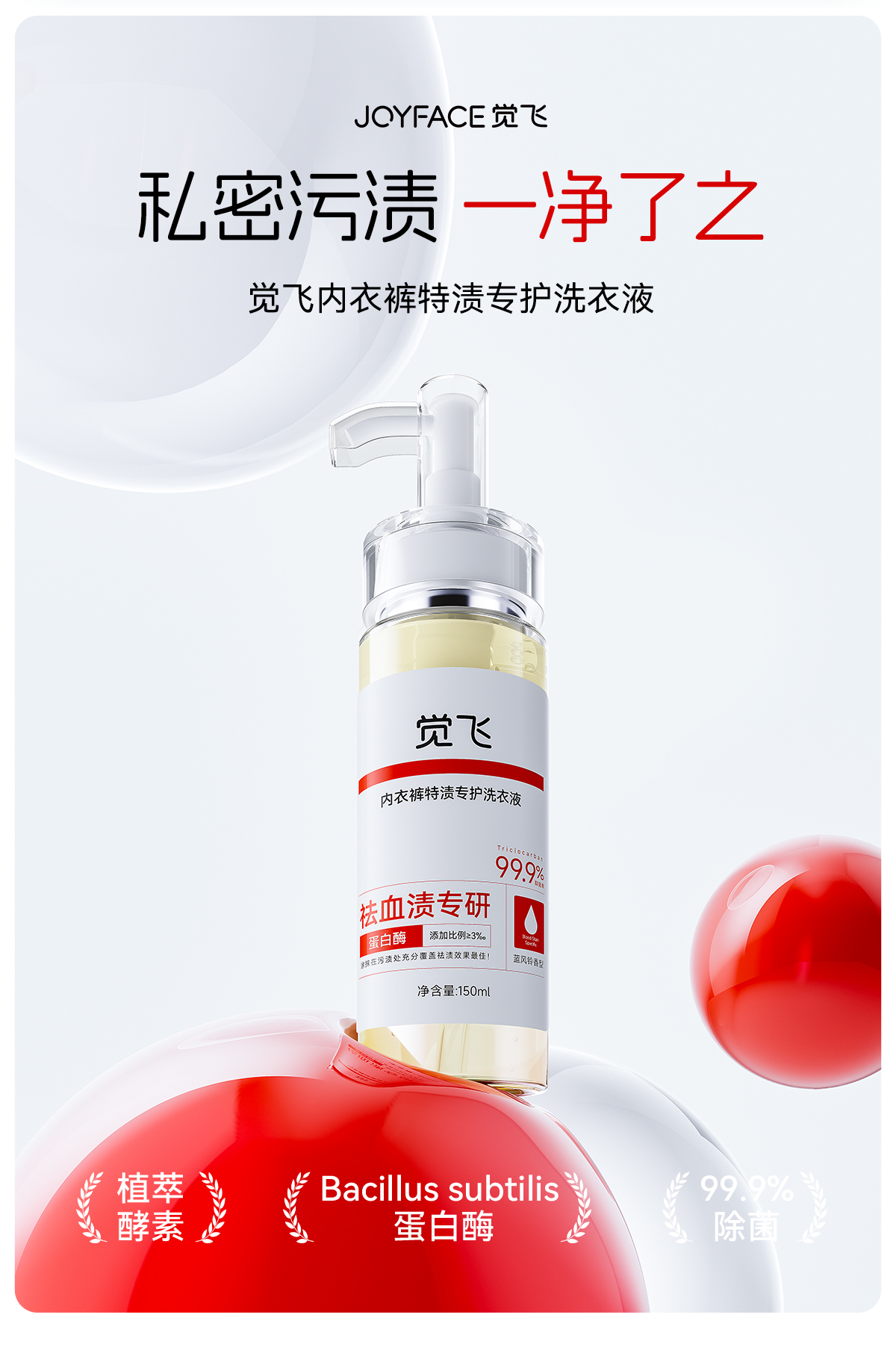 【限时买3送2】JOYFACE/觉飞 150/300ML内衣裤洗衣液去血渍易漂洗