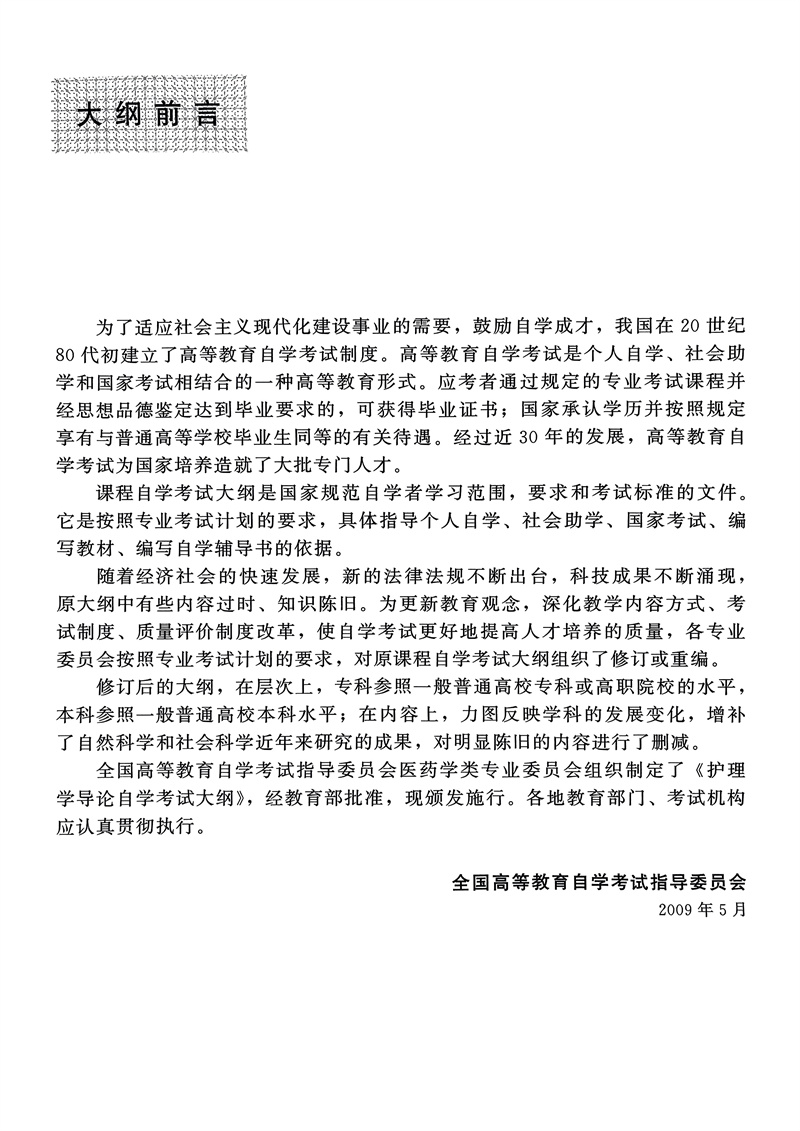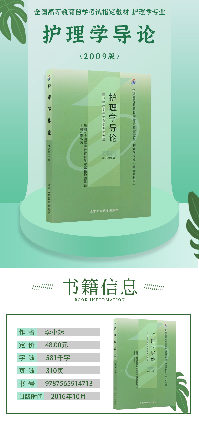护理学导论 2009版 全国高等教育自学考试 教材 护理学专业 独立本科段 李小妹 主编 9787565914713 北京大学医学出版社