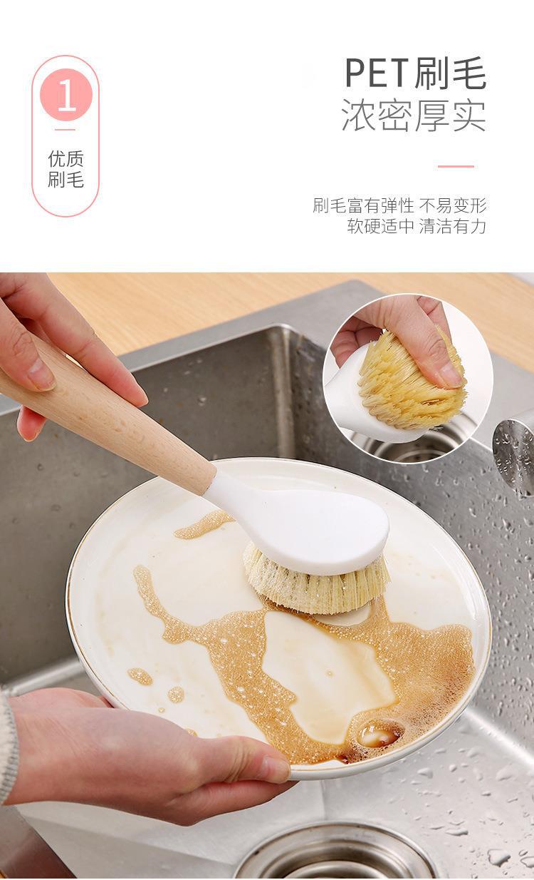 年终大促!,第二件半价!【岂止颜值,用起来更舒心!】厨房长柄洗锅刷,家用小刷子刷锅,厨房不粘锅去污清洁木柄锅刷,轻松清洁锅底及边缘,去除顽固污渍,提高清洁效果lm