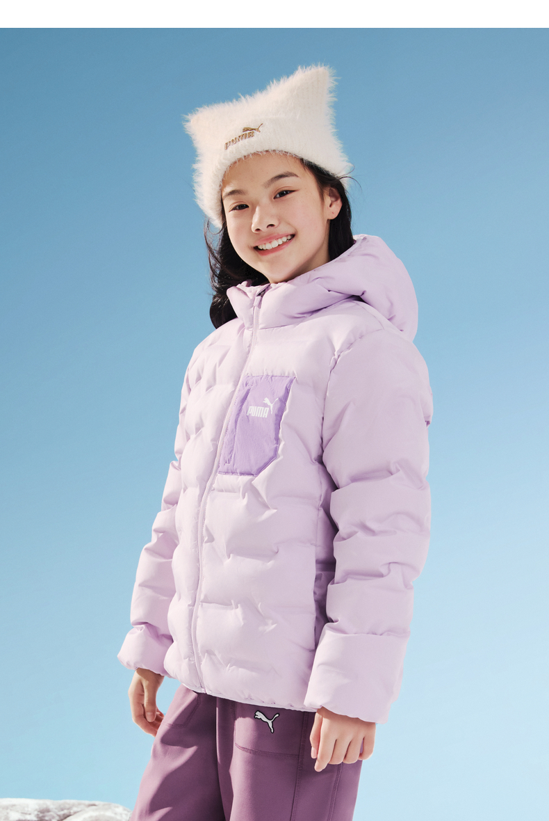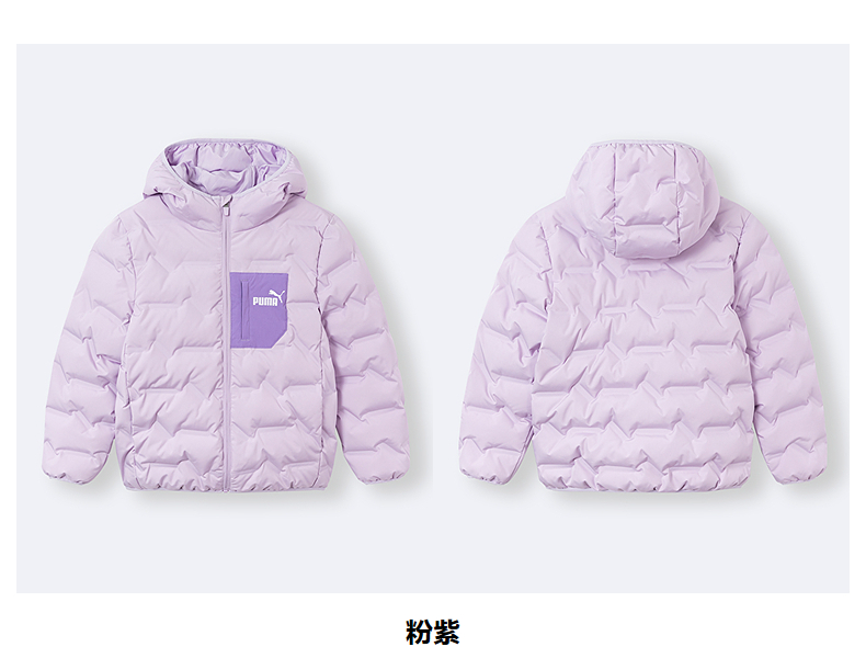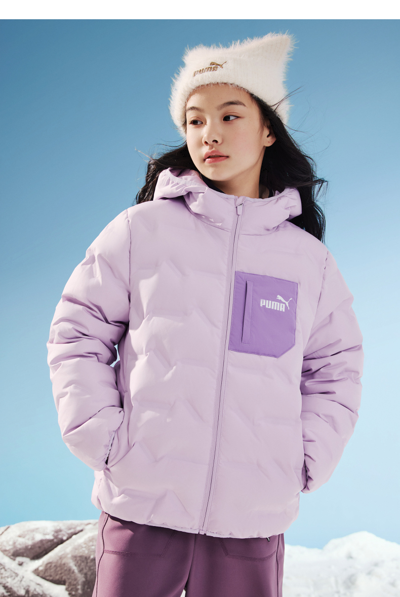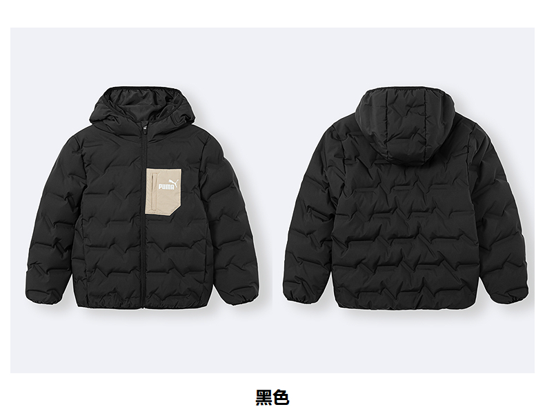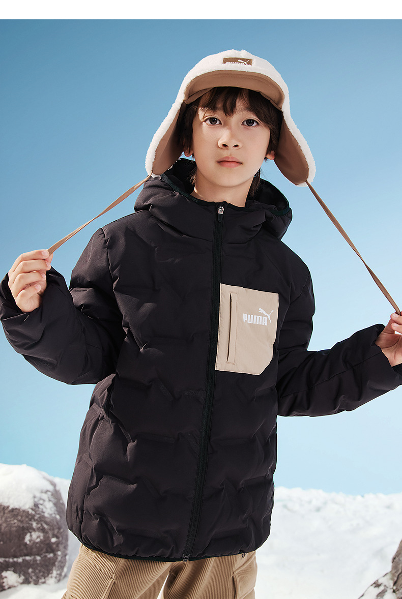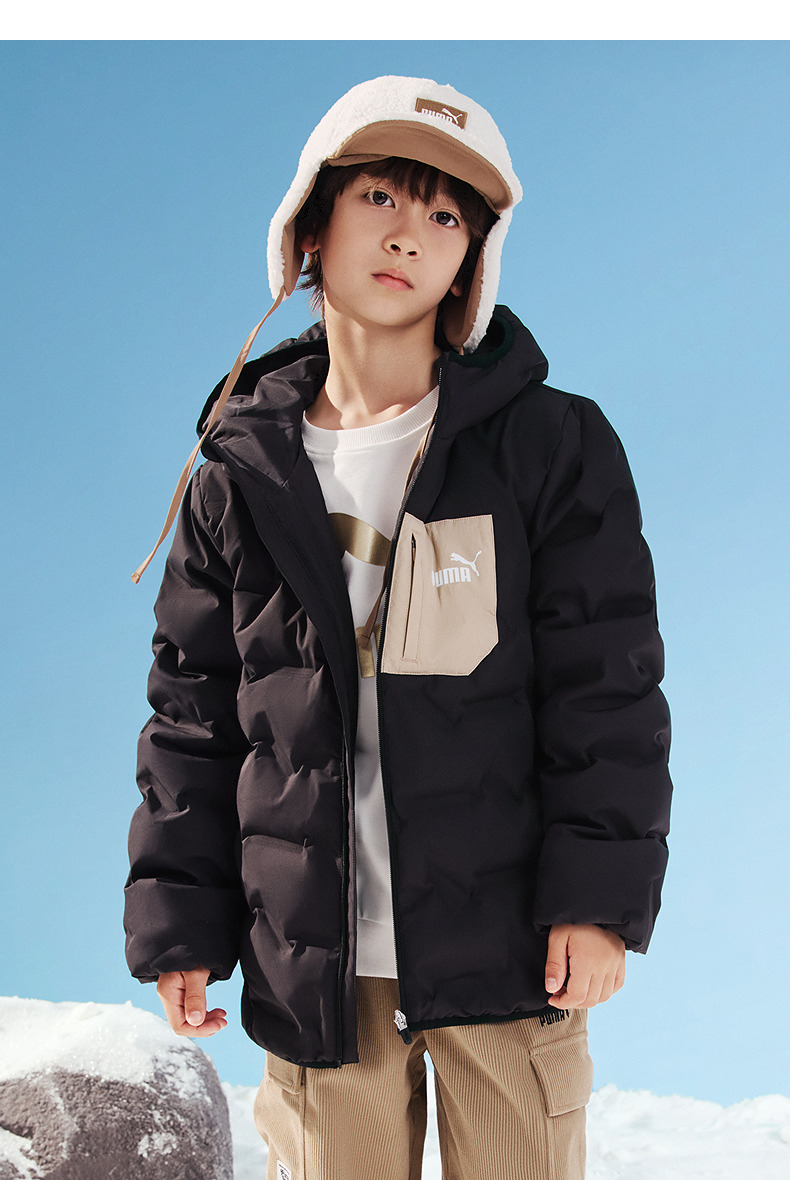 PUMA彪马官方正品 新款儿童冬季连帽羽绒服撞色贴袋时髦洋气