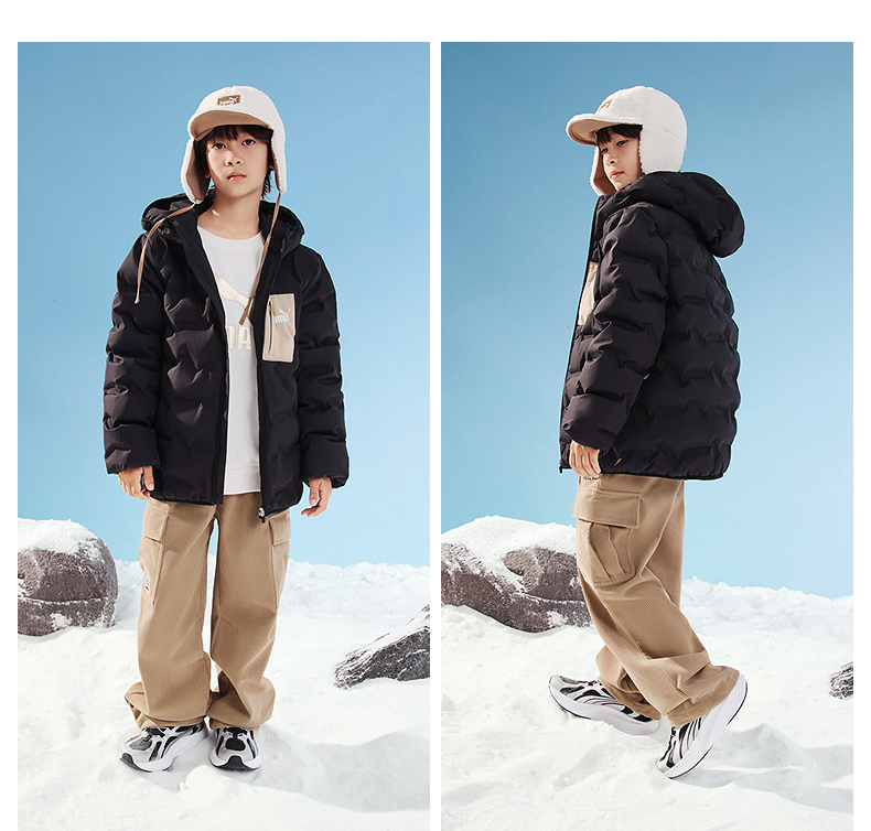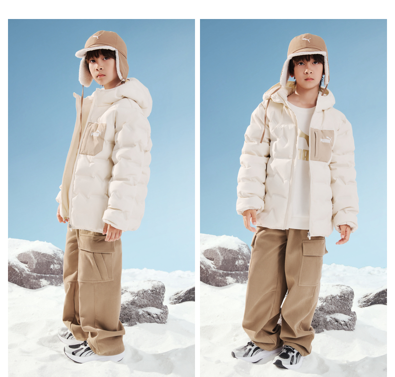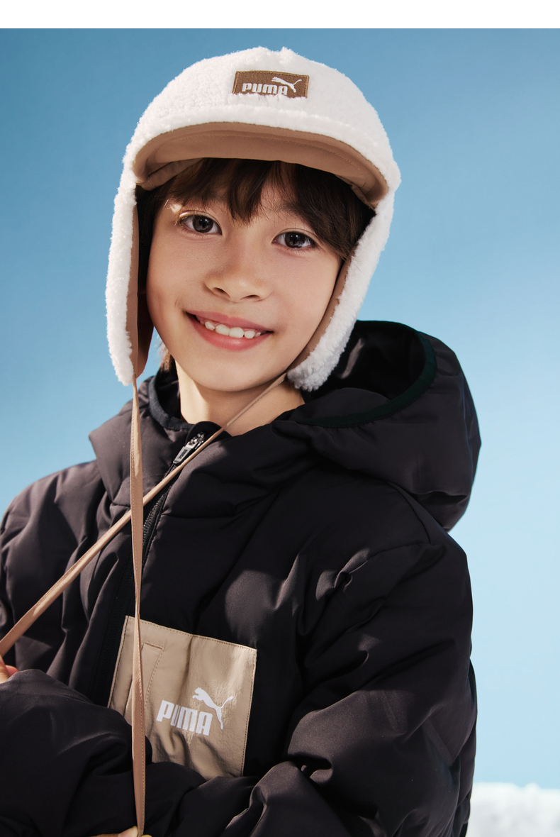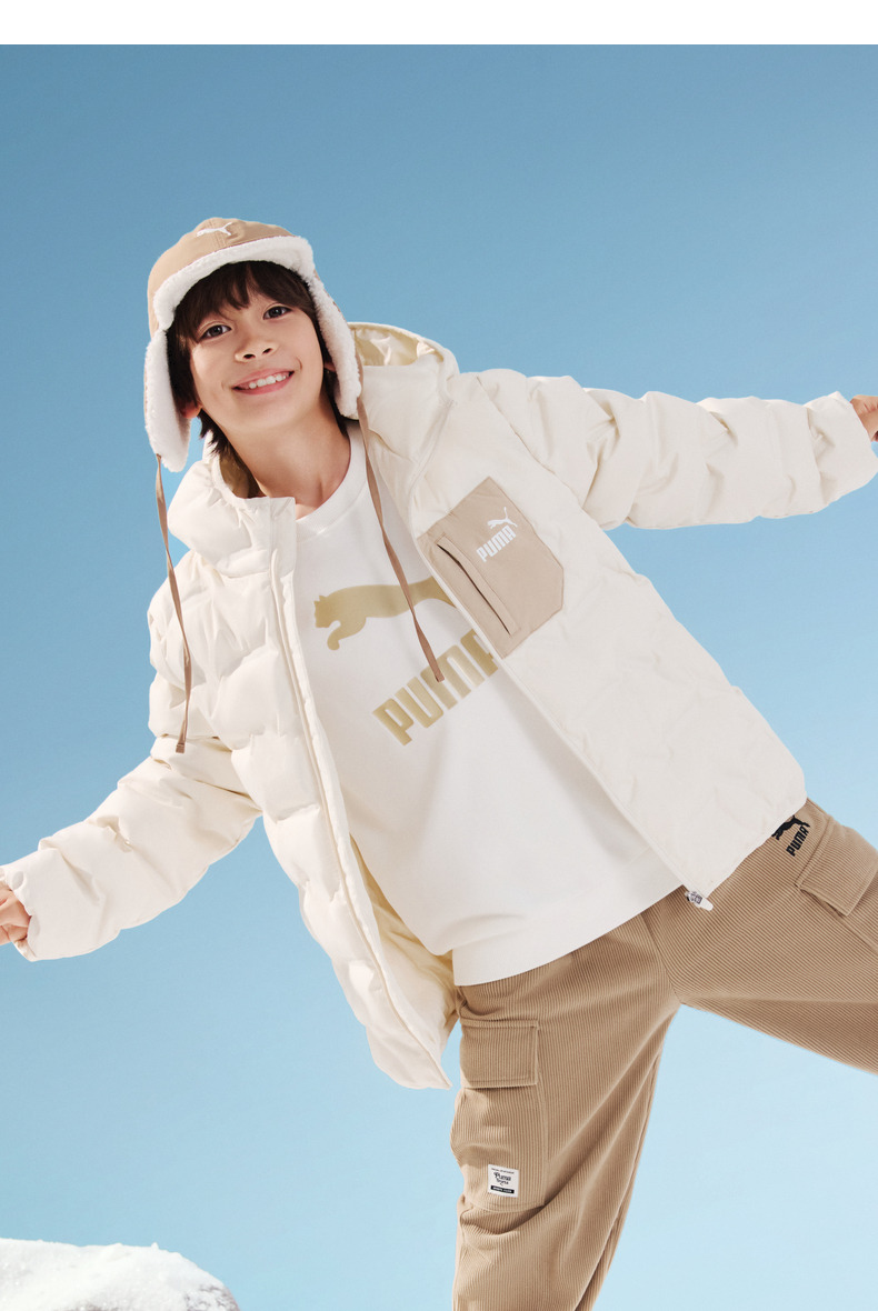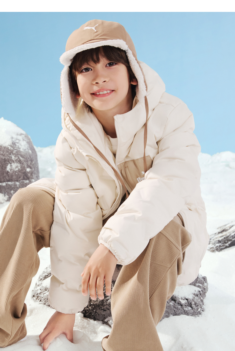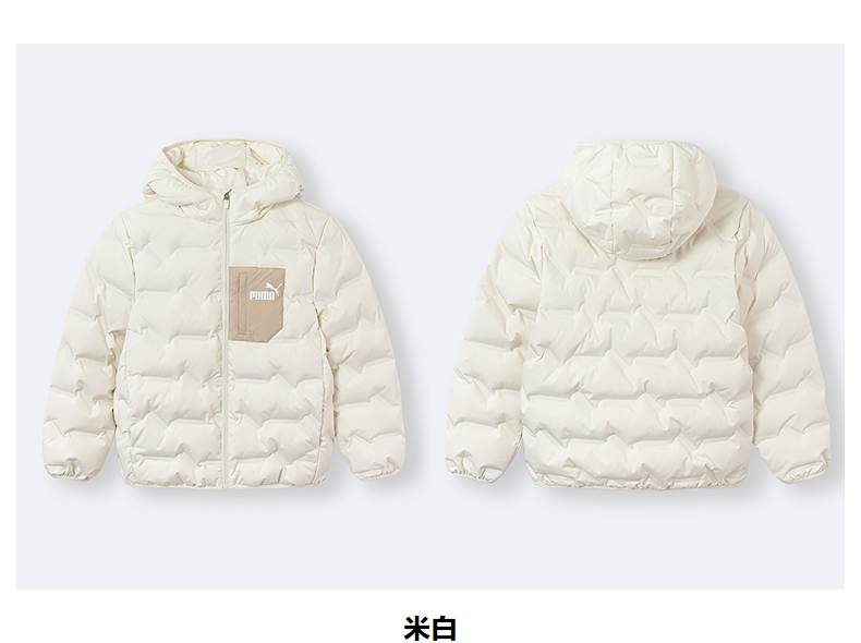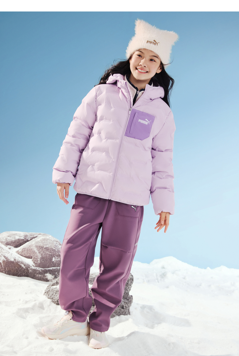 PUMA彪马官方正品 新款儿童冬季连帽羽绒服撞色贴袋时髦洋气