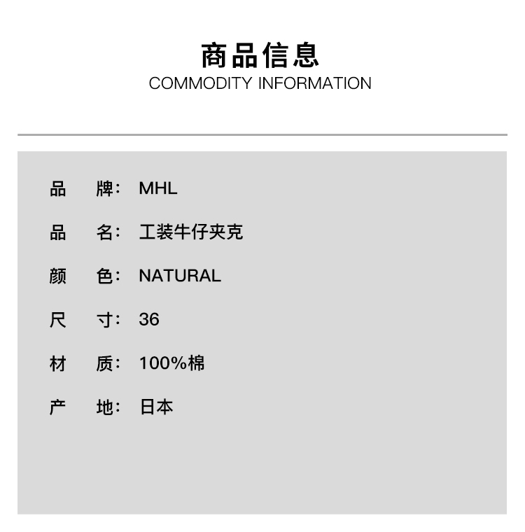 MHL CANTON NATURAL DENIM JACKET 女装工装牛仔夹克外套