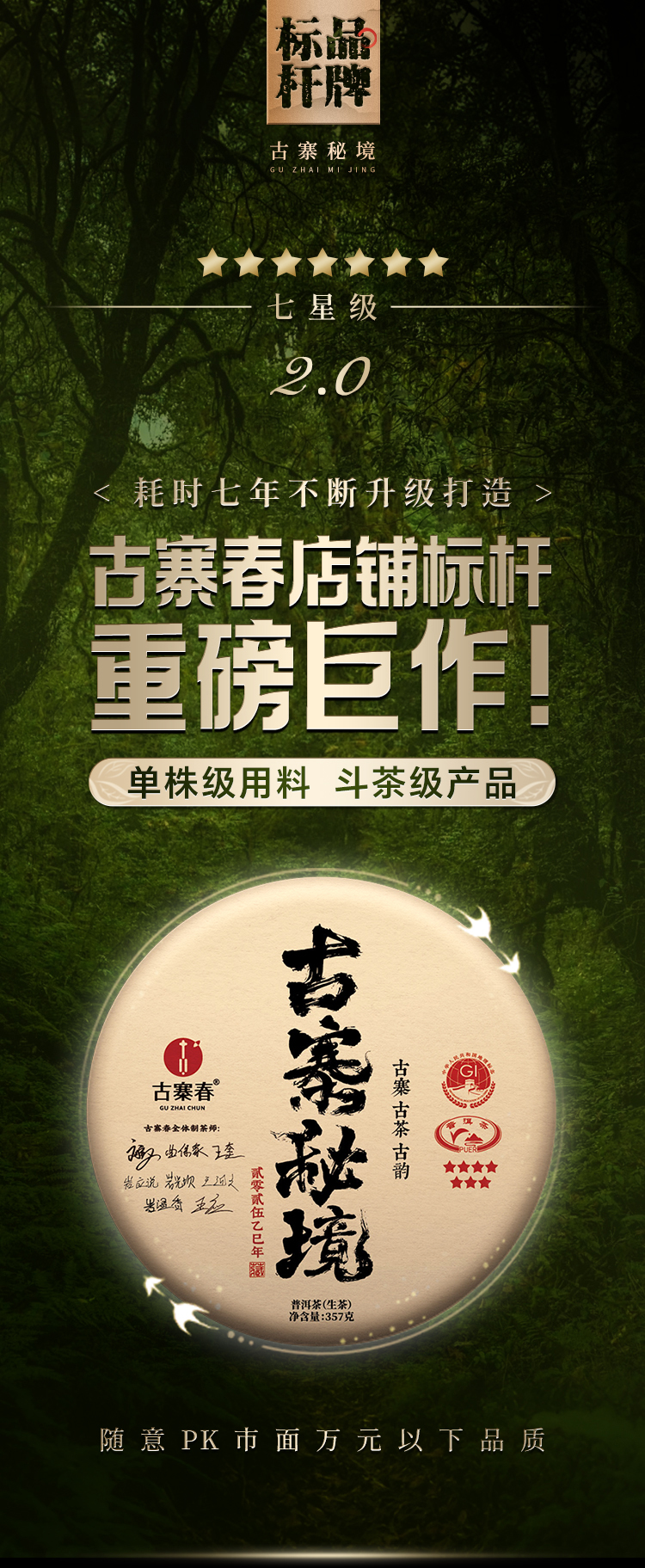 【古寨秘境七星级】2025年单株级别用料 斗茶级别的产品!古寨春店铺标杆巨作 易武茶区普洱茶生茶357克/饼