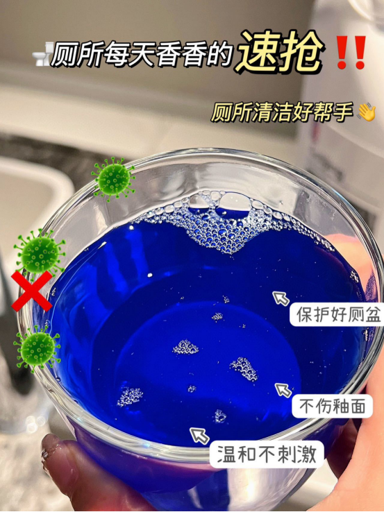 💧高效去污垢: 质地粘稠有效挂壁与污垢充分作用 迅速瓦解除垢有机酸配方不伤瓷釉 清新除异味🉑有效去除异味清新宜人~ 洁厕剂液体蓝色粘稠状 挂壁性能极佳吸附在污垢的部位 减轻清洁的难度 减少了溅液的情况发生,使用更加安全。