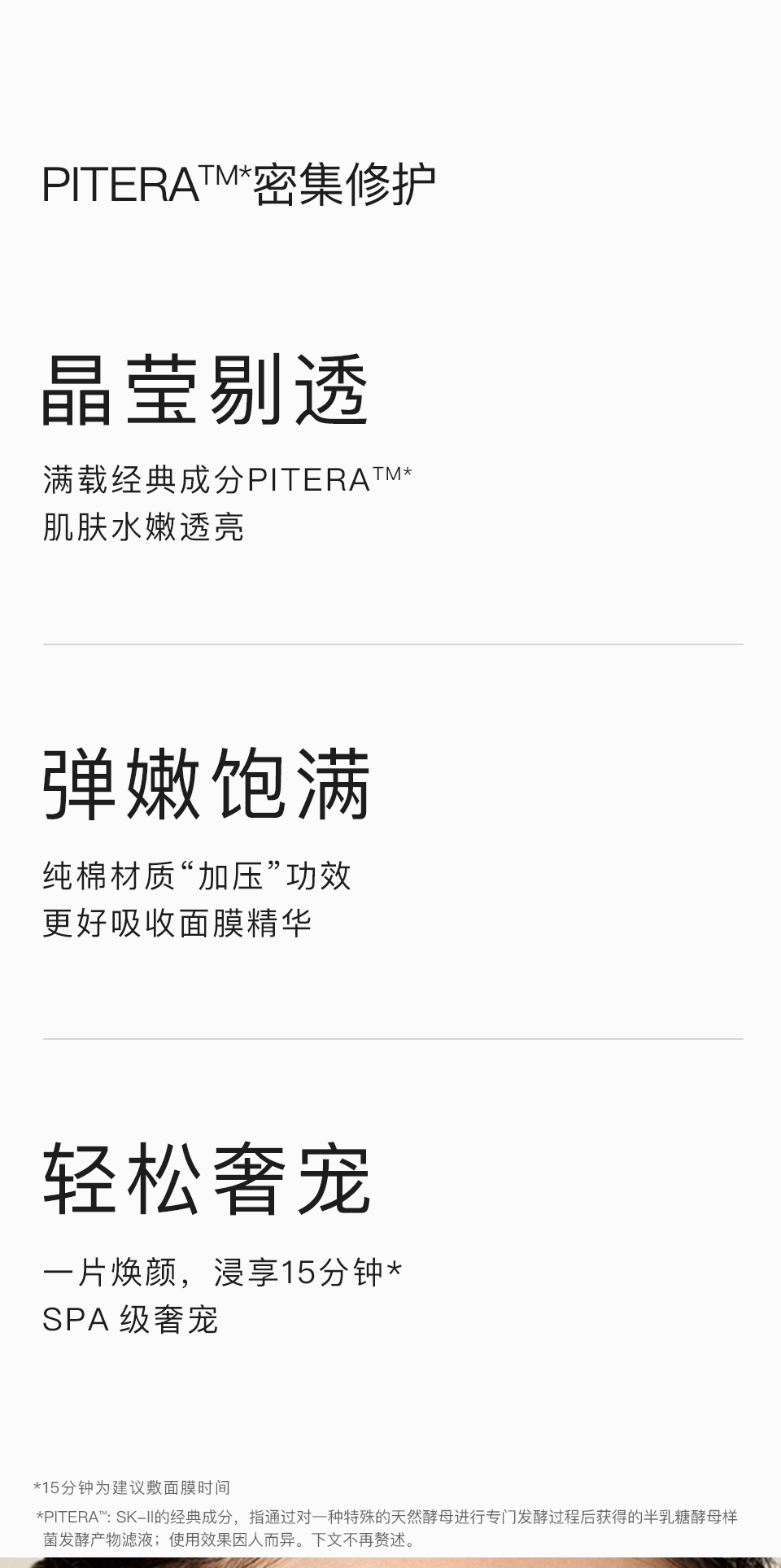 将面膜先置于眼部位置,然后再打开敷贴全脸,轻拍将其紧贴。待5-15分钟后取下,每星期使用一至两次,于爽肤水后使用。