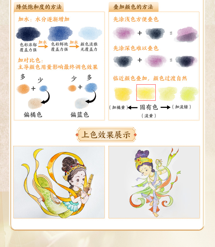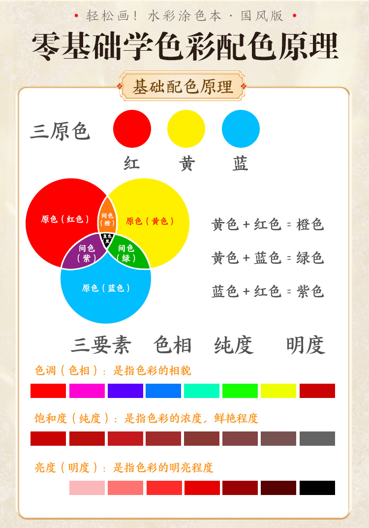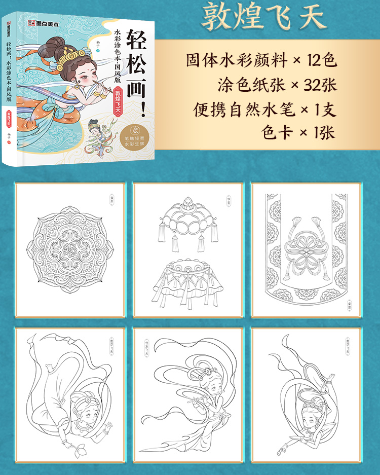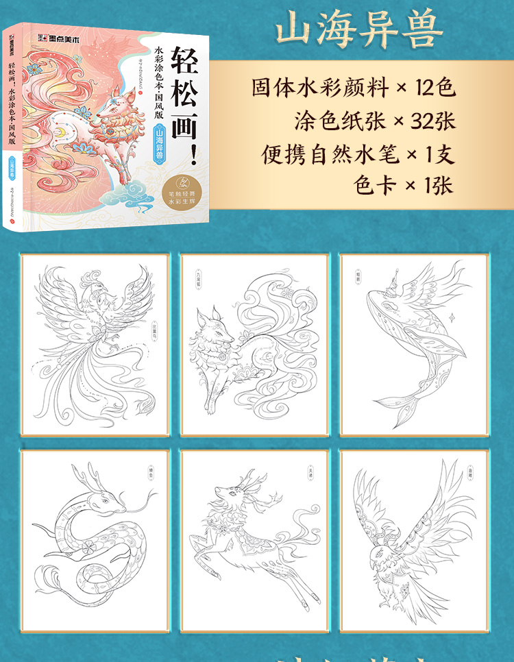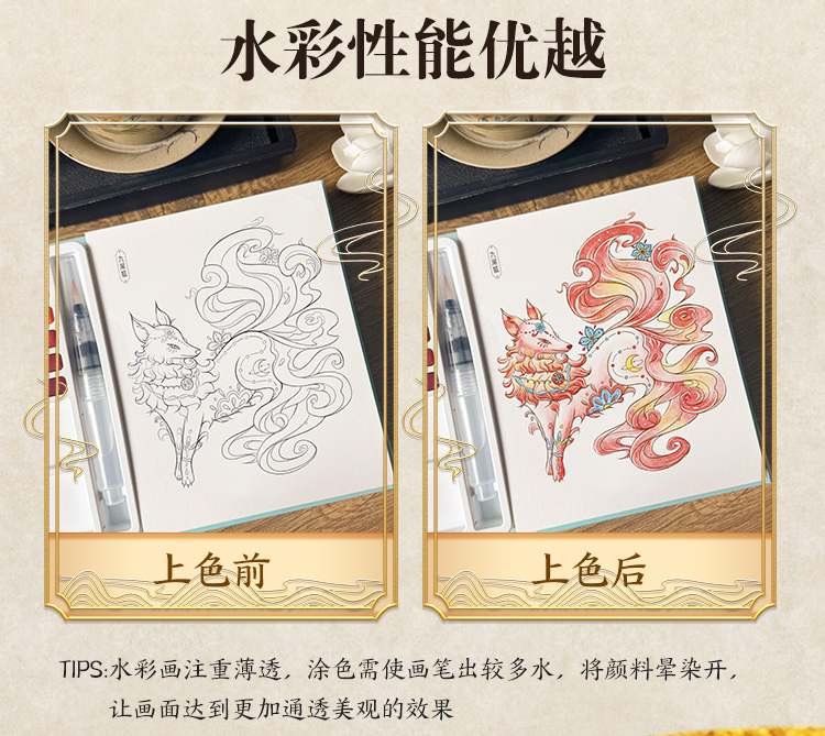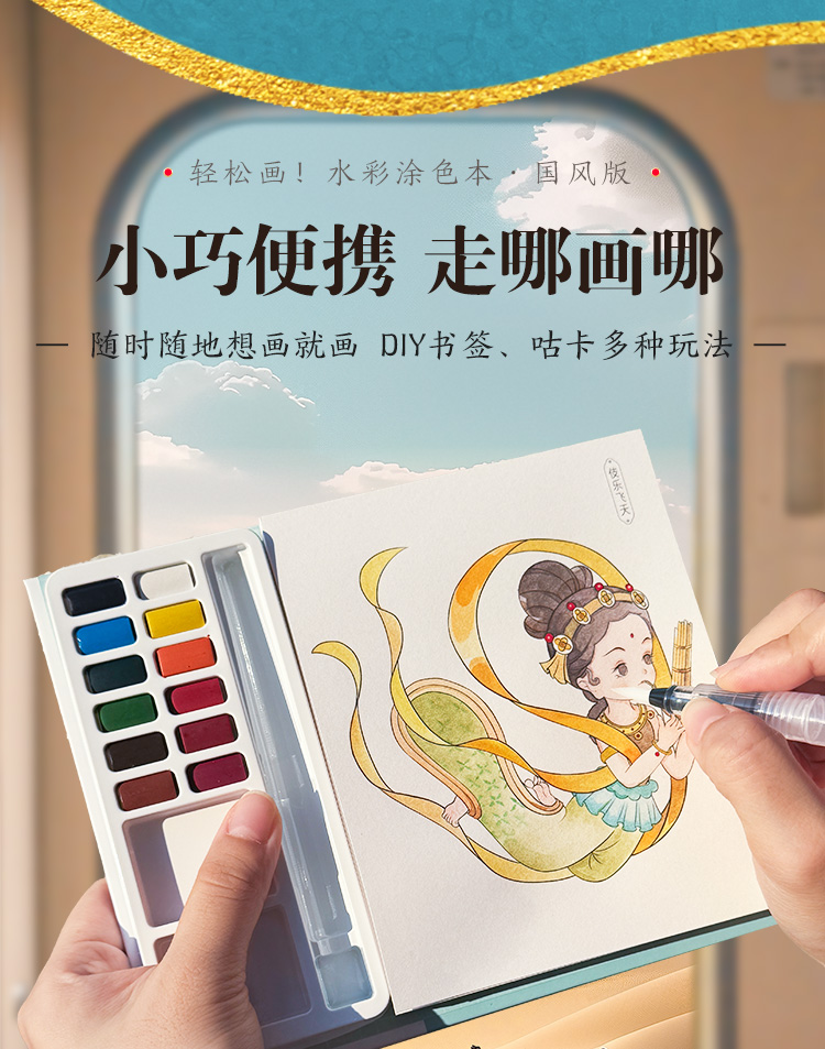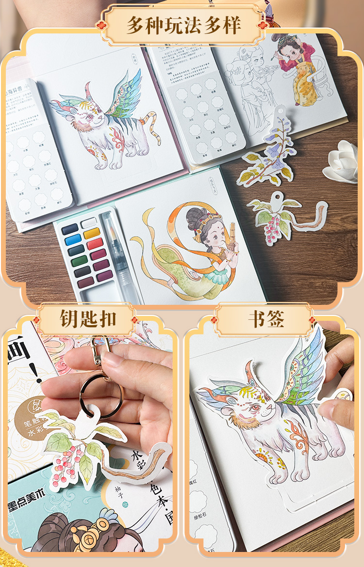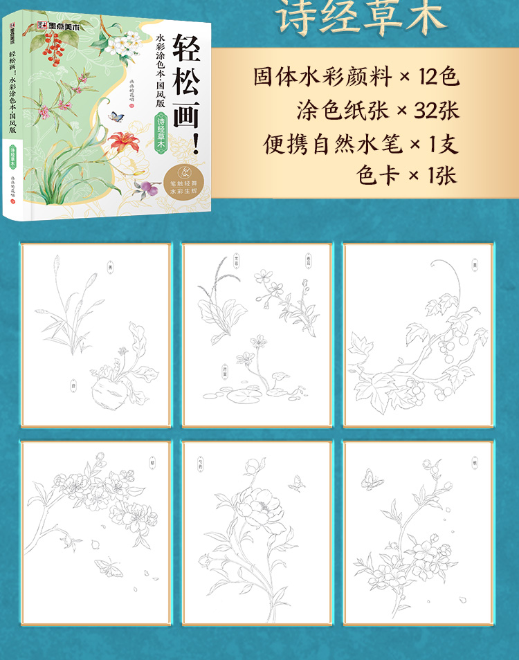 轻松画水彩涂色本 国风诗经草木 玩法多样儿童成人便携减压涂色本