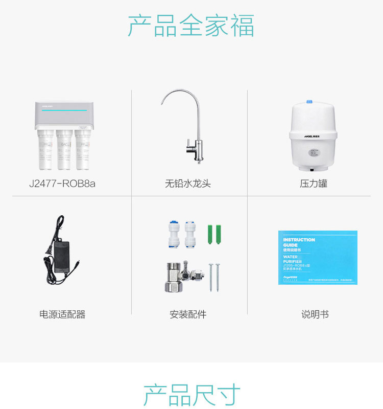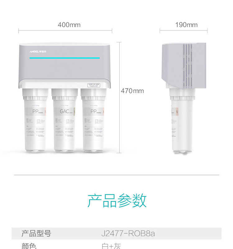 安吉尔(Angel)净水器 家用ZMD 直饮厨下式 反渗透净水 RO过滤纯水J2477-ROB8a