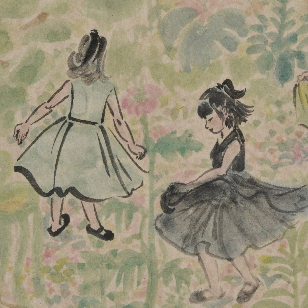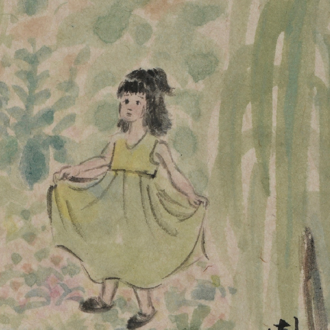 李周卫《芳草地》国画人物 17CM*25CM 约半平尺 卡纸(未装框)【原作编号GH0026】