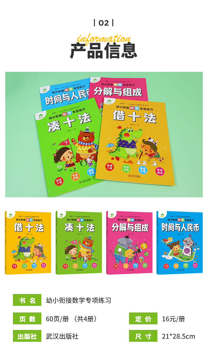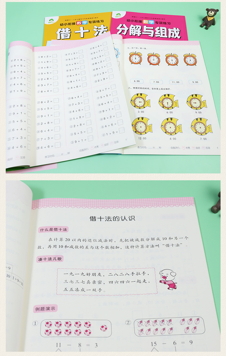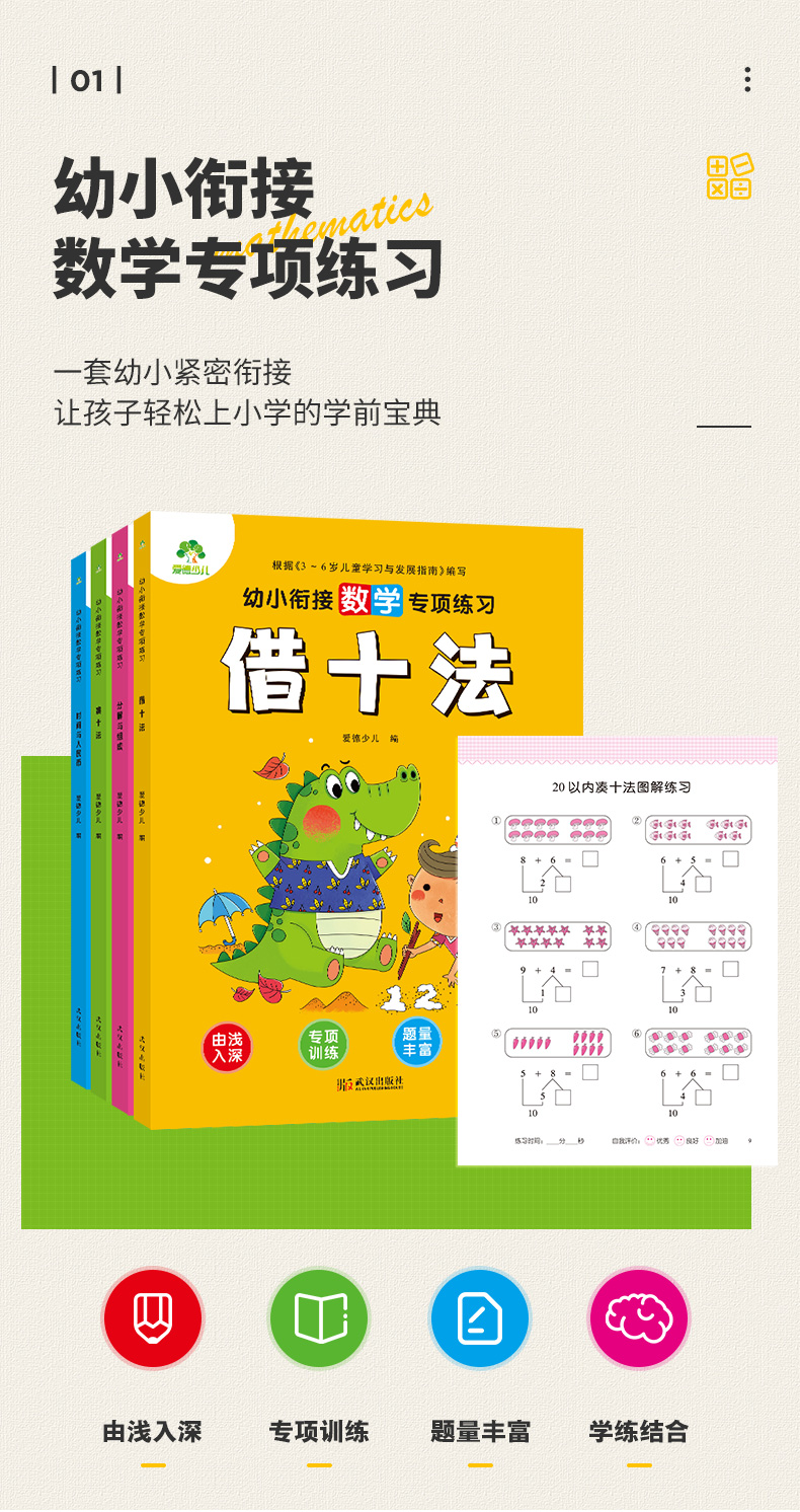 爱德少儿 幼小衔接数学专项练习 全套4册 凑十法借十法数专项训练练习题