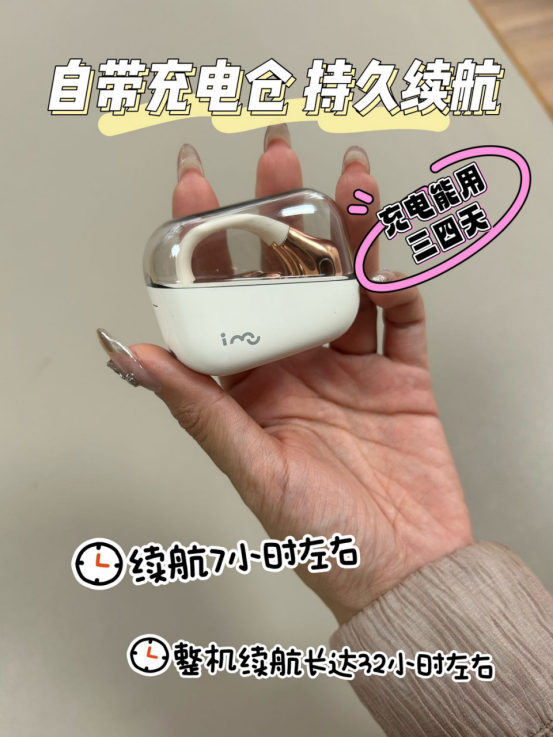 自带充电仓🔋🔋🔋 单耳续航7小时,整机续航长达32小时左右! 看完两部电影还剩很多电! 充电也很快, 取出耳机连接的速度也挺快的! 还有打电话不会听不清, 打游戏几乎感觉不到延迟! ✅超长时间续航,告别电量焦虑!