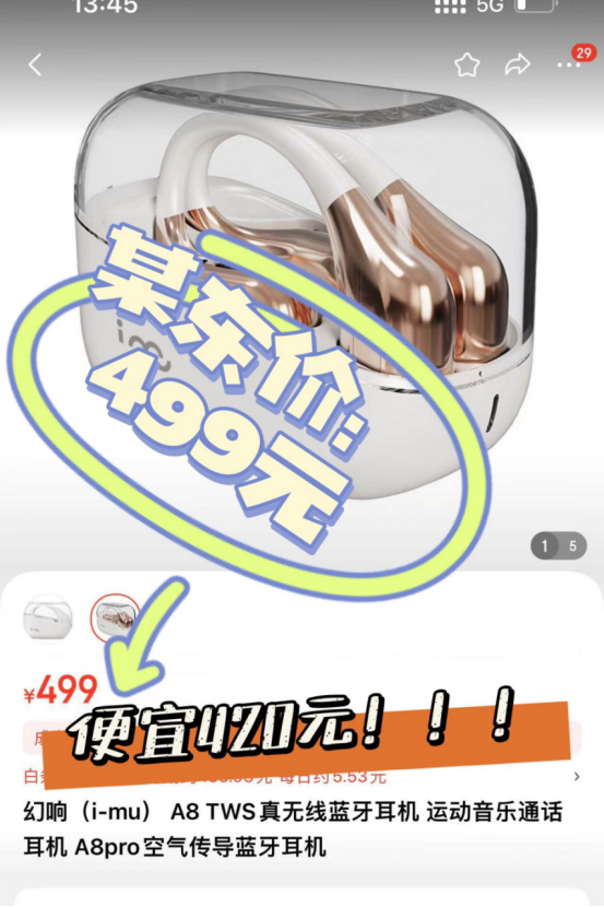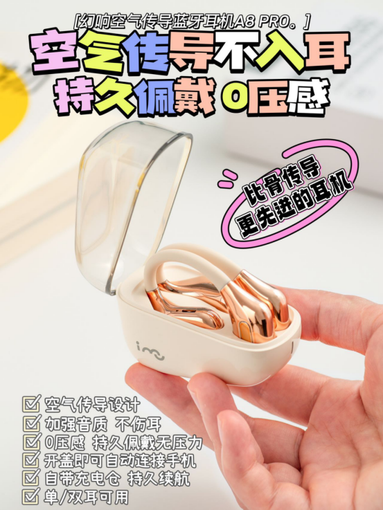 破价1.5折❗❗❗原创数码大牌【幻响空气传导蓝牙耳机A8 PRO】戴起来真的很舒服空气传导技术🤩音质更好更安全⛑更健康❗无感佩戴❗甄选宝藏耳机超长续航32小时❗千元级音质❗官方直发直降420❗官方499❗今日秒杀79❗❗ ✅重量仅6g,舒适无感佩戴,不伤耳膜耳道,运动狂甩不掉 ✅支持所有手机型号苹果安卓都🉑用!开机自动连接操作简单😀 ✅高保真HiFi发烧级音质,天籁之声级别,不输千元享受!通话清晰无噪音! ✅高配蓝牙5.3芯片!连接速度快,不卡顿,数据传输稳定 ✅自带充电仓🔋🔋🔋全天候使用不间断⏰连续使用32小时❗超长续航❗❗❗ ✅质保一年,以换代修❗❗坏了直接就换新