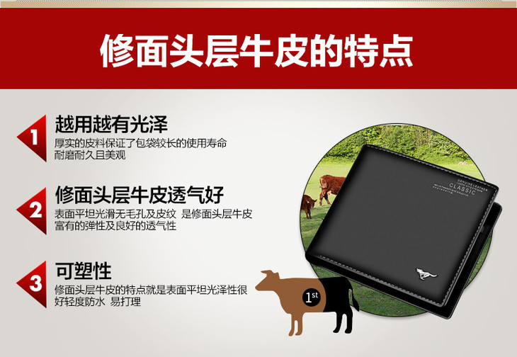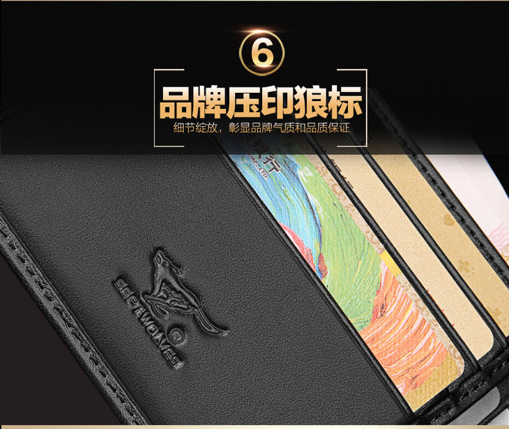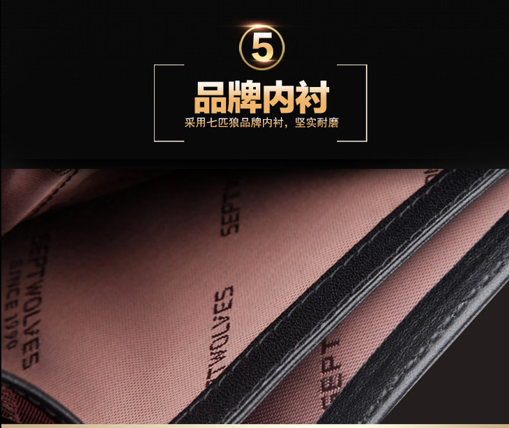 七匹狼SEPTWOLVES钱包男士短款横款钱夹头层牛皮票夹礼盒装 黑色竖款3A10236-1